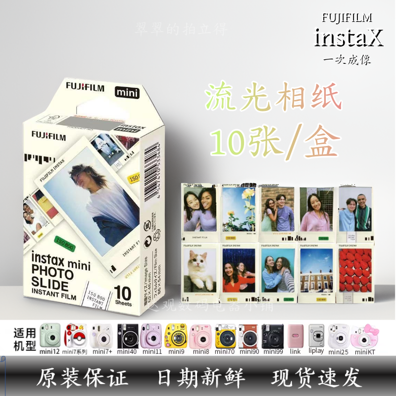 mini流光3寸相纸1盒10张,多盒便宜,日期新鲜,现货速发,富士所有mini系列相机通用
