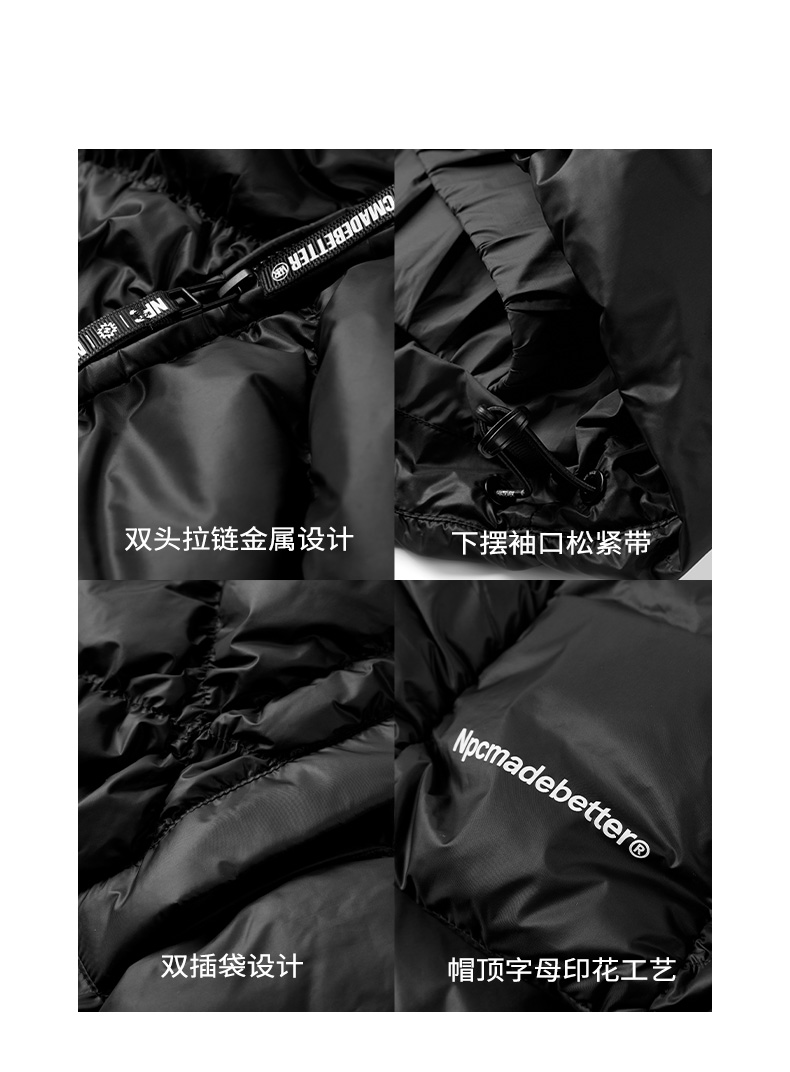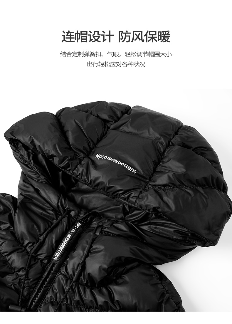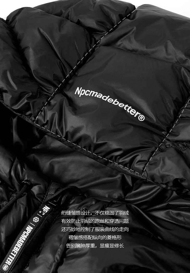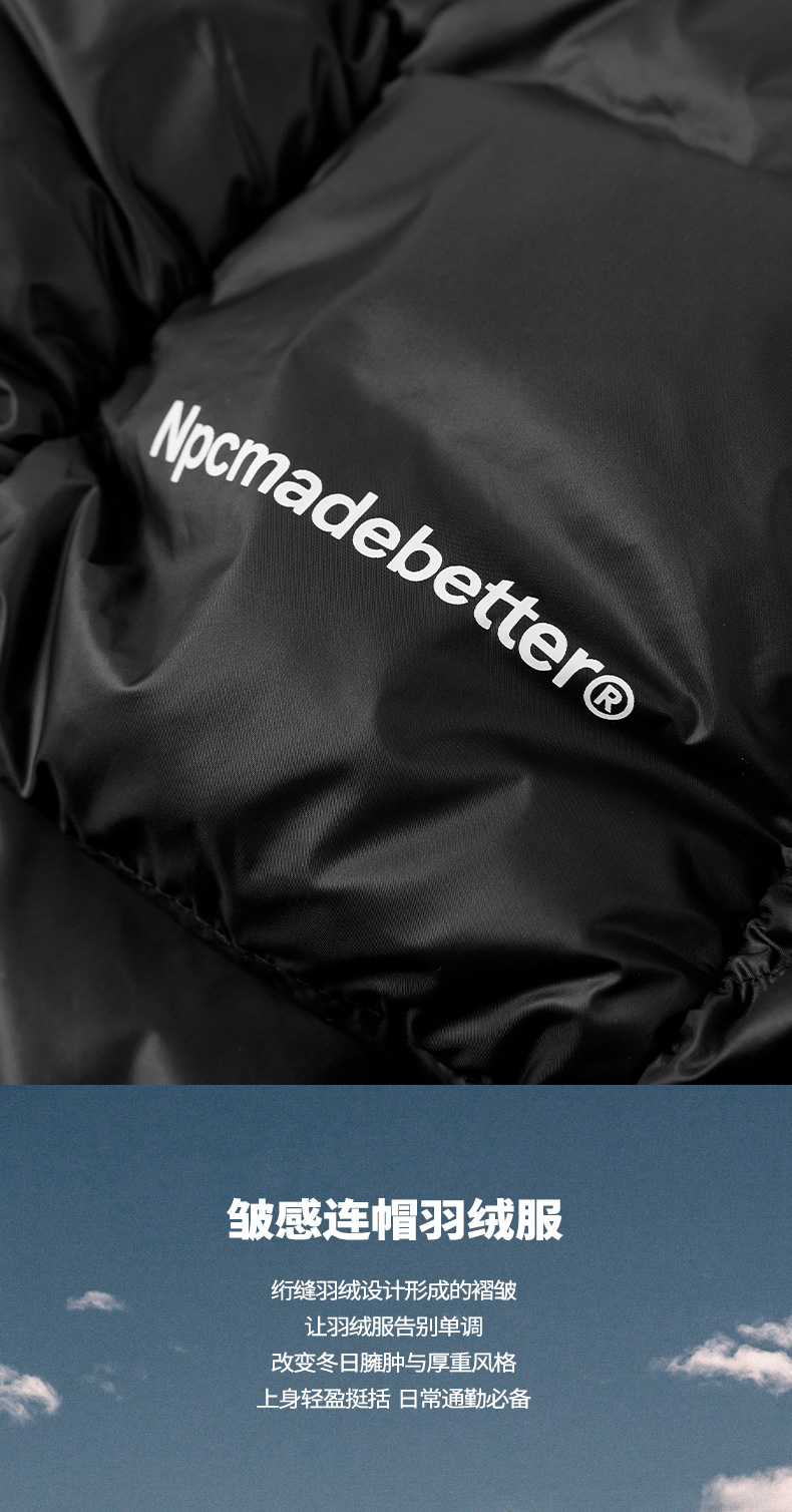 NPC潮牌90白鸭绒褶皱肌理感连帽羽绒服男袖口刺绣户外NP49DJ15