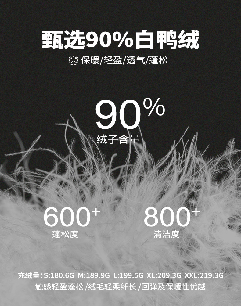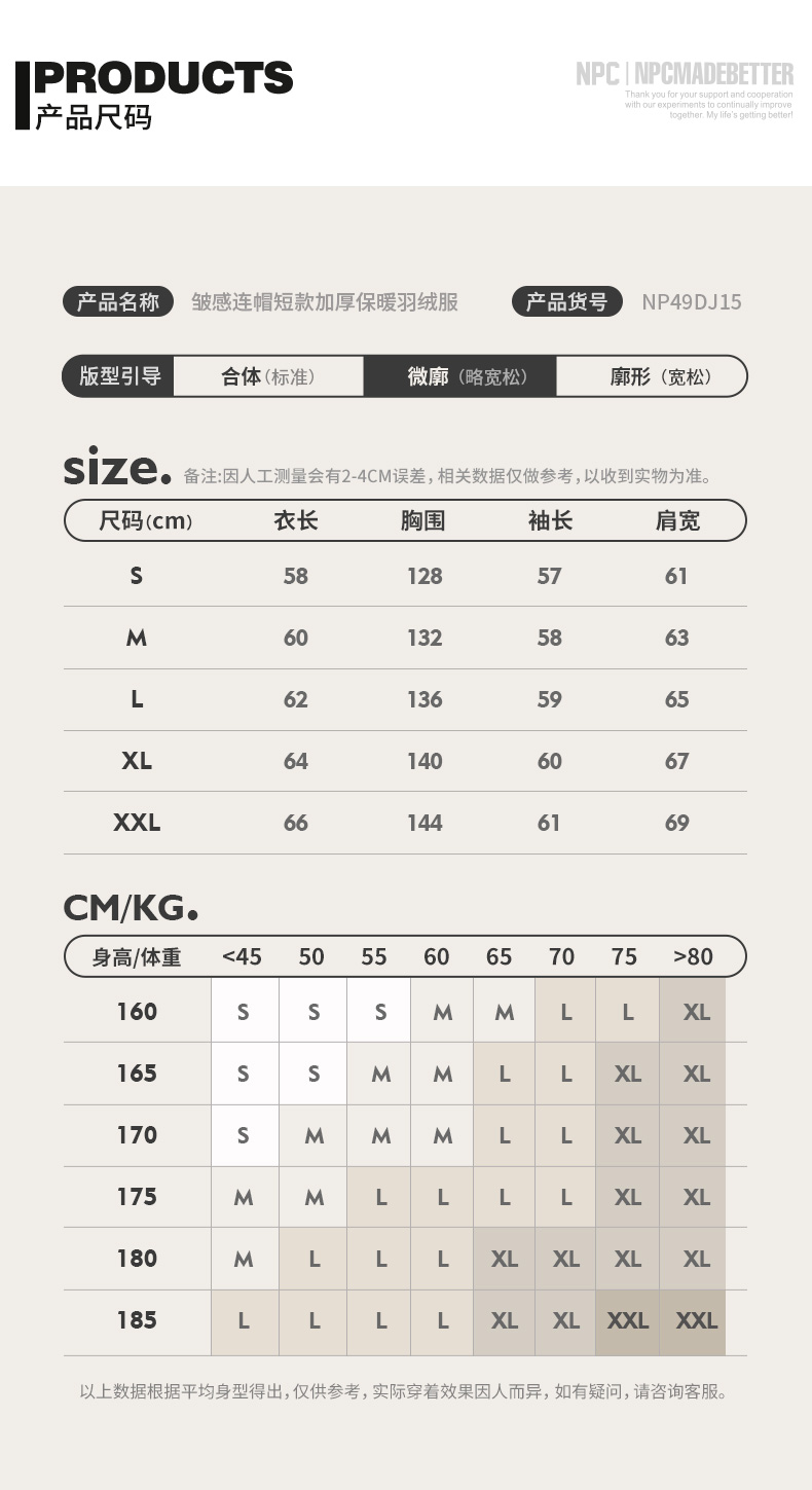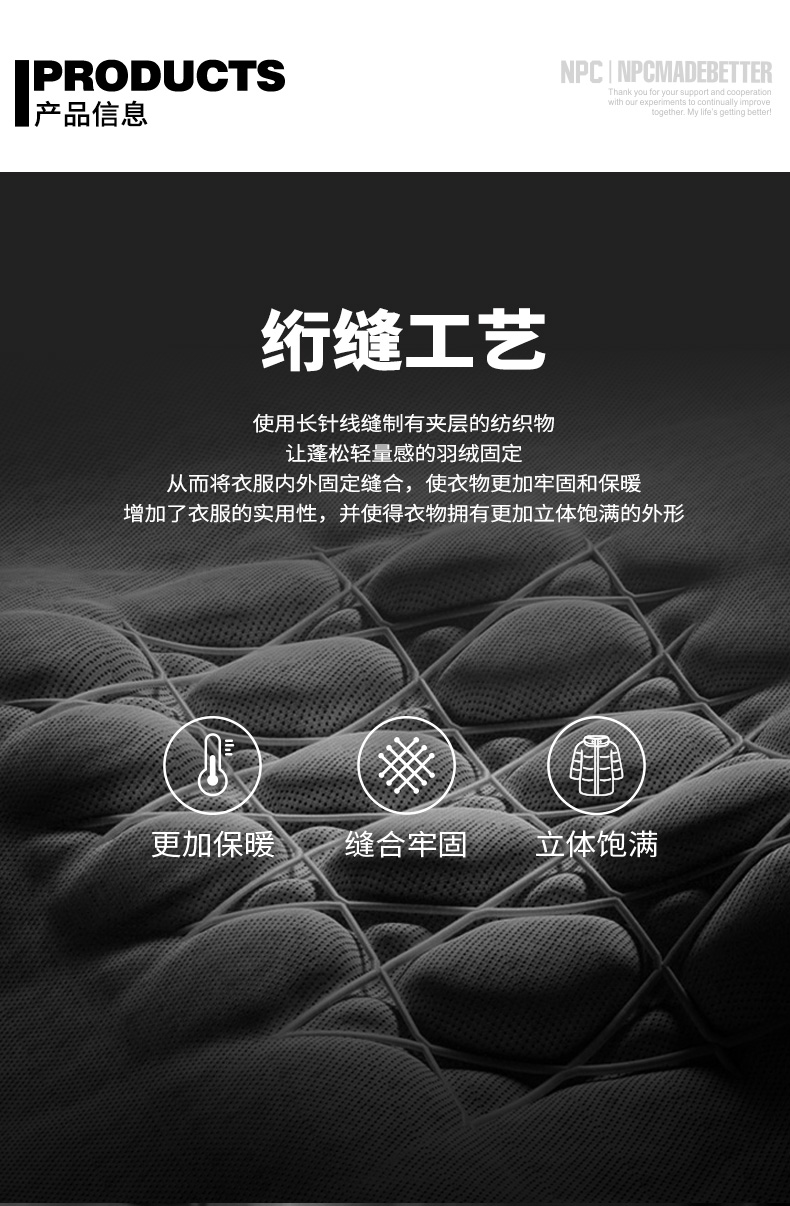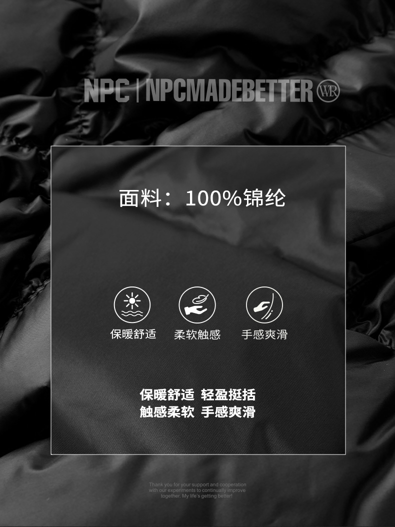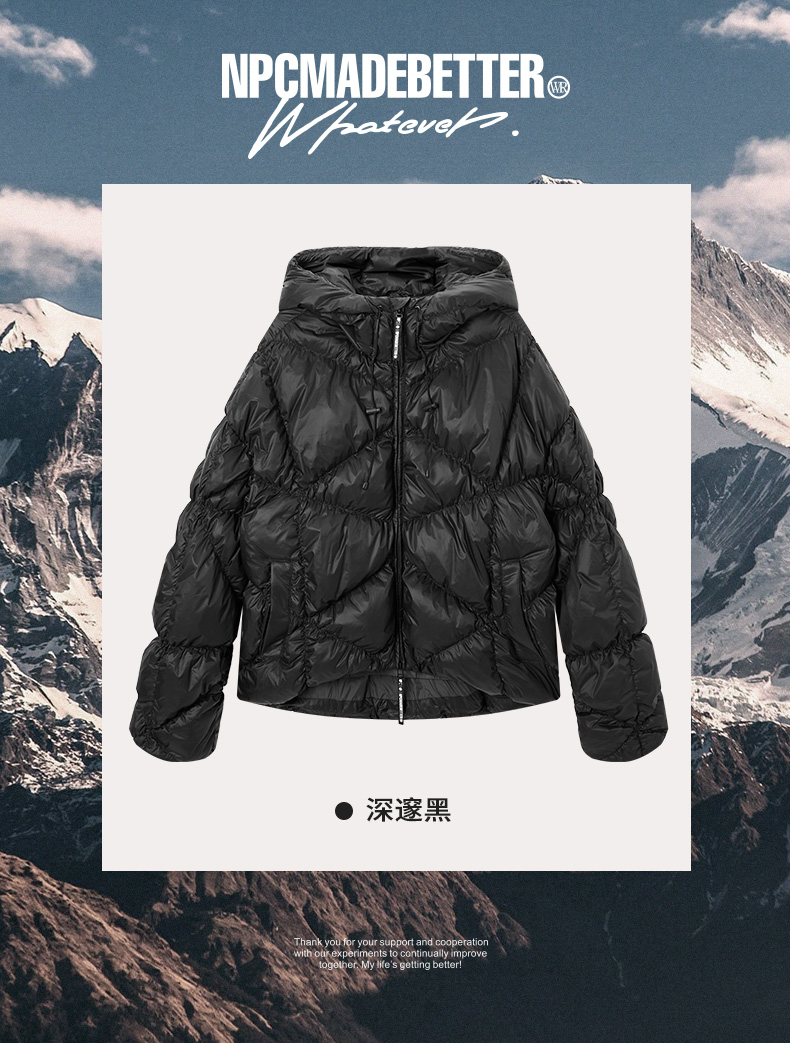 NPC潮牌90白鸭绒褶皱肌理感连帽羽绒服男袖口刺绣户外NP49DJ15