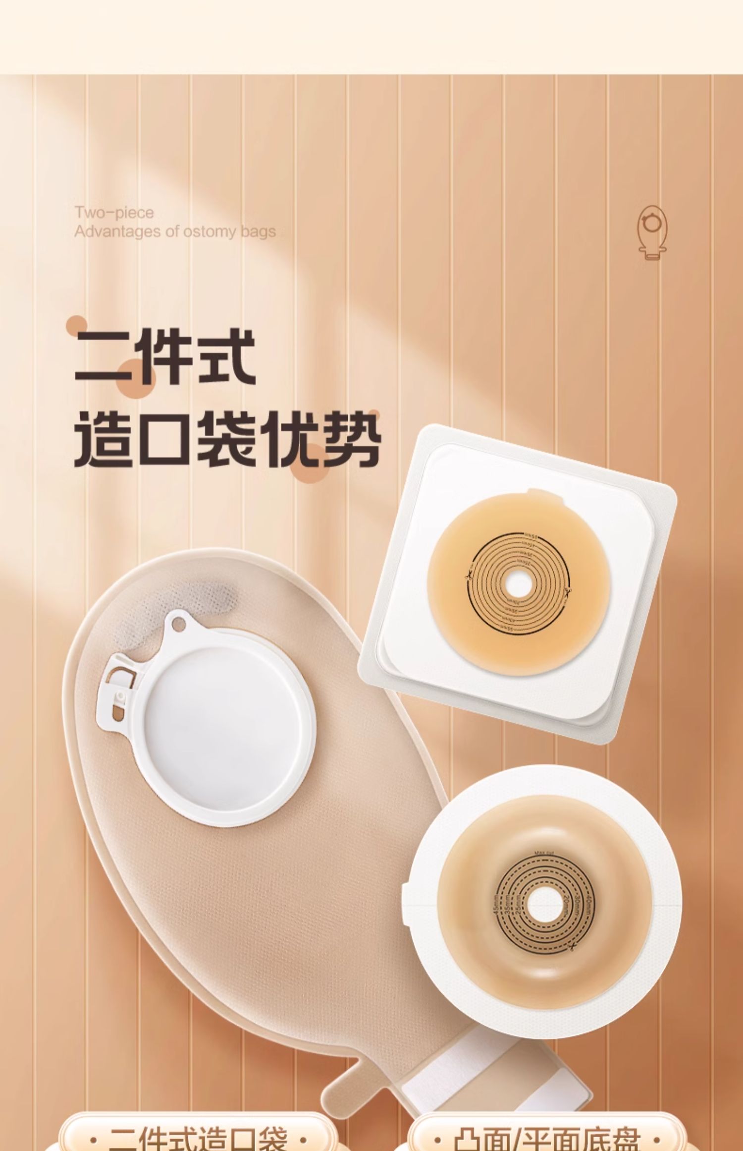 【康L保平替】新款可孚二件式凸面造口袋底盘4028/4029 微凸水胶体底盘