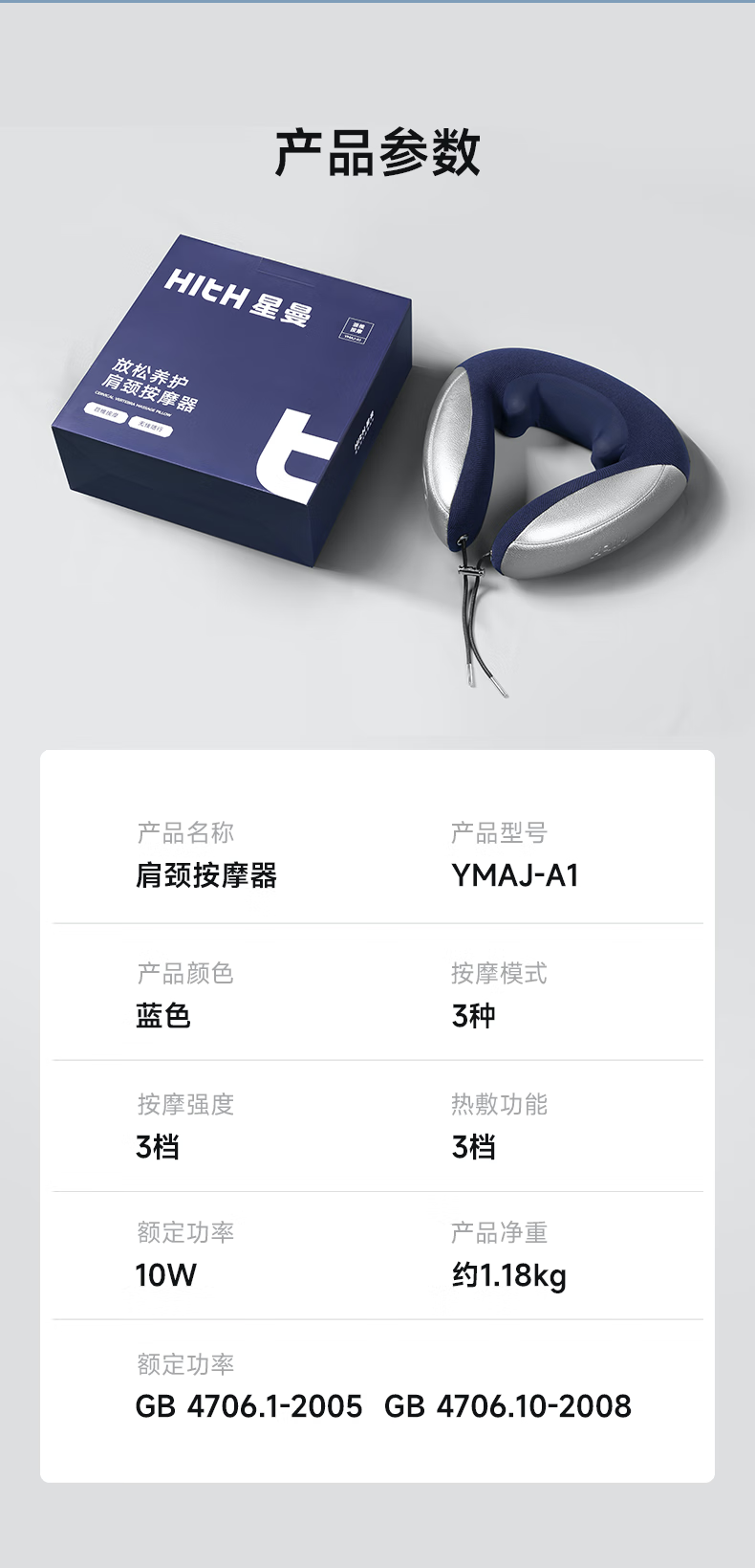 【HITH】星曼超静音肩颈按摩仪 YMAJ-A1 蓝色