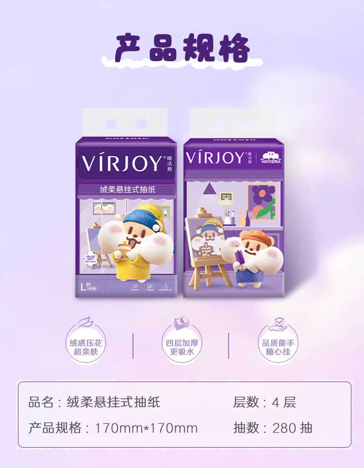 【奶茶鼠IP款】唯洁雅绒柔系列4层280抽6提L码挂抽