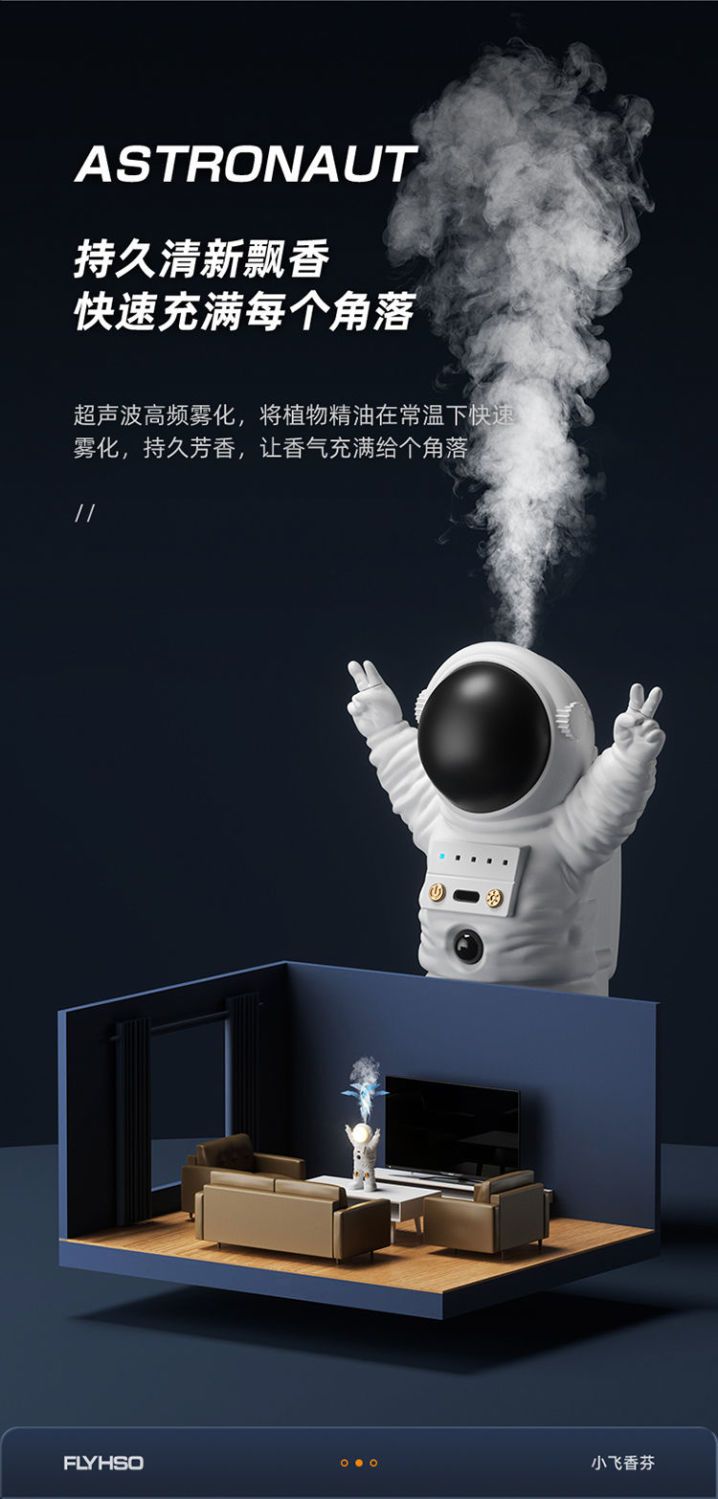 宇航员香薰机定时喷雾喷香机去异味除臭太空人创意摆件感应夜灯