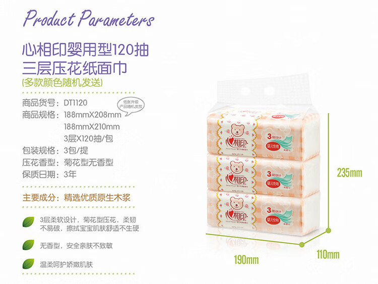 心相印软抽(婴儿专用)-DT1120120抽(3包/提)【20059217】