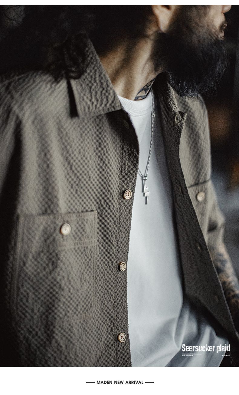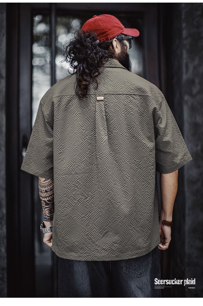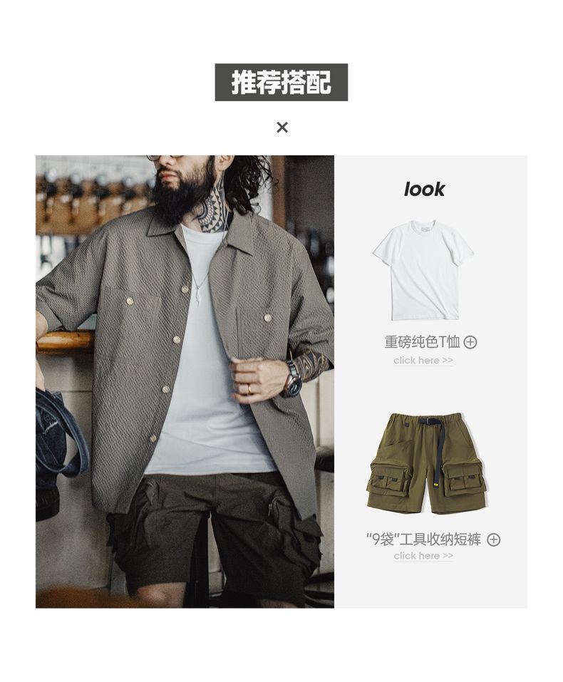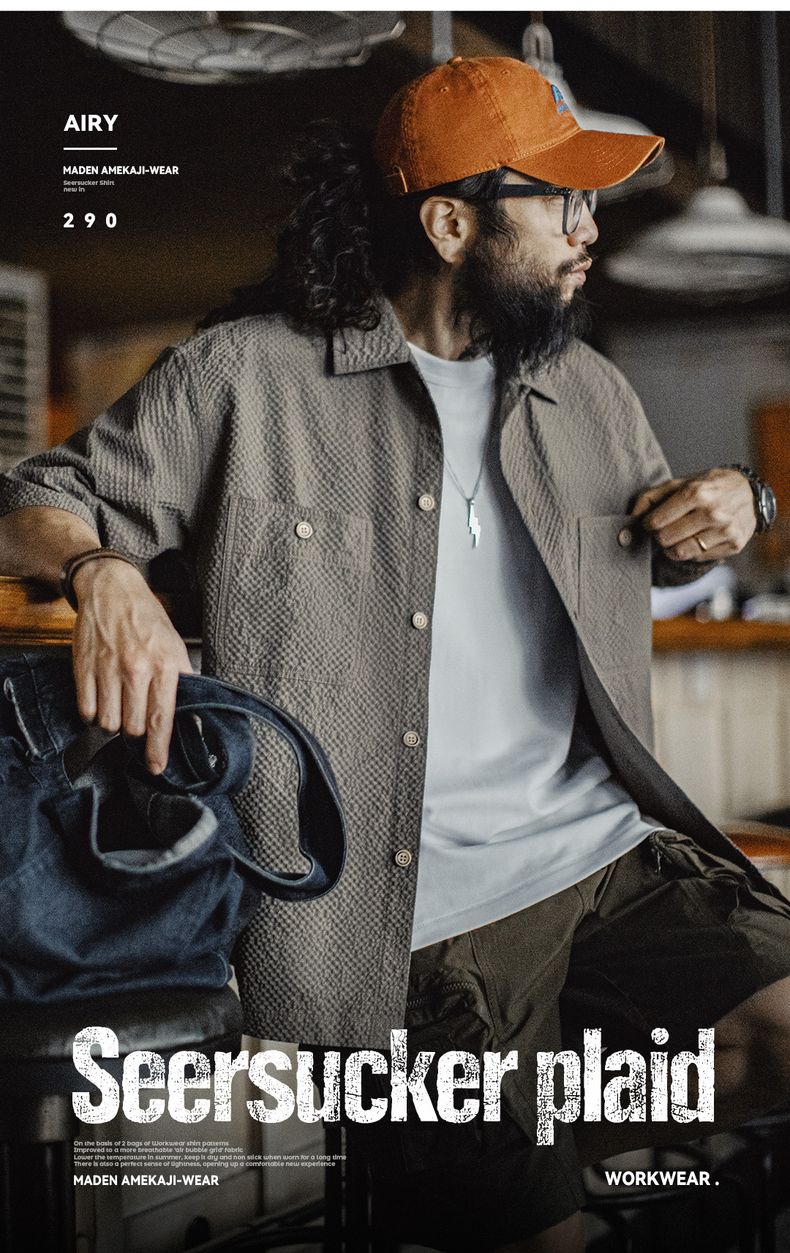 工装优选美式休闲AIRY空气感泡泡纱衬衫透气薄款衬衣外套男春夏