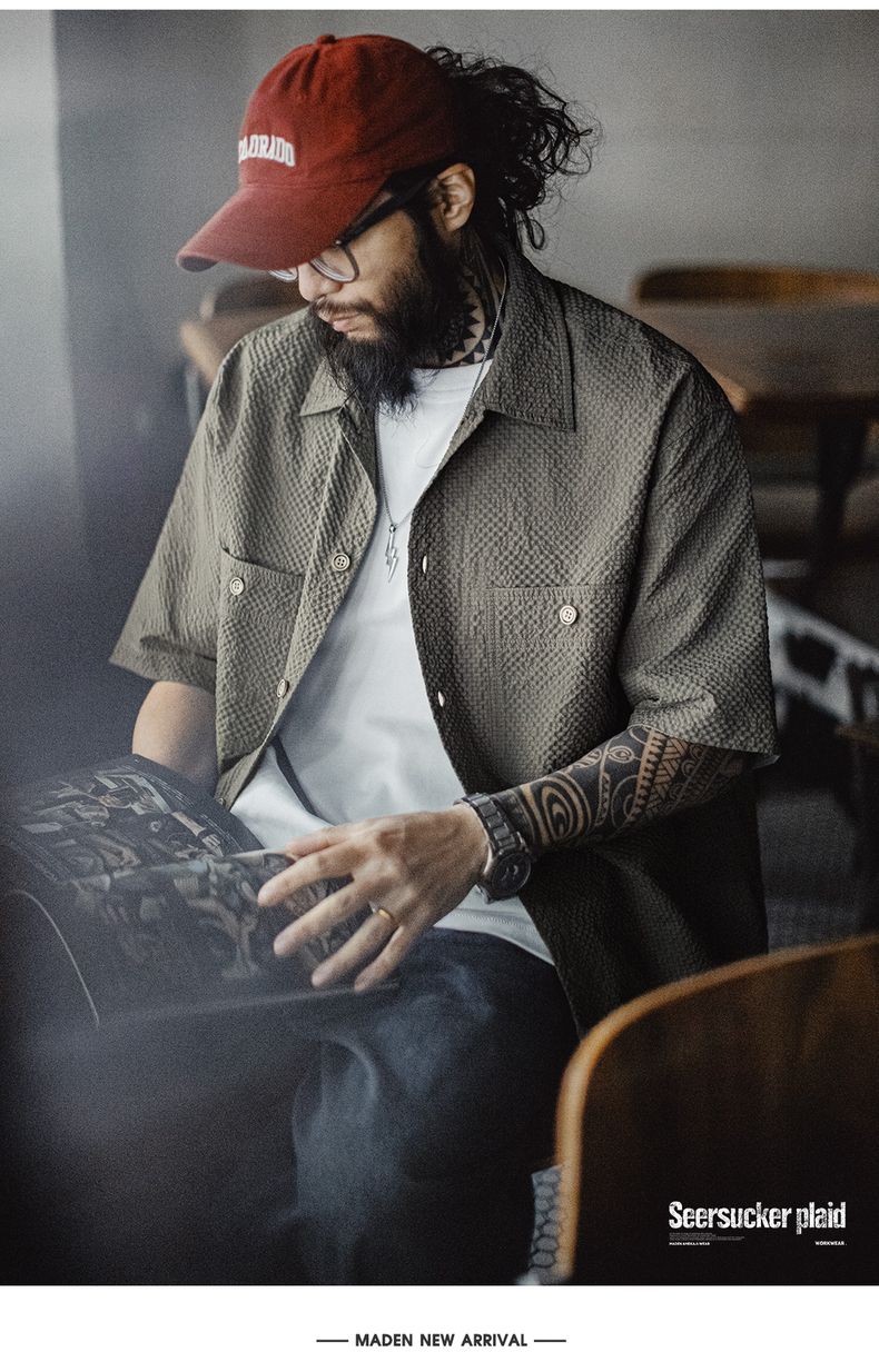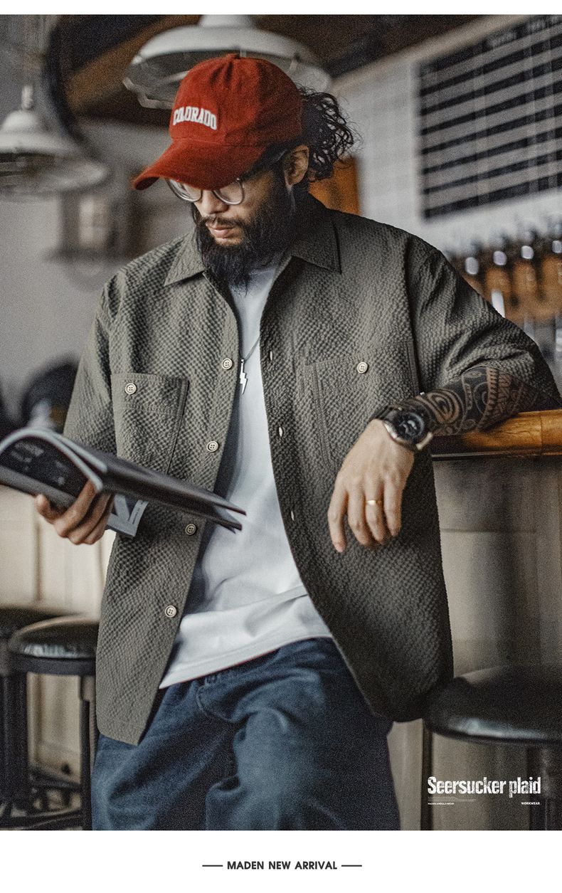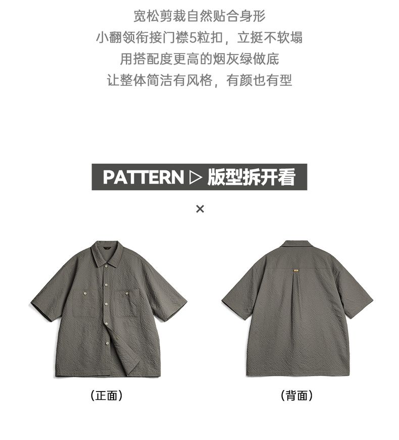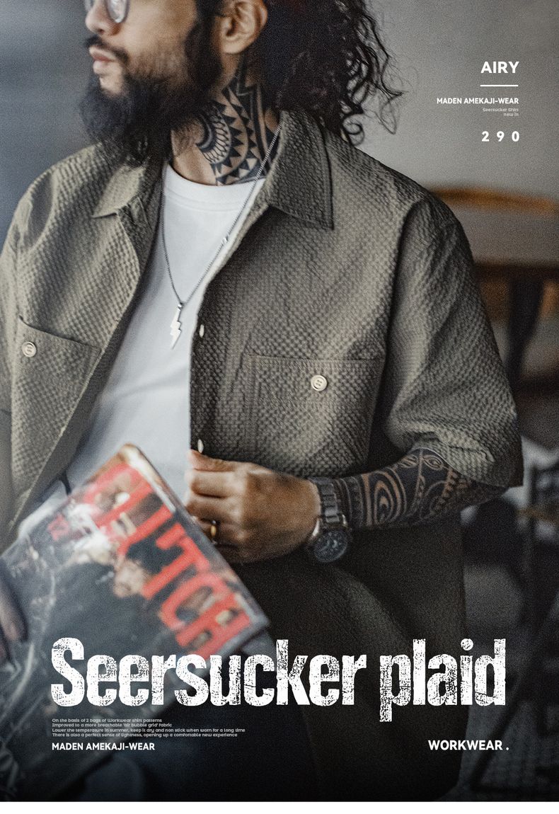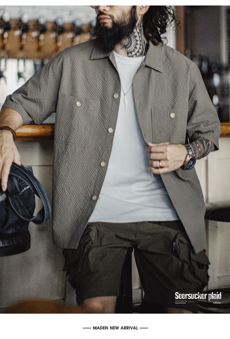 工装优选美式休闲AIRY空气感泡泡纱衬衫透气薄款衬衣外套男春夏