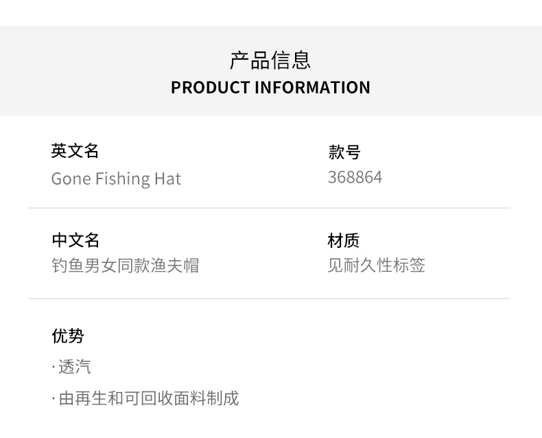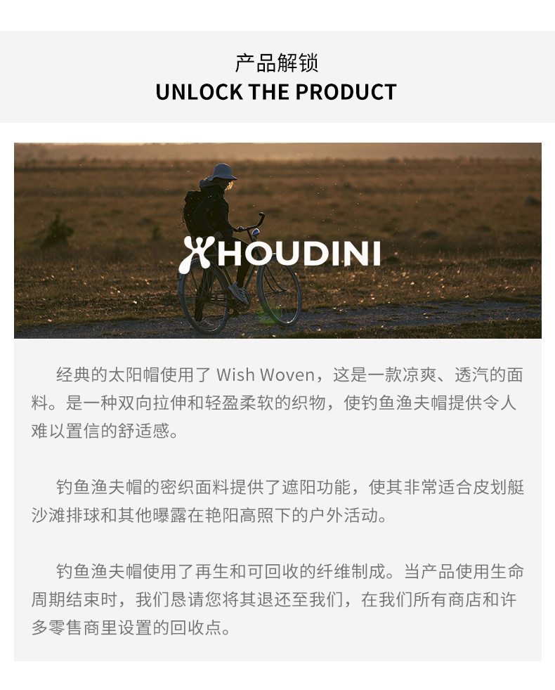 HOUDINI胡丁尼 Gone Fishing Hat 钓鱼 男女同款户外渔夫帽368864