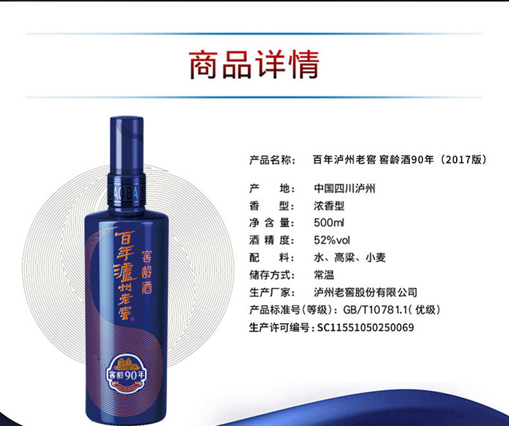 【泸州老窖官方形象店】52度百年泸州老窖窖龄酒90 500ml 浓香型白酒
