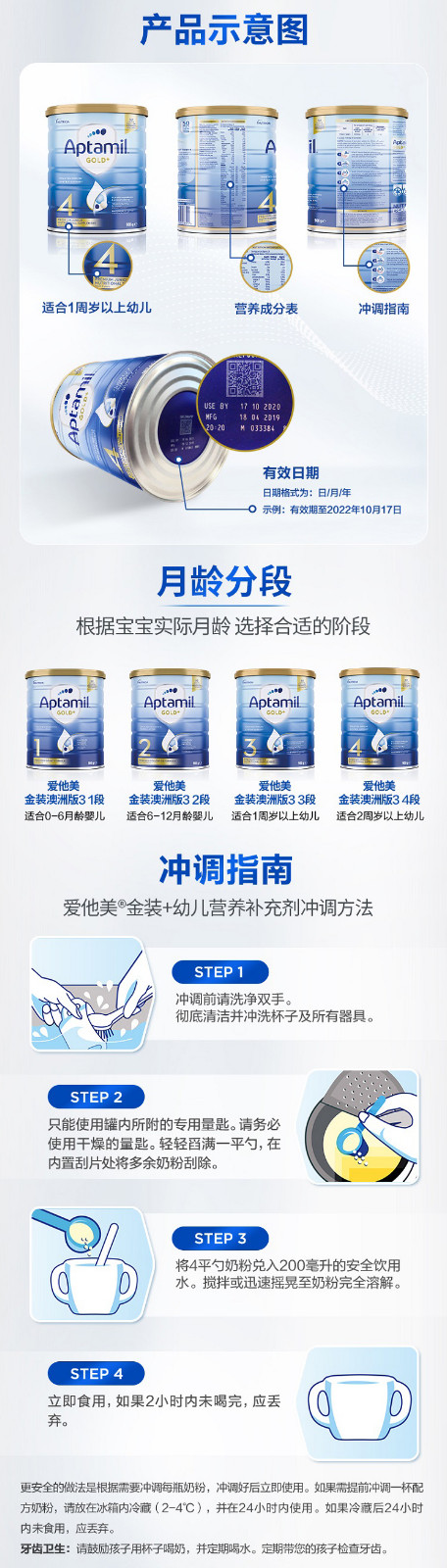 【保税仓】澳洲爱他美Aptamil金装 4段 900g 新包装