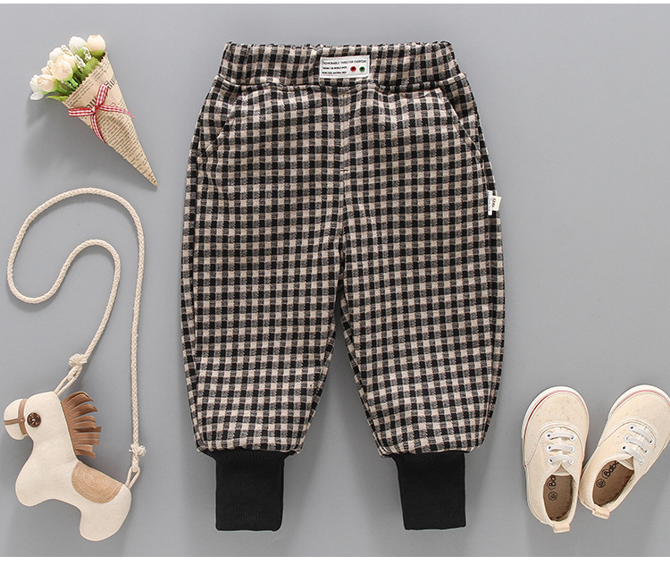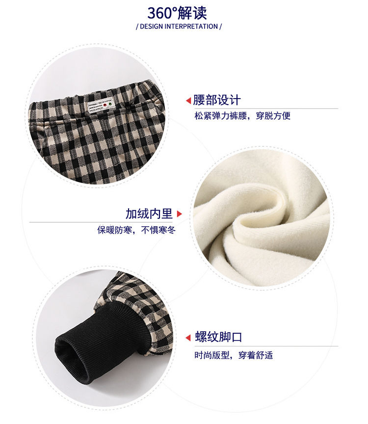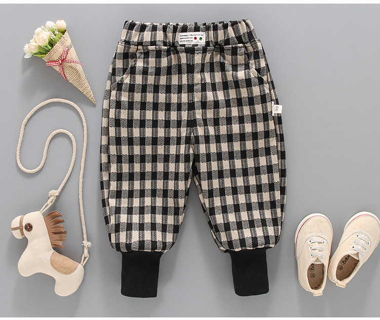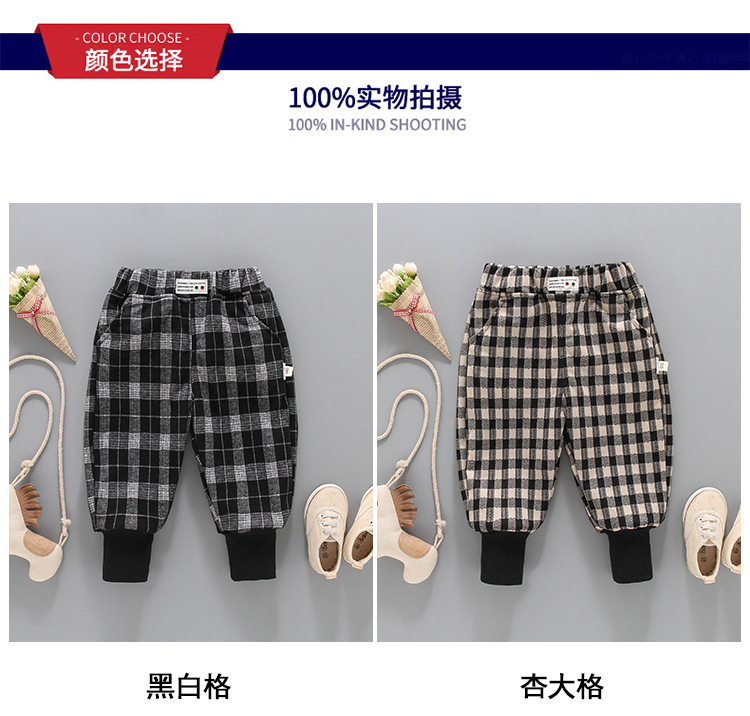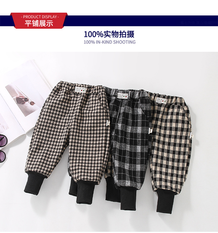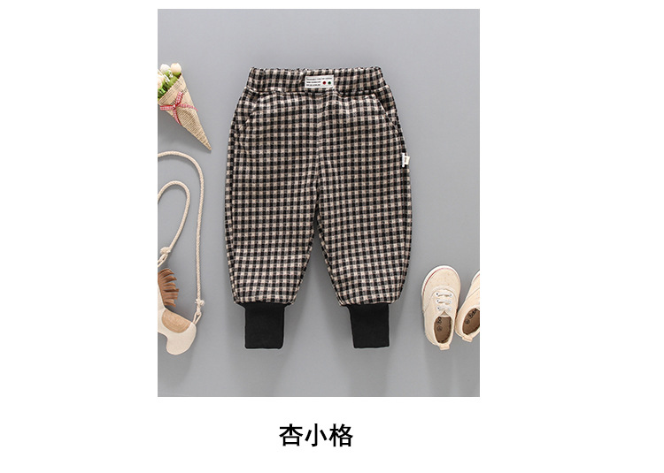 【保暖防寒 时尚舒适】冬款儿童百搭裤子 小童一体绒保暖裤 男童格子裤女童宝宝长裤童装