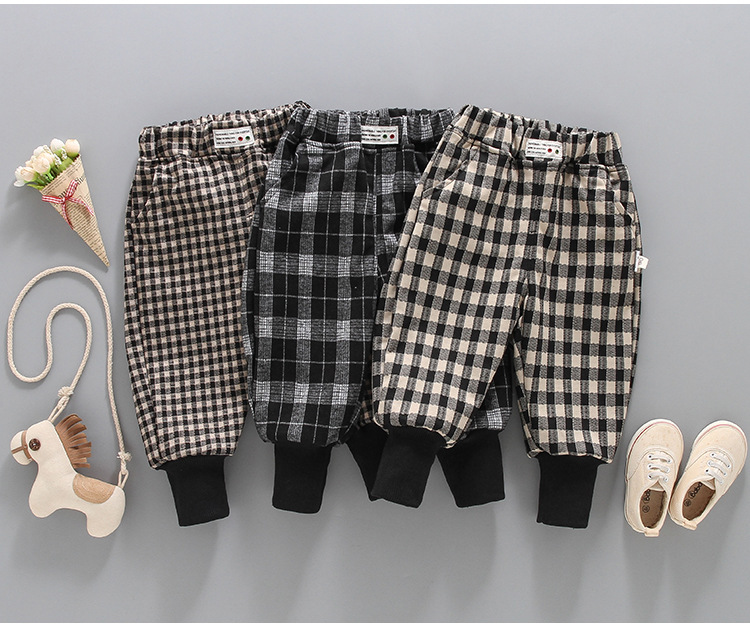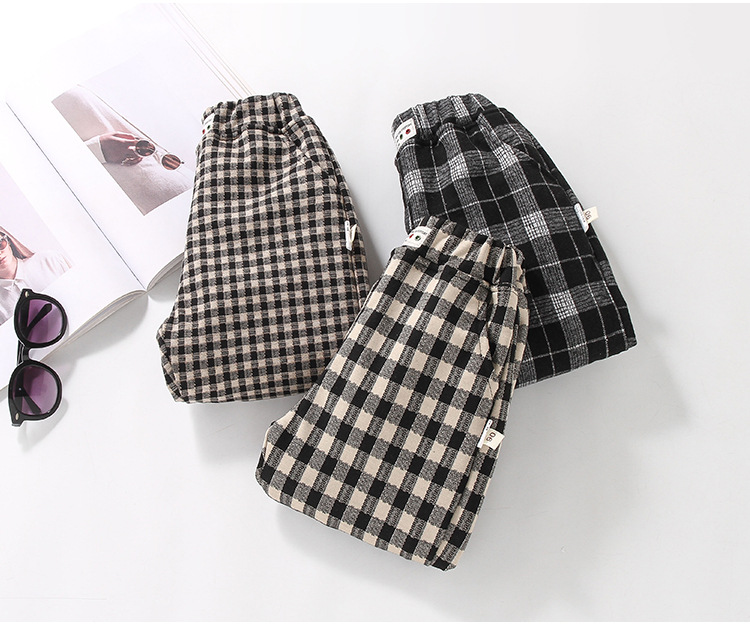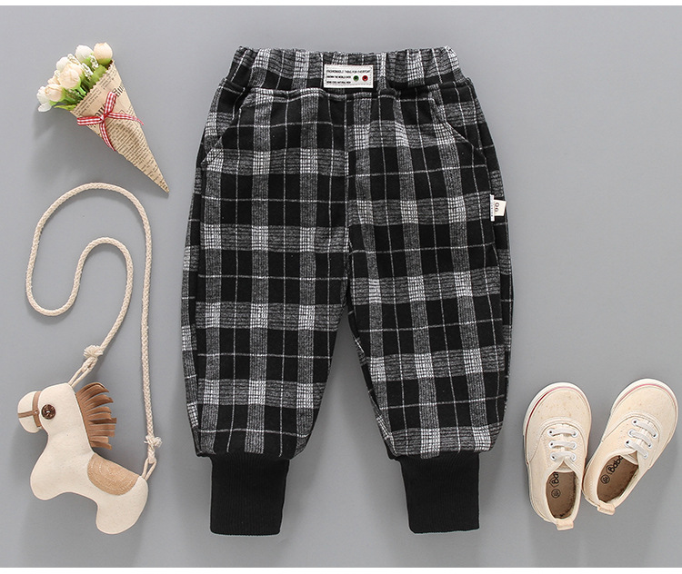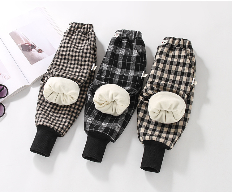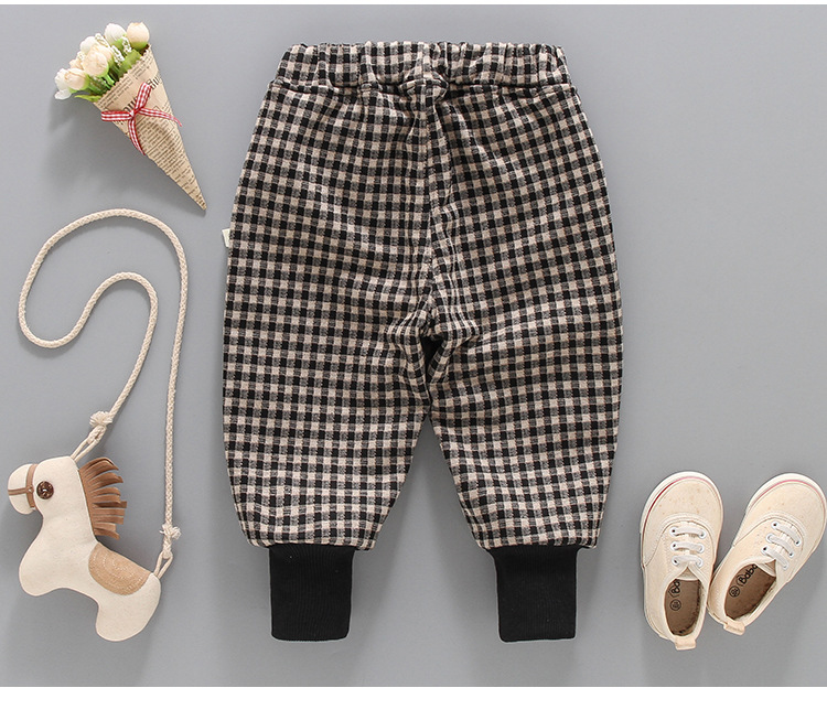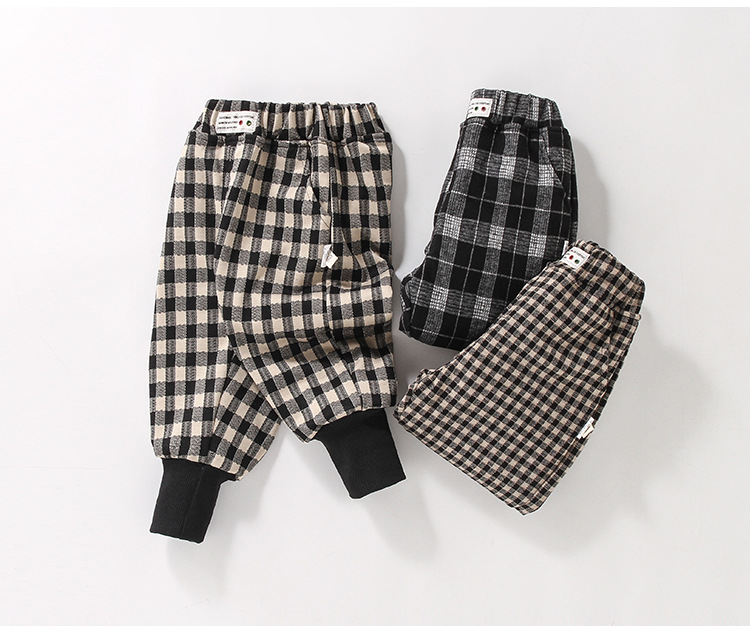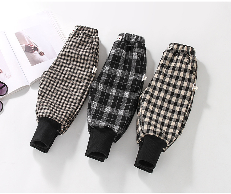 【保暖防寒 时尚舒适】冬款儿童百搭裤子 小童一体绒保暖裤 男童格子裤女童宝宝长裤童装