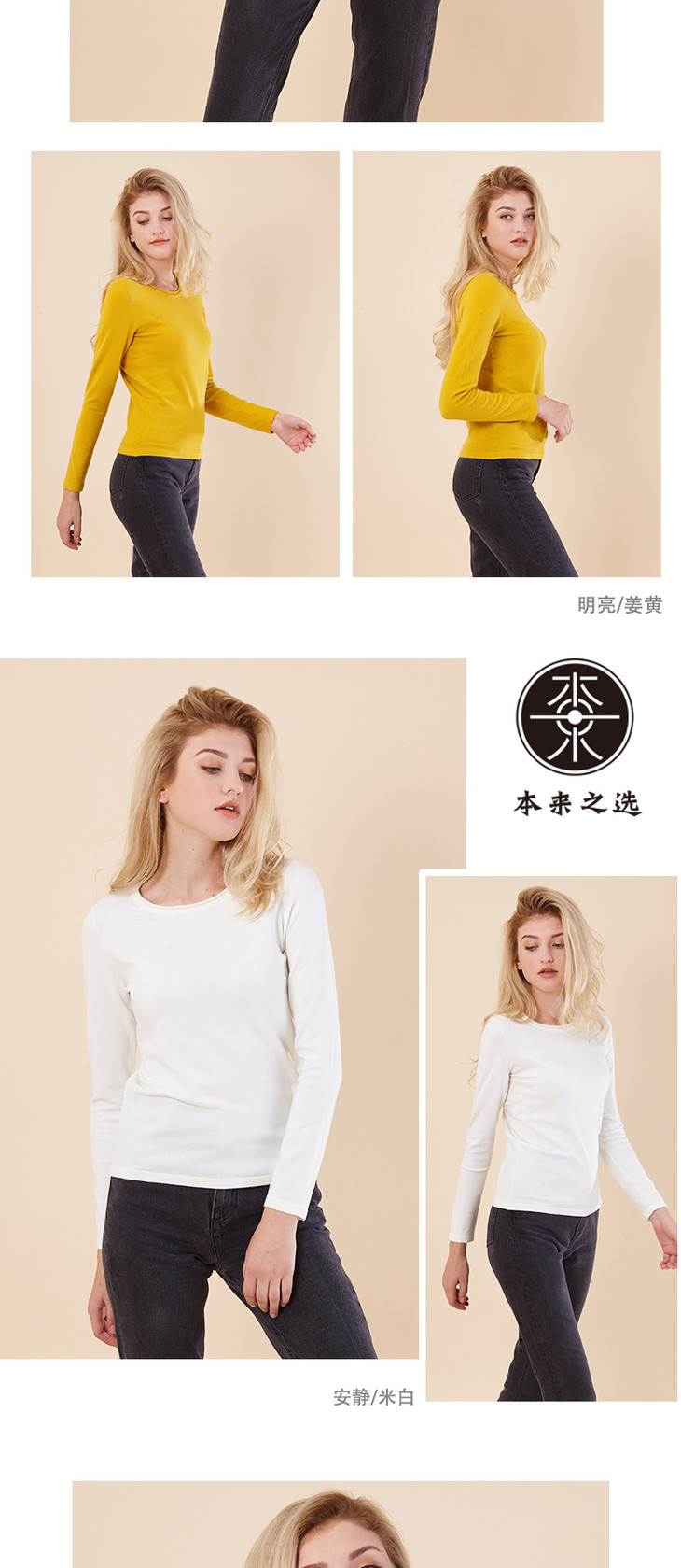 本来之选 极简通勤薄款修身毛针织衫女 圆领套头打底毛衣上衣 B9064