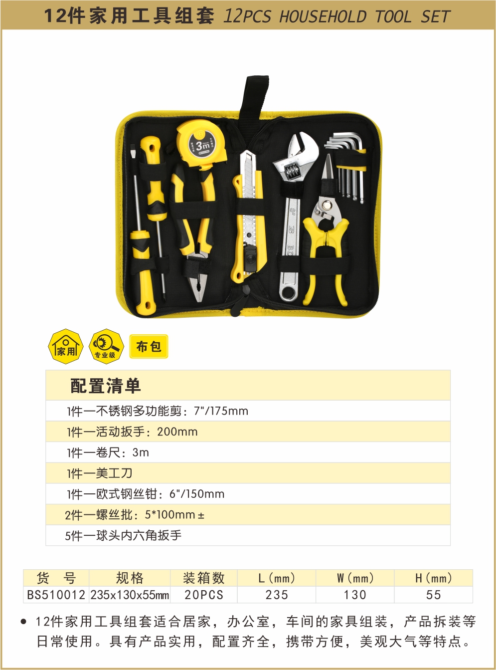 波斯 12件家用工具组套 12PC BS510012