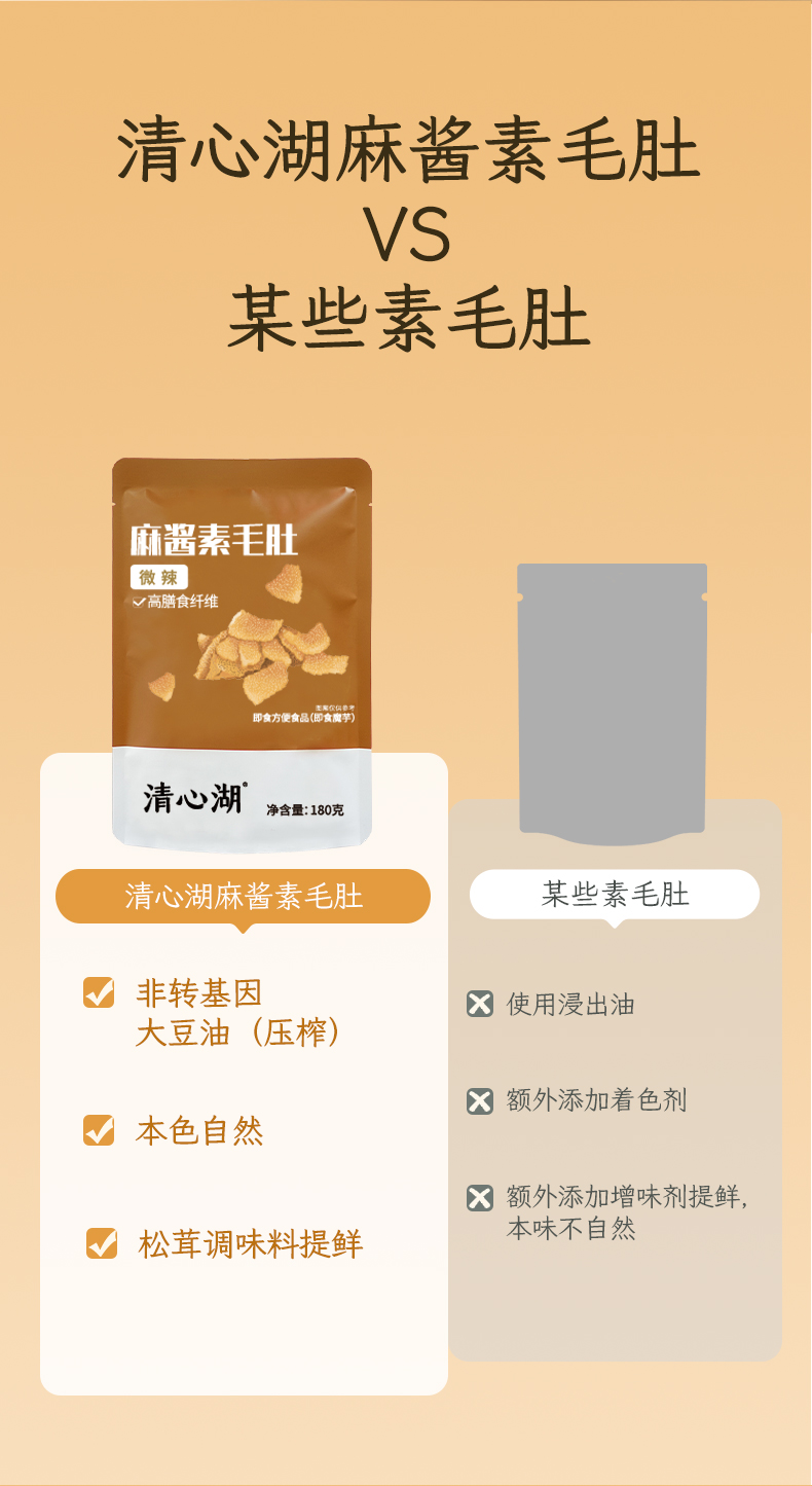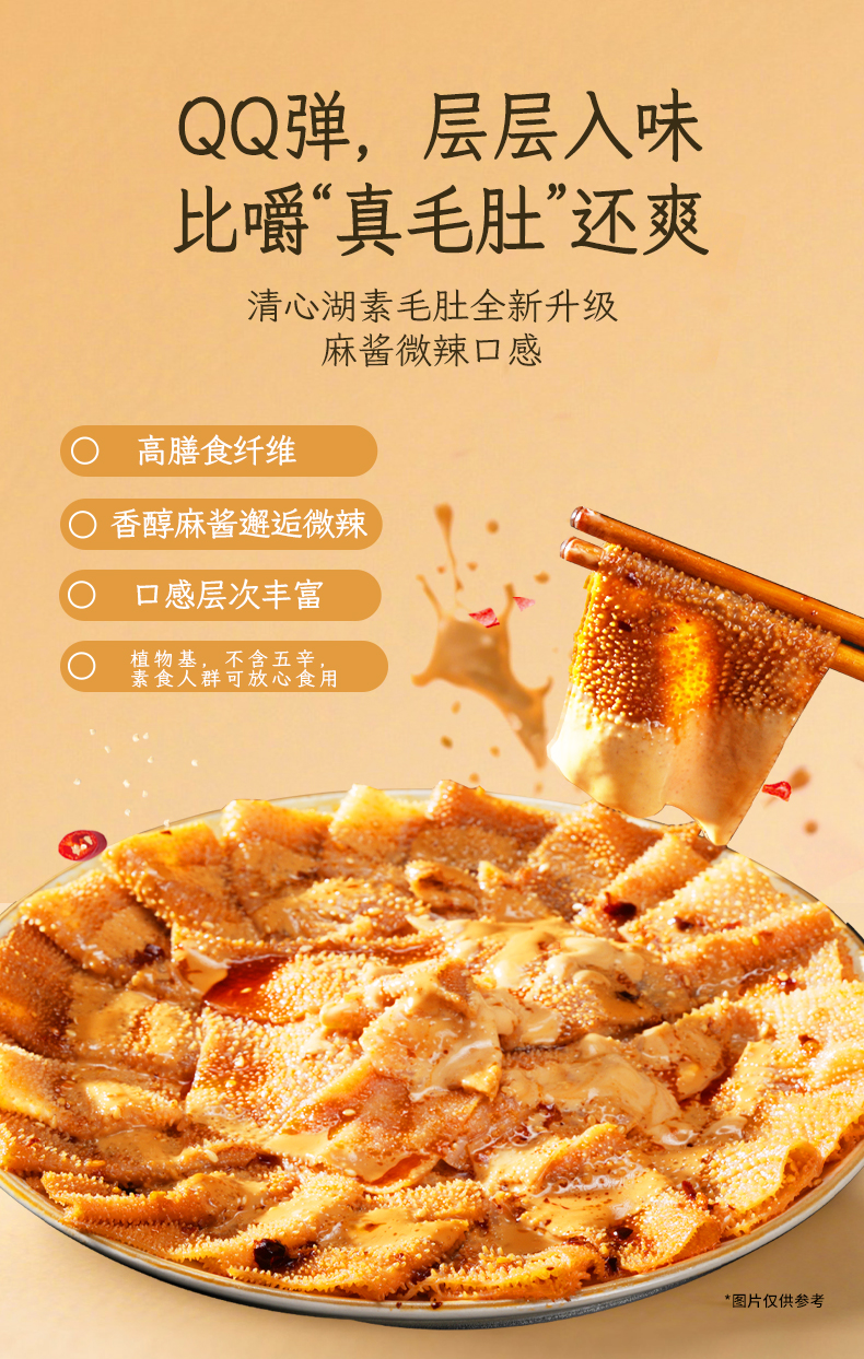 【低价秒杀】麻酱素毛肚(微辣)清心湖出品 高膳食纤维 香辣解馋 麻酱香味浓郁 Q弹爽口 微脆有韧劲 越嚼越香 纯素健康零食