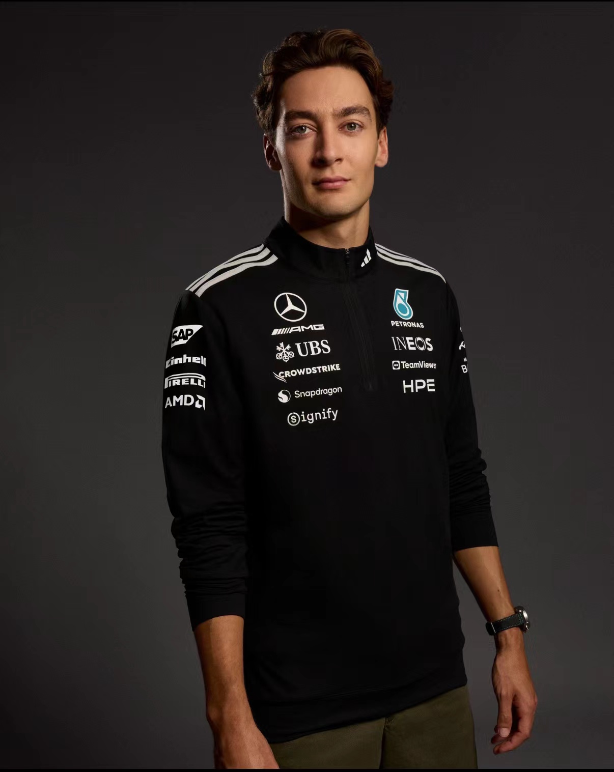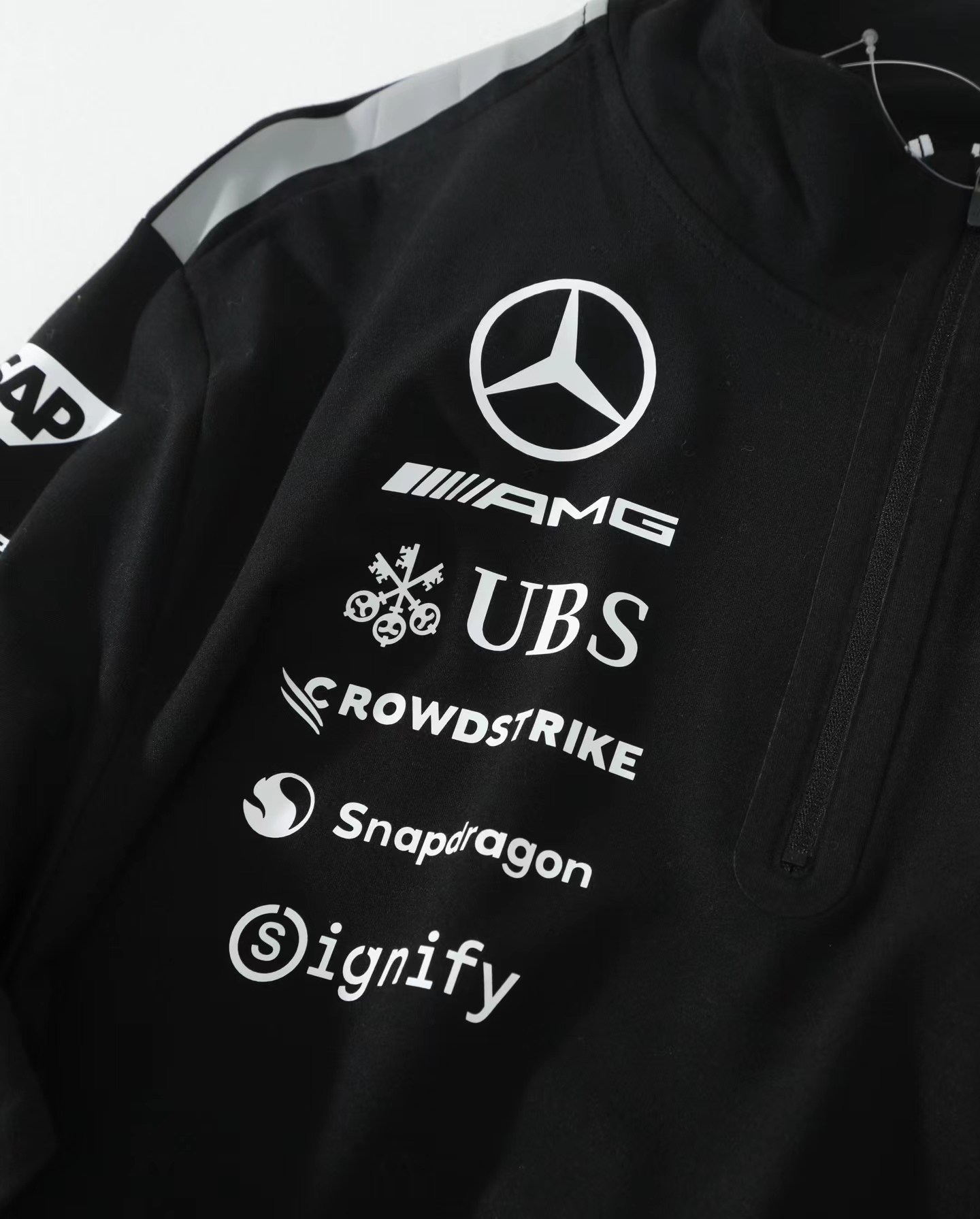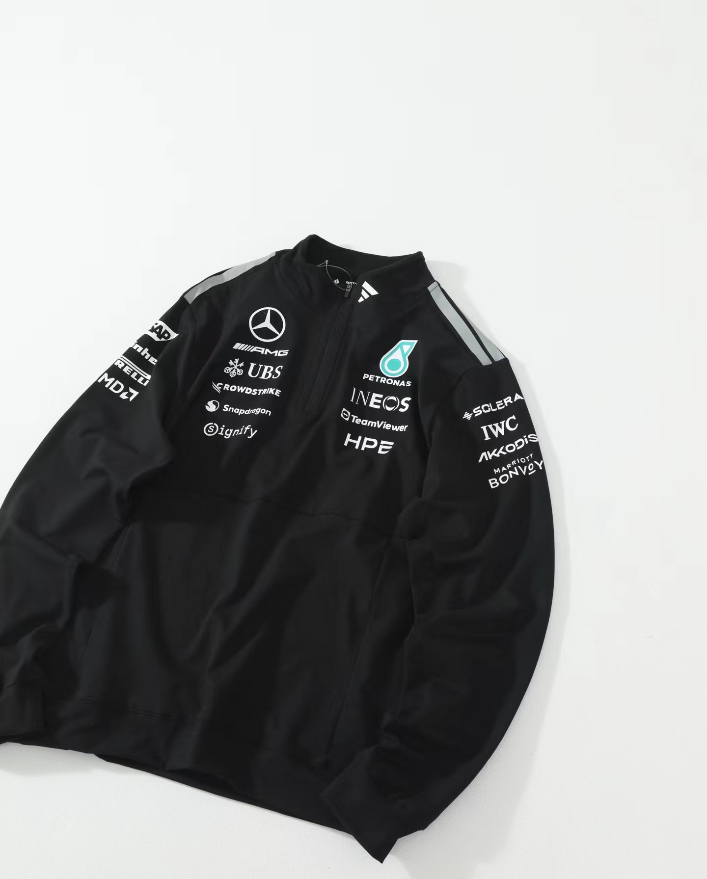 联名款时尚百搭舒适套头半拉链长袖T恤卫衣 男女同款,半拉链长袖来袭,强强联手,打造的半拉链长袖,将F1赛场的速度与激情复刻到日常穿搭中,全套赞助商标识+半拉链设计+高弹透气面料,是车迷与潮流玩家的必入收藏款!半开拉链设计,可自由调节开合度,既能打造利落高领造型防风御寒,也能营造随性V领效果,一衣多穿适配不同场景。甄选弹力面料,柔软亲肤、透气排汗,告别普通卫衣的闷热感,日常通勤、户外出行都能自在舒适。