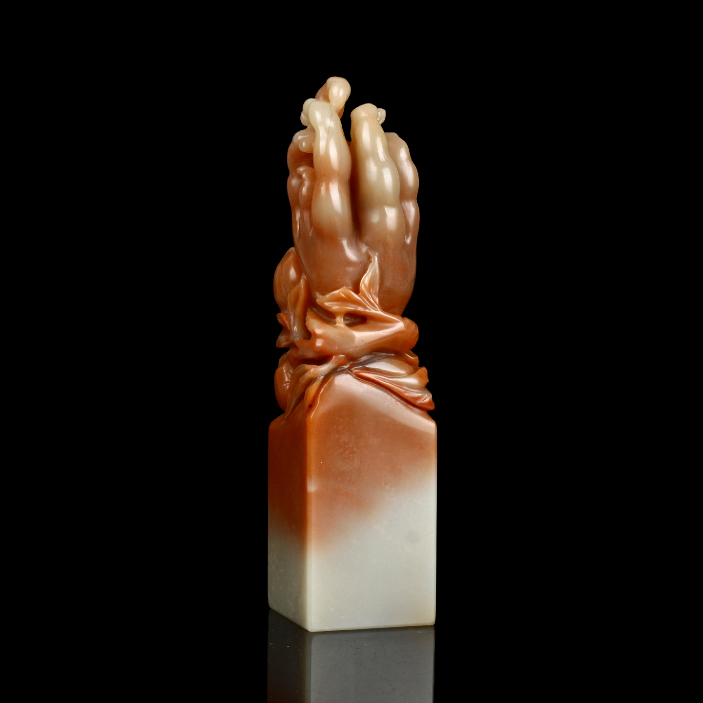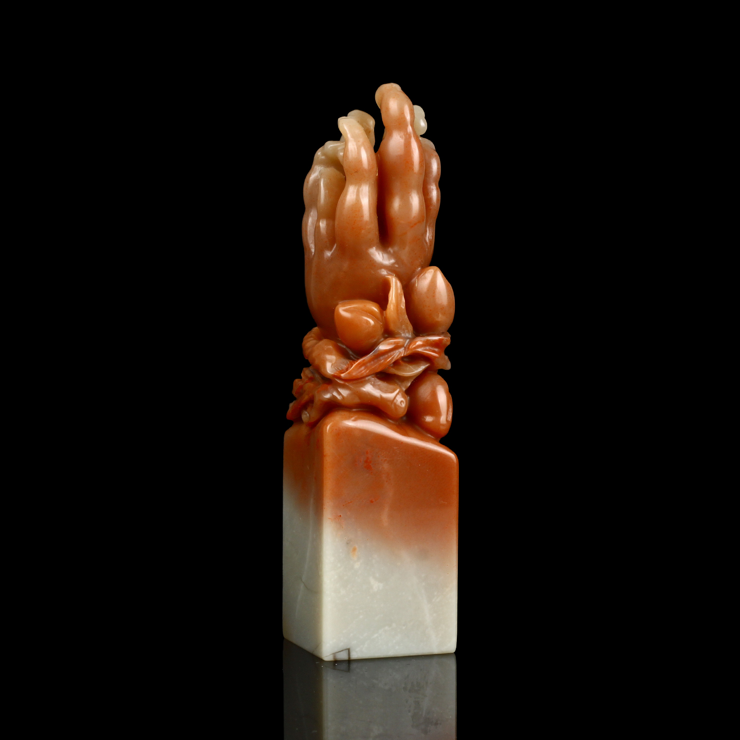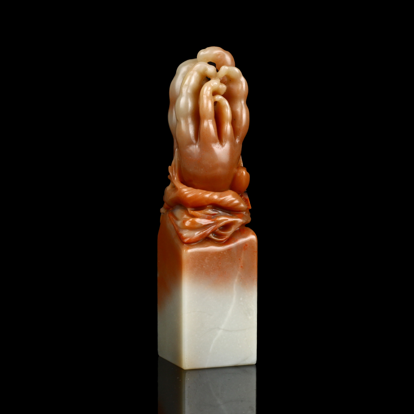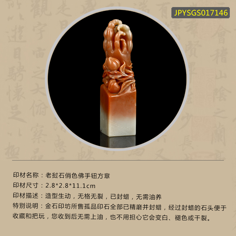 孤品017146-老挝石俏色佛手钮方章-2.8*2.8*11.1cm