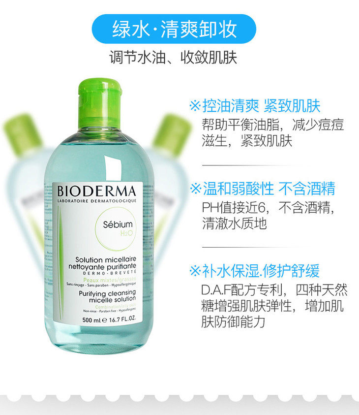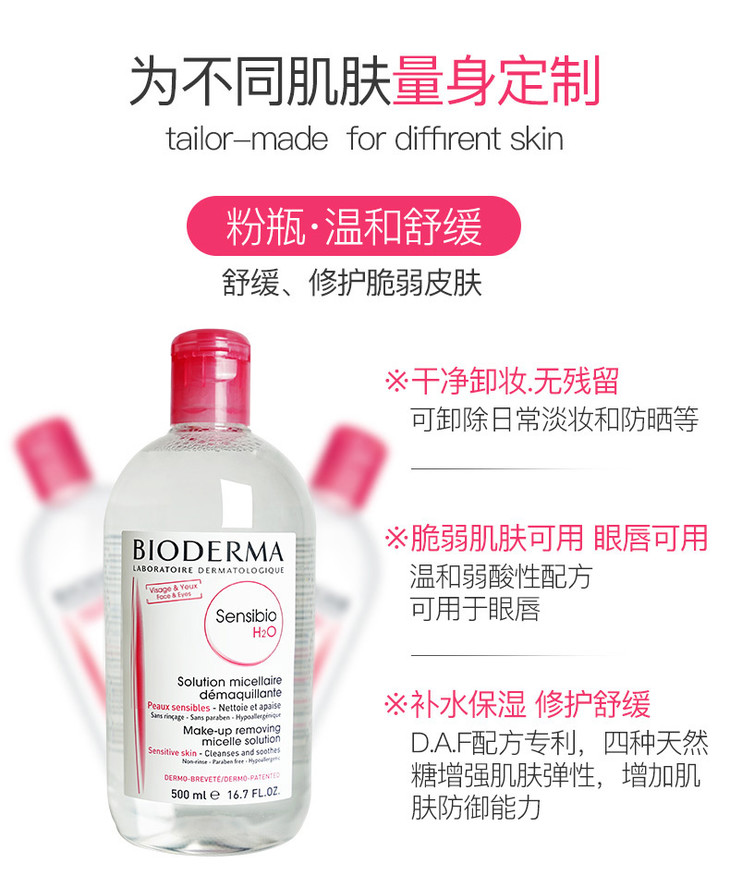 现货▲法国 贝德玛 4合1舒妍洁肤液 卸妆水500ml 粉水 中干敏感 清爽控油