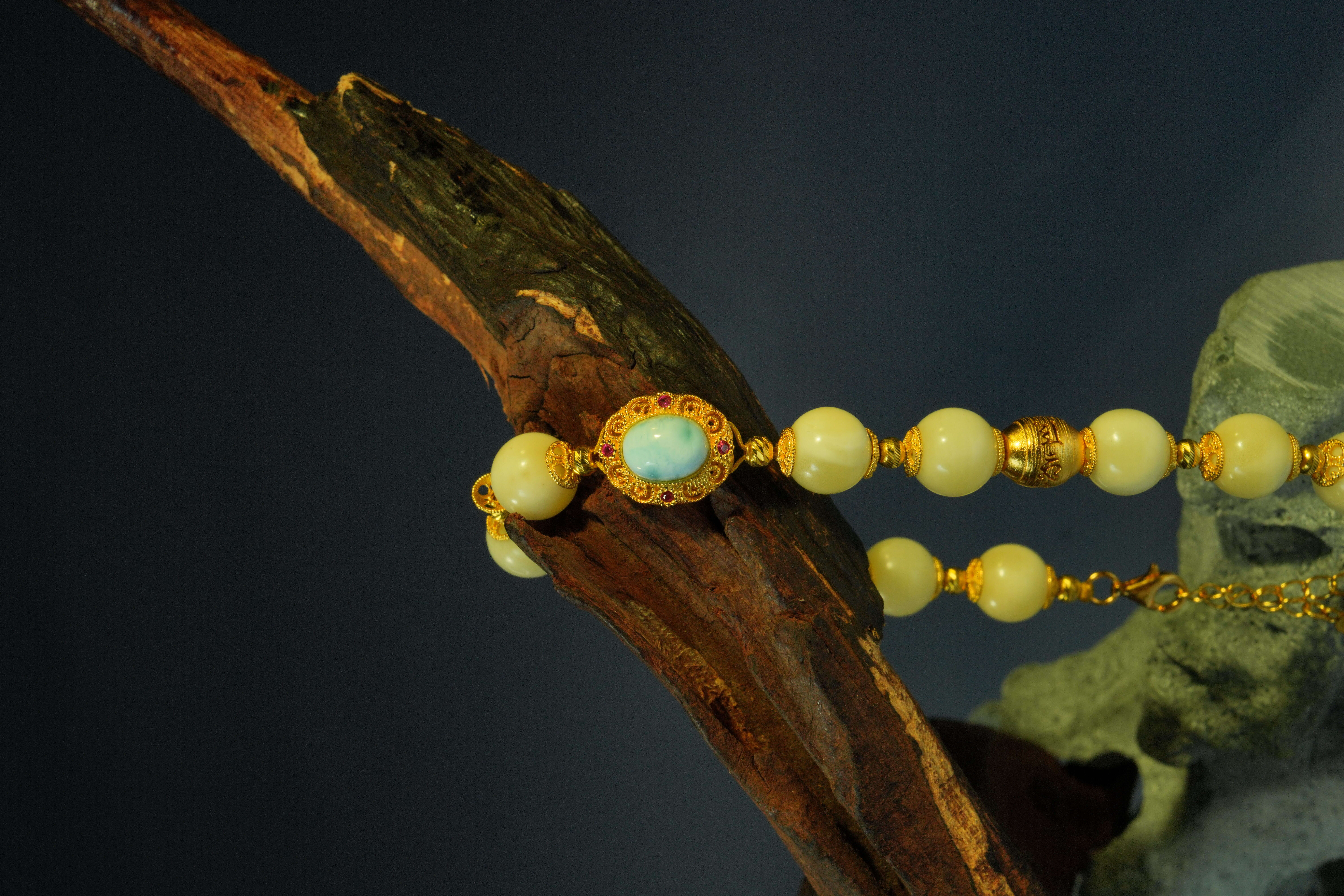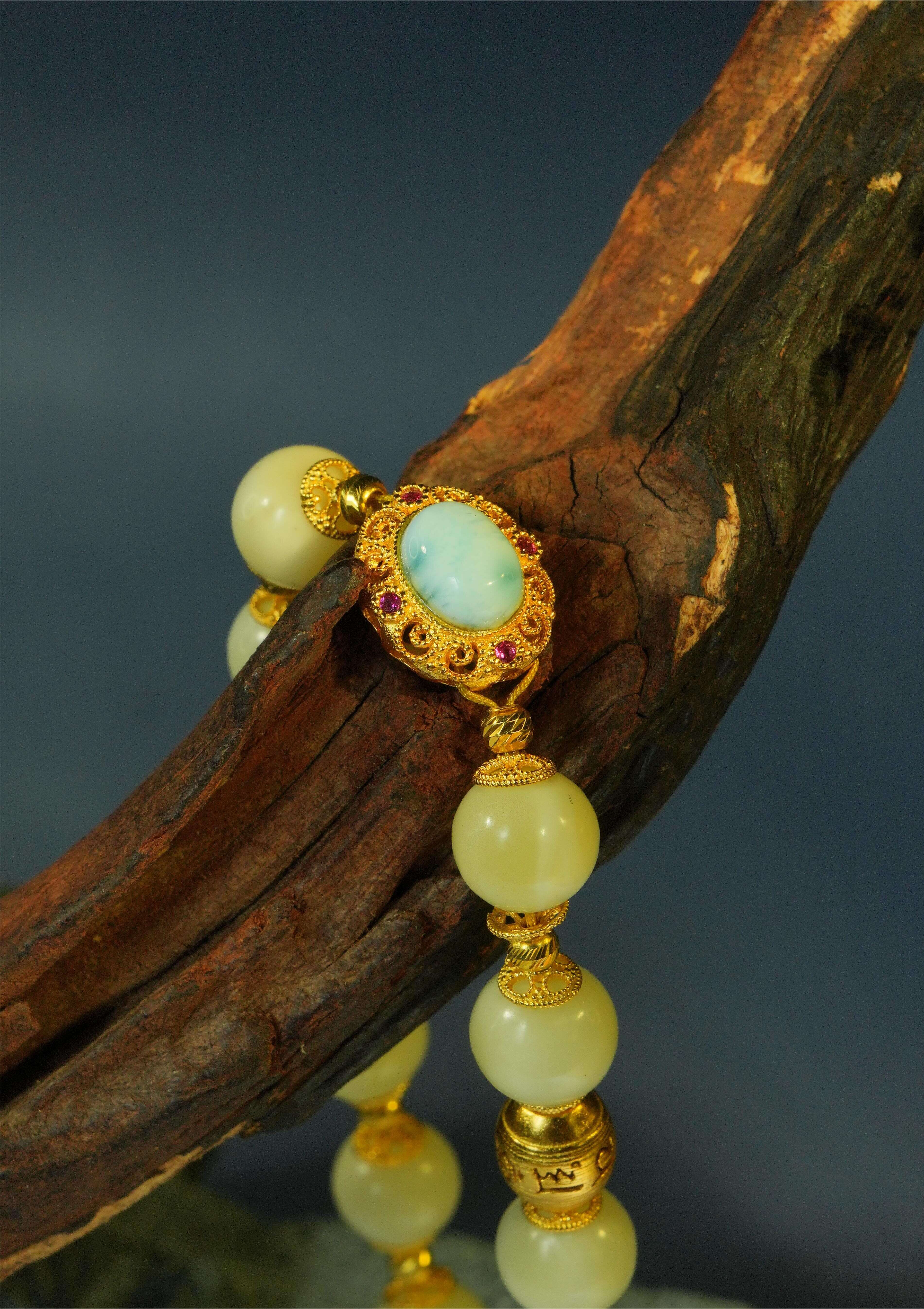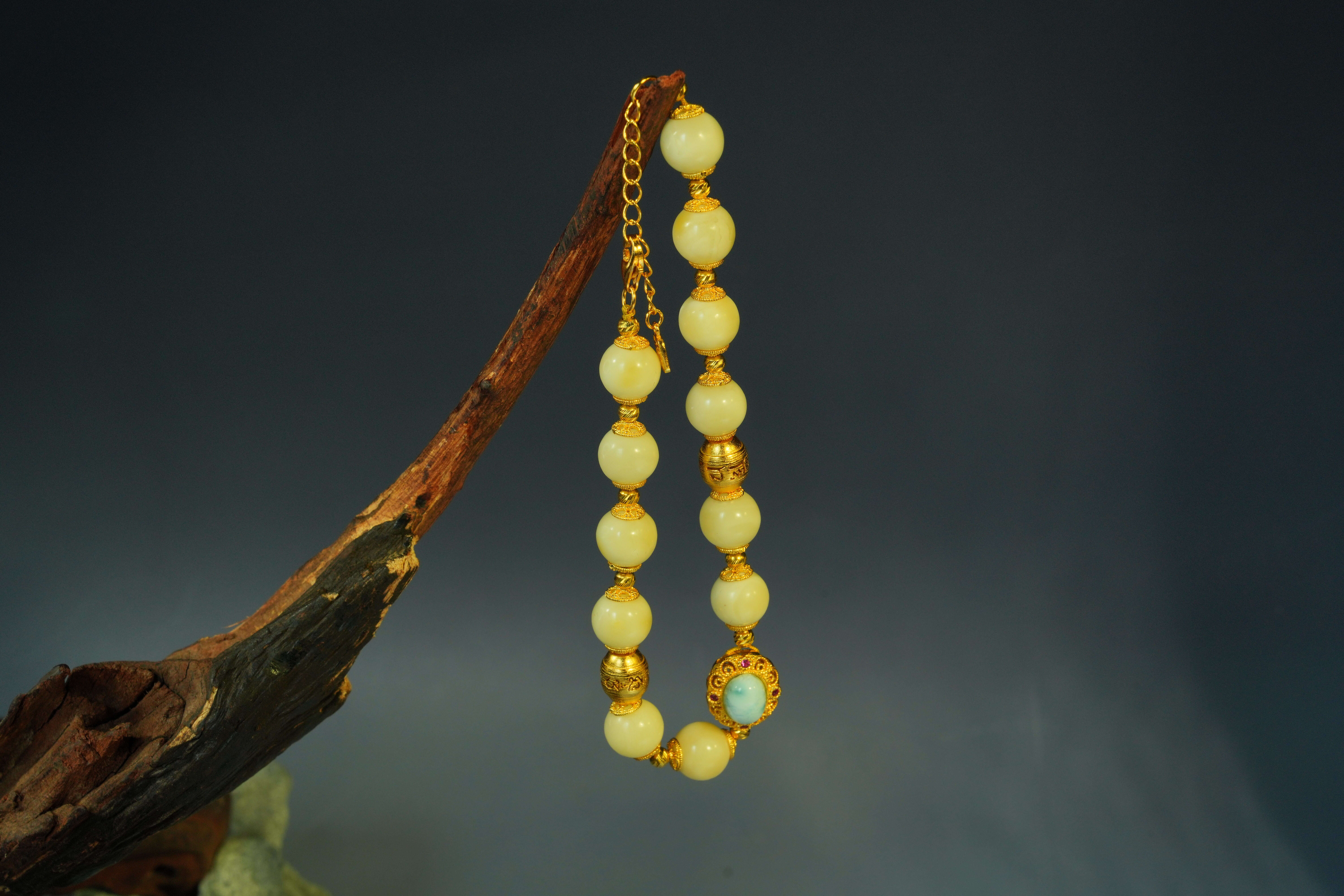 天然原矿白花蜡妖花超精工手串,花纹妖娆漂亮,有层次,颗颗有纹 又白又花 。白蜡极度稀有,产量稀少,大概占整体蜜蜡的百分之一左右。同时白蜡以纯净无杂,白度高,润度好、不干涩的质地很受大家喜爱。经过人体长期佩戴,在温度和油脂的滋养下氧化包浆变色,会使黄白流纹变得层次分明,越发美丽光泽动人。白蜡也称为香珀,它的香味相对于其他蜜蜡琥珀气味更清纯,更醒脑,因为白蜡里面的琥珀酸含量是最高的,能增强人体免疫力,对身体极有好处。