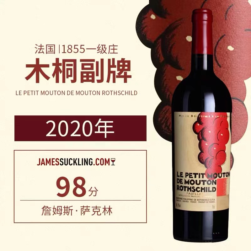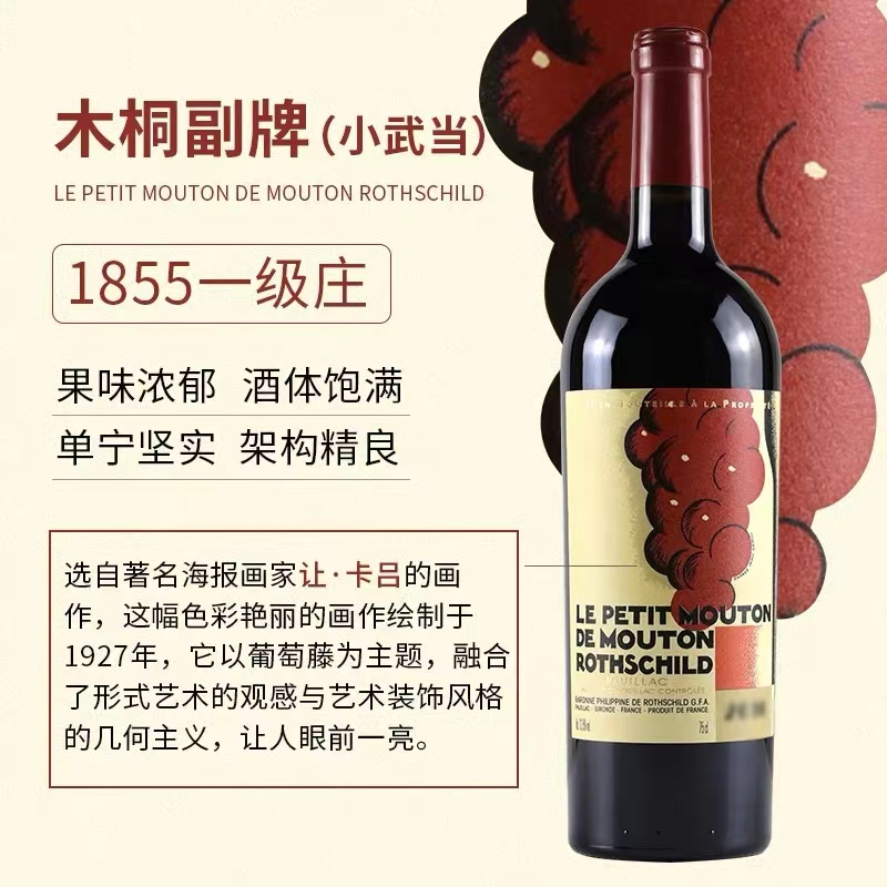 木桐酒庄副牌干红葡萄酒Mouton Rothschild 2020年份|法国五大名庄罗斯柴尔德家族的的小木桐,酒标来自著名艺术家让.卡吕的画作,酿造工艺与正牌酒基本一致,演绎着一级庄的优雅与醇厚~