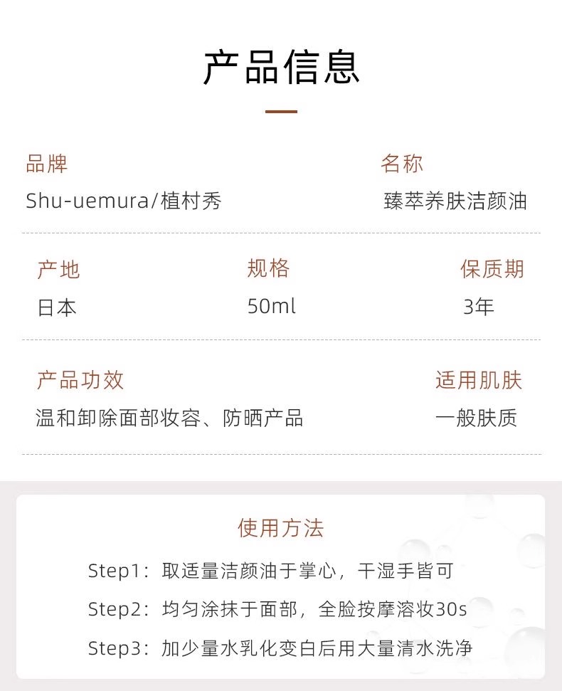 植村秀黄金琥珀臻萃洁颜油 50ml中小样 卸妆油 深层清洁 舒缓肌肤