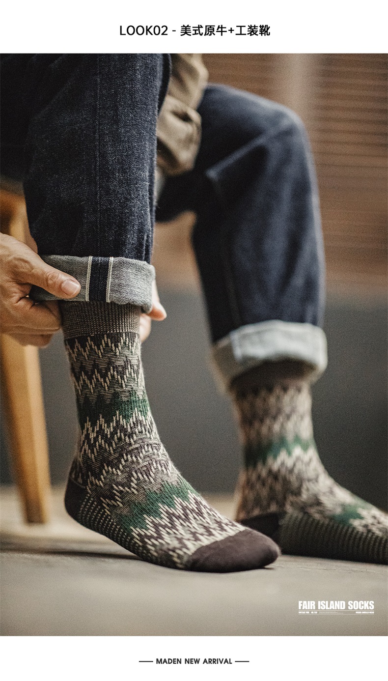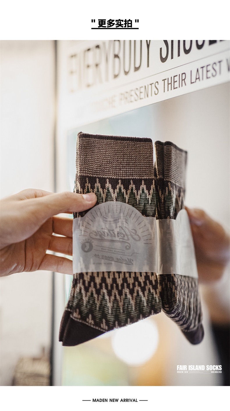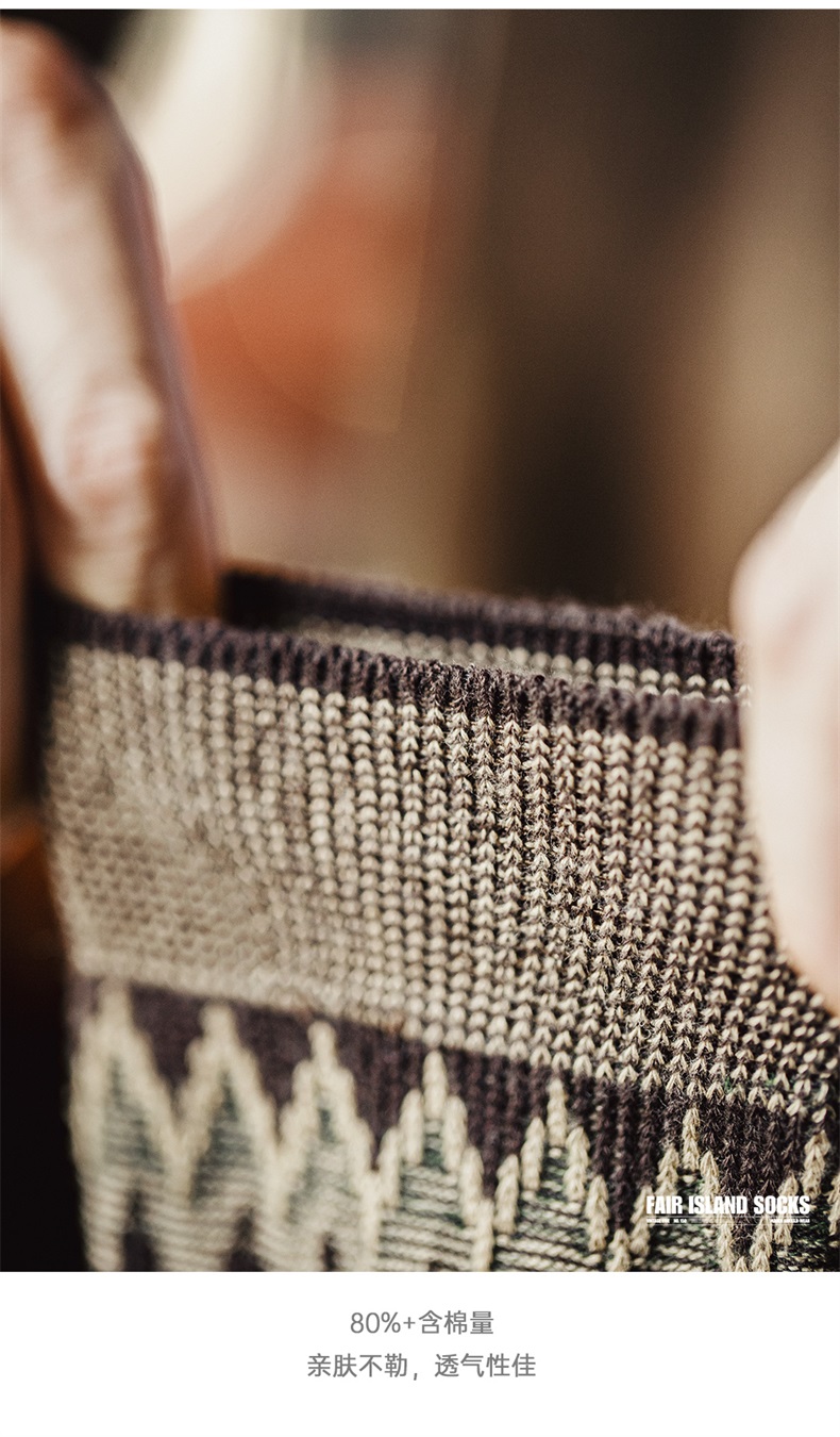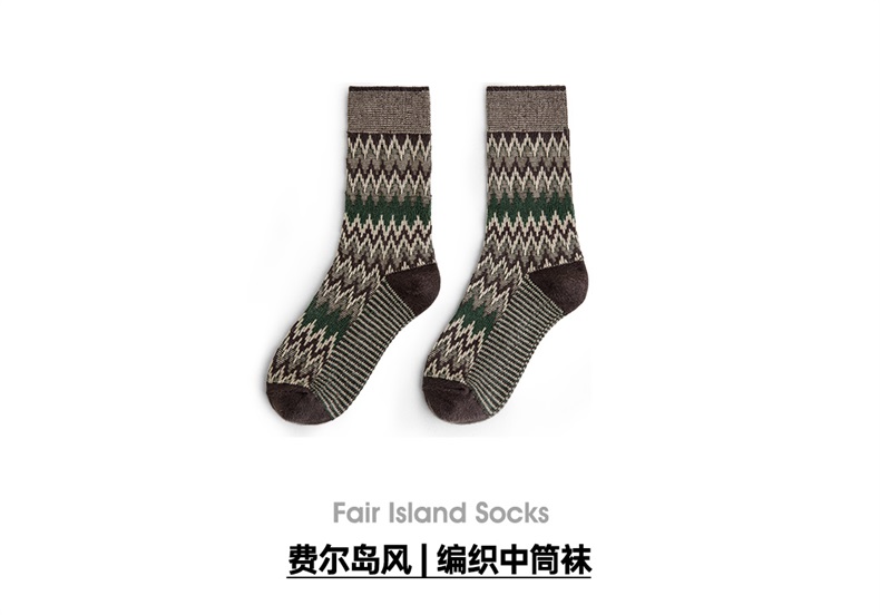 工装优选复古费尔岛编织中筒袜民族风长袜撞色针织棉袜子男女秋季