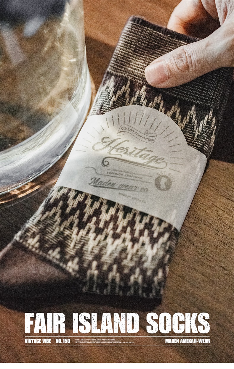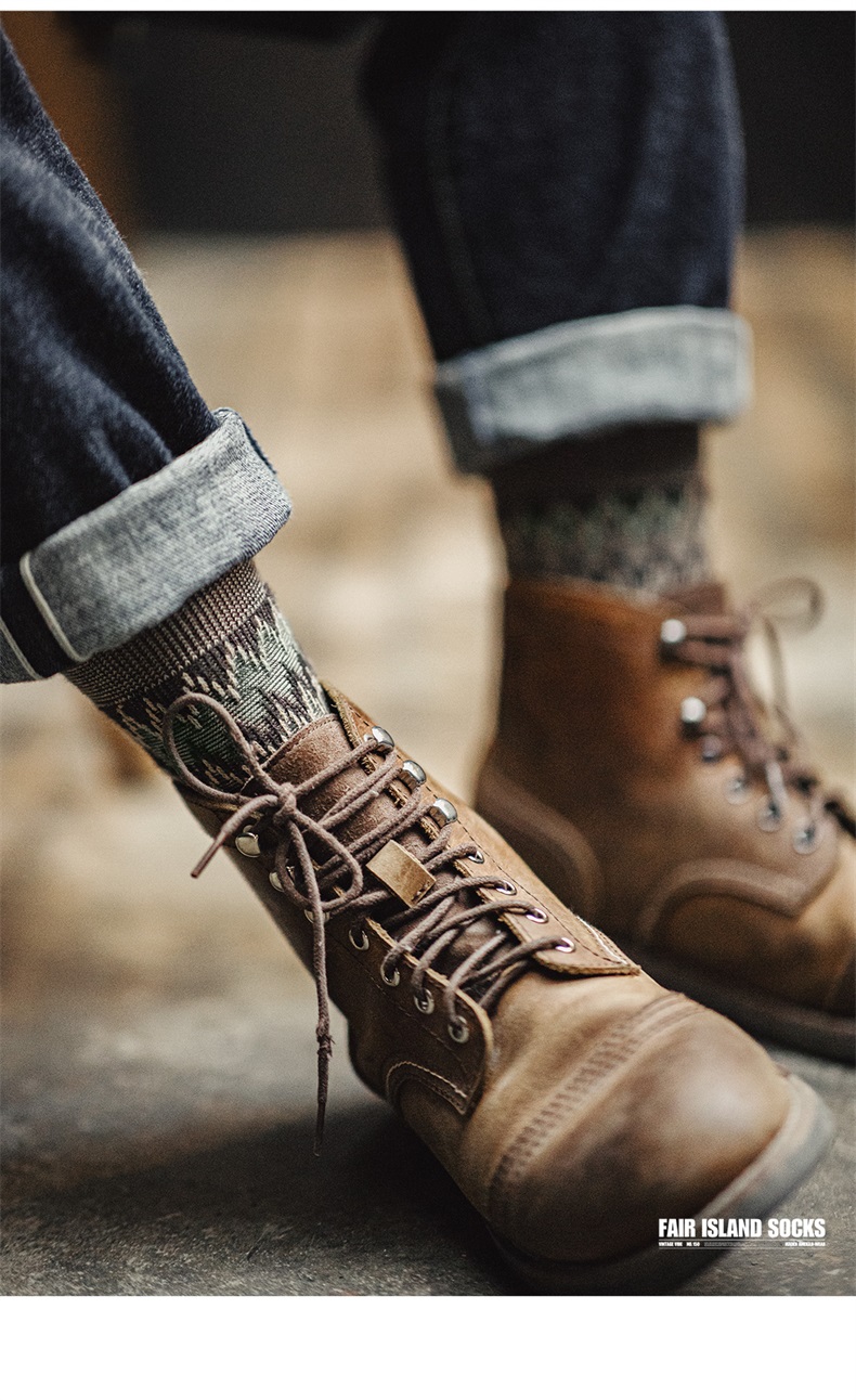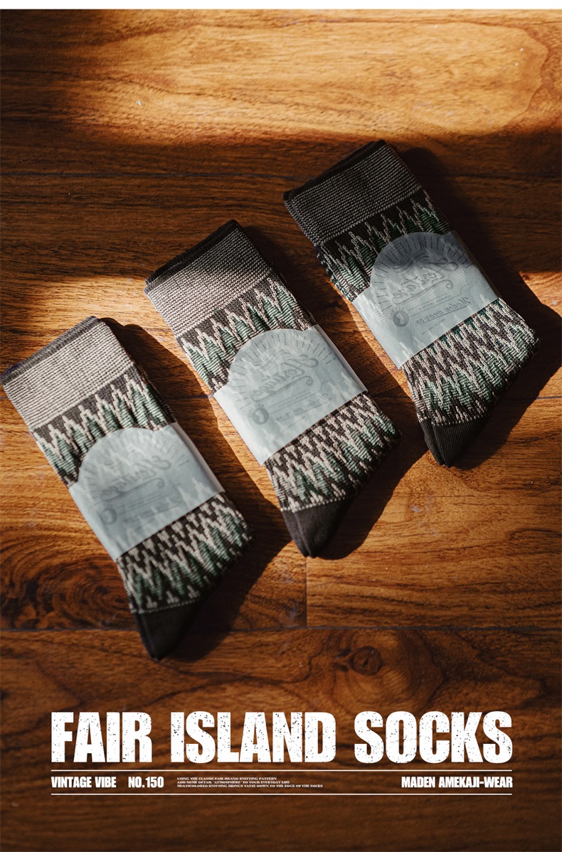工装优选复古费尔岛编织中筒袜民族风长袜撞色针织棉袜子男女秋季