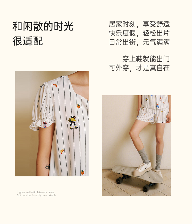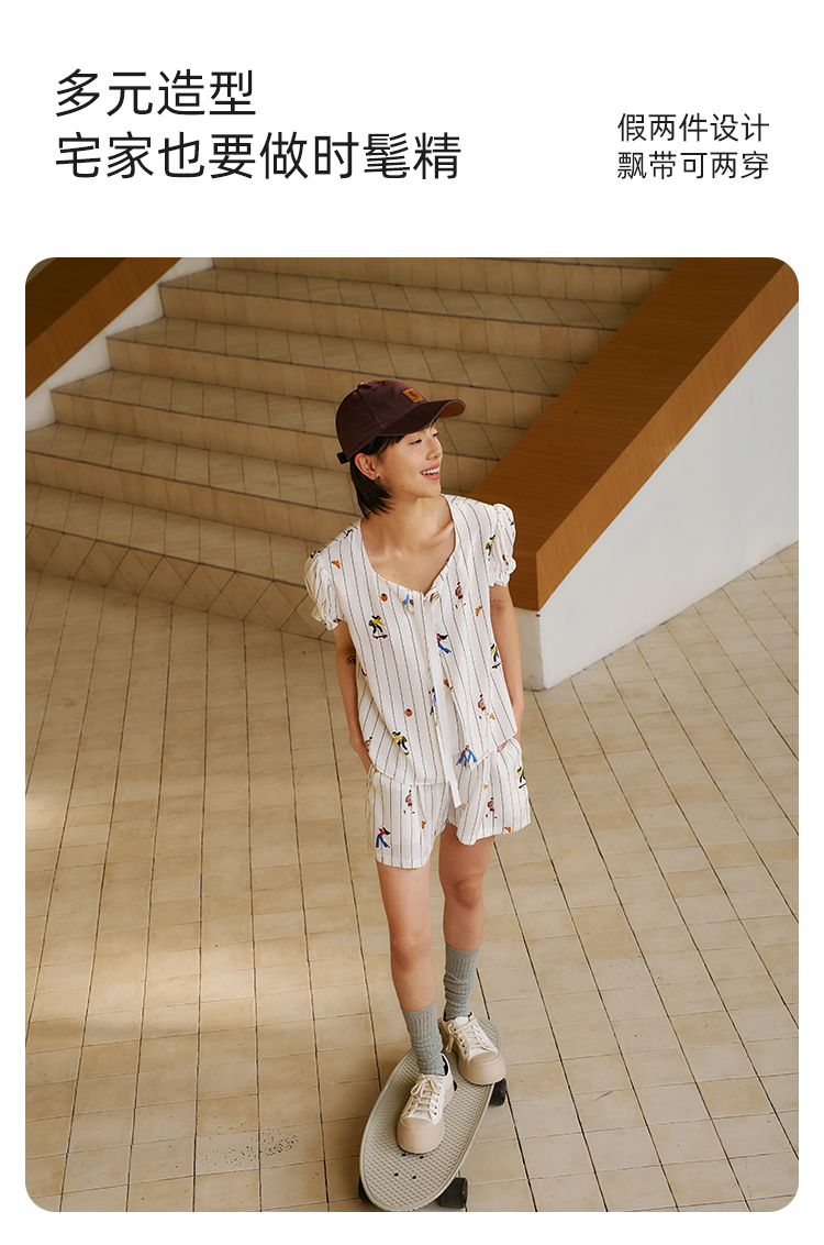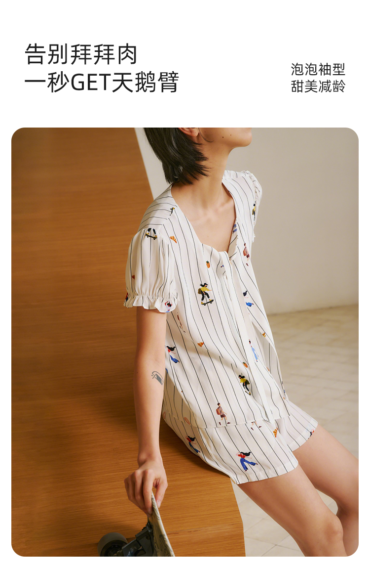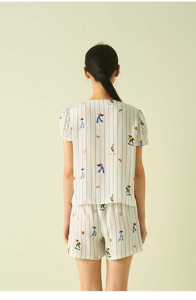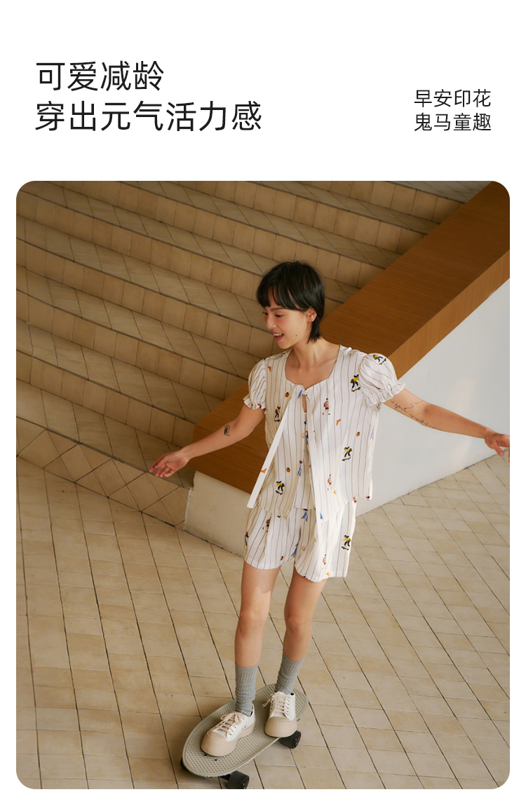 早安系列』桑罗俏皮印花泡泡短袖套装童趣可外穿25年春夏03A21812