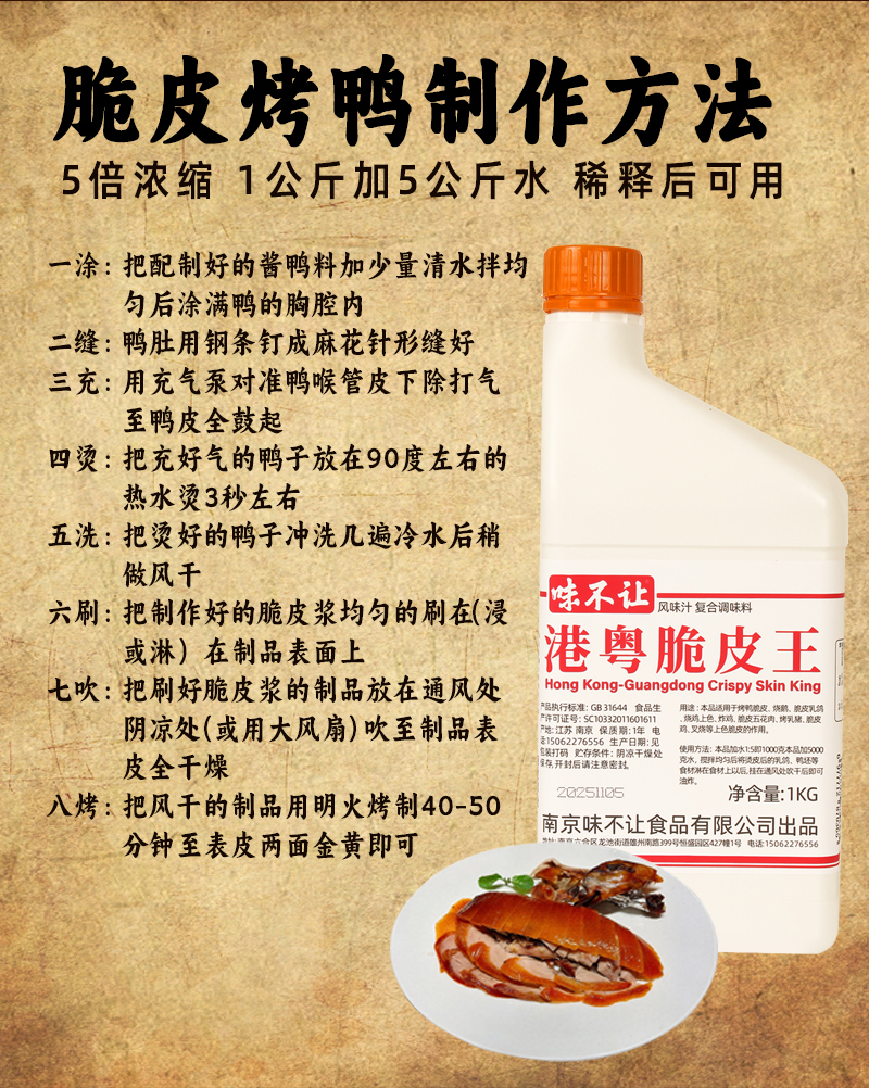 味觉神探港粤脆皮水爆汁腌料烤鸡烤鸭鹅肥肠腌制料爆汁配方商用