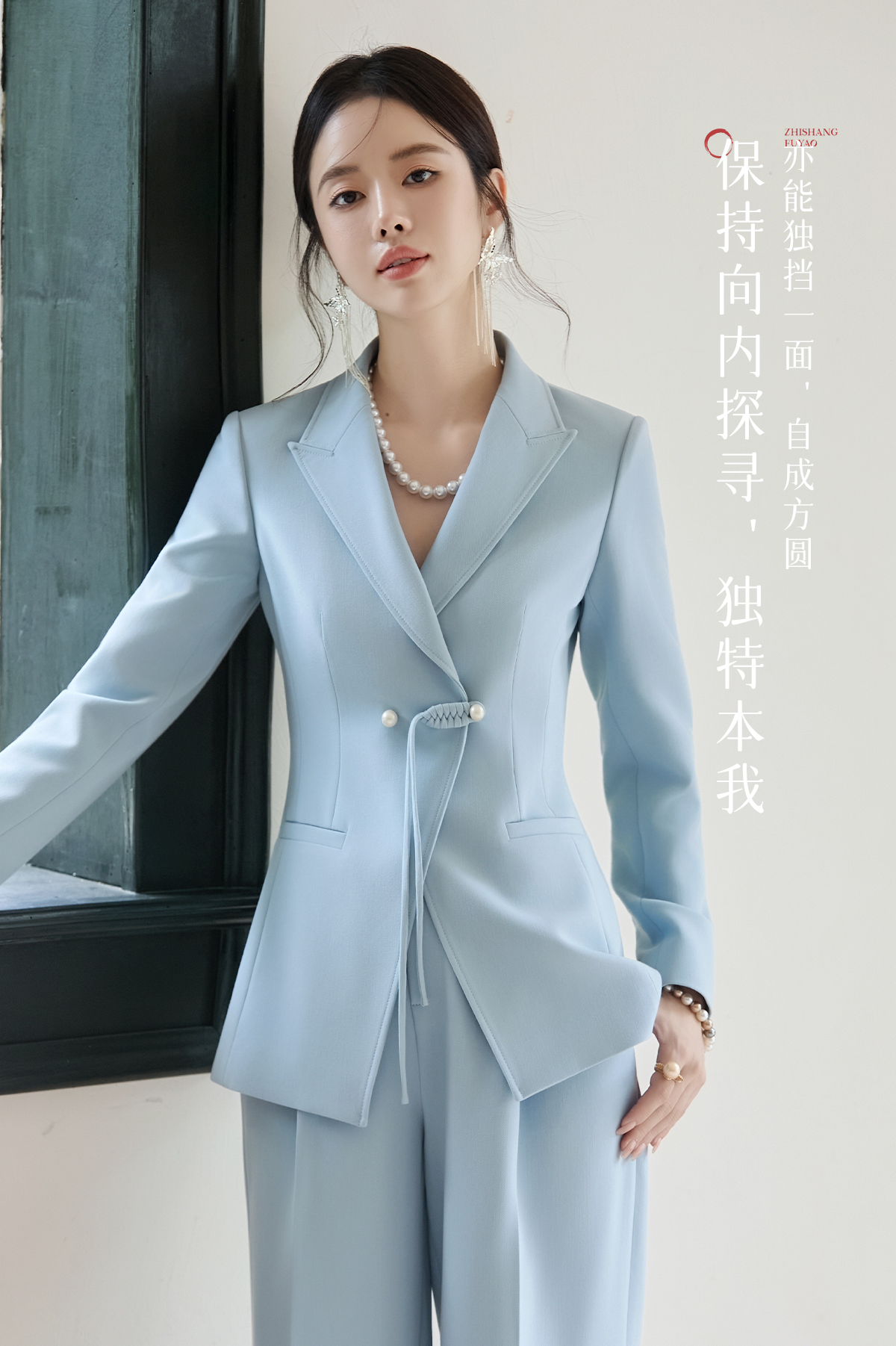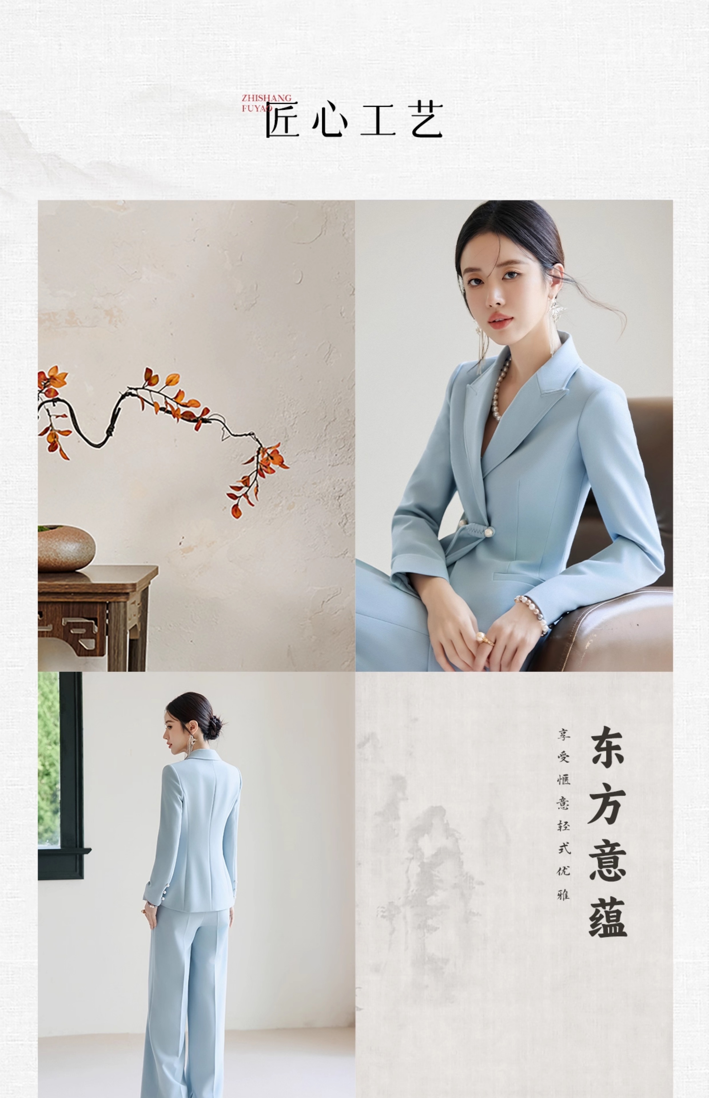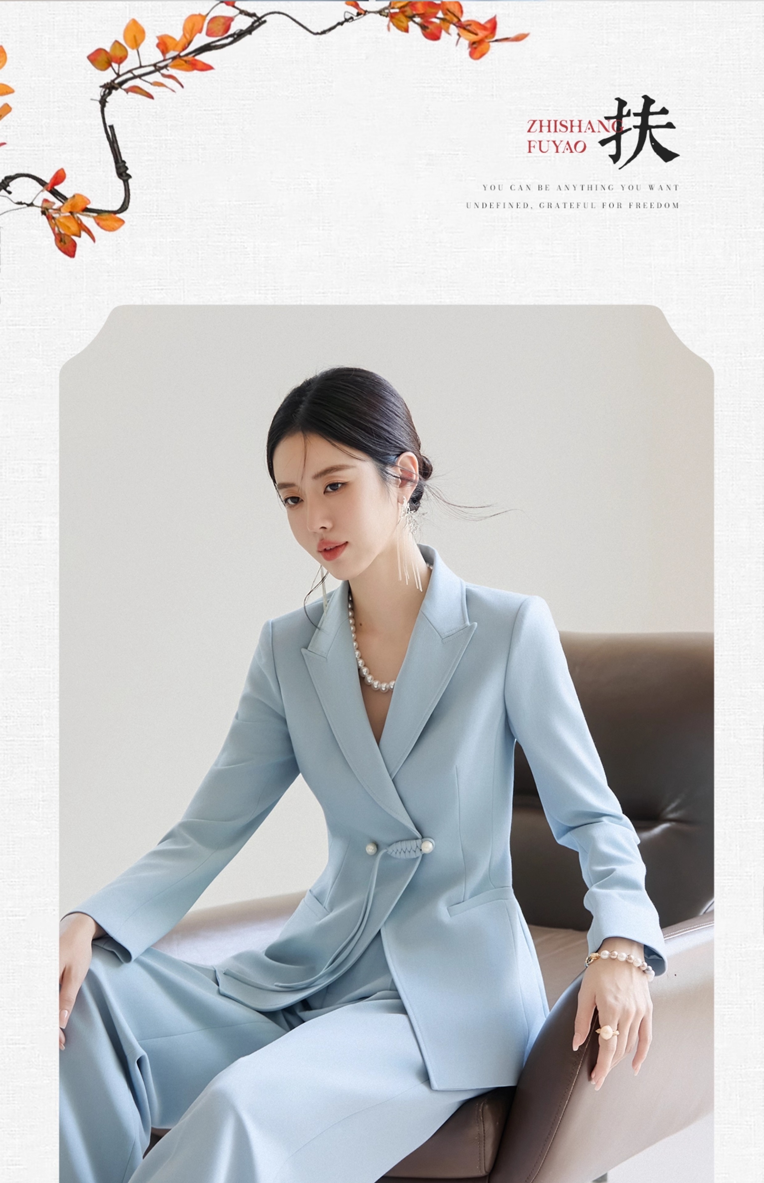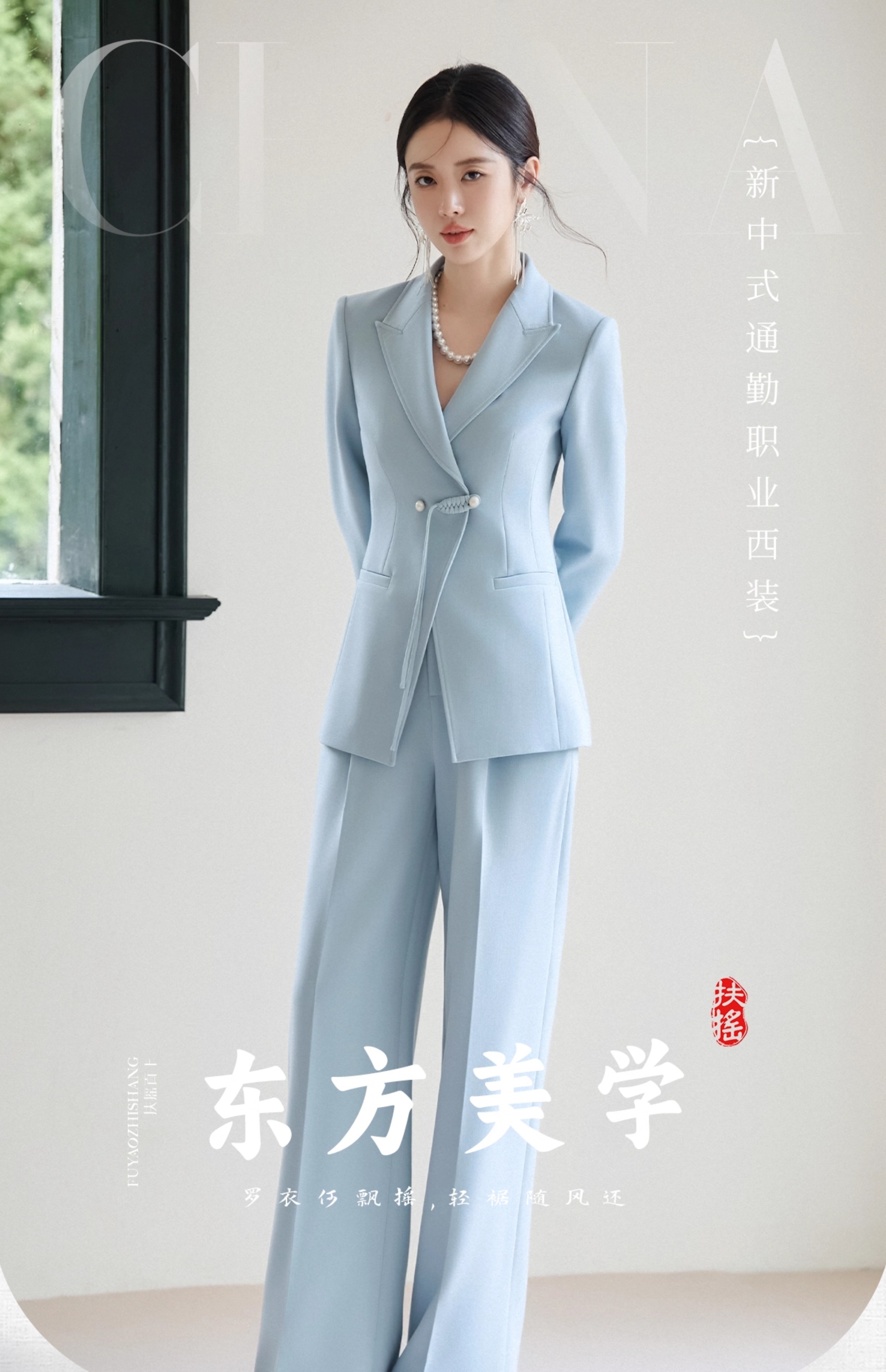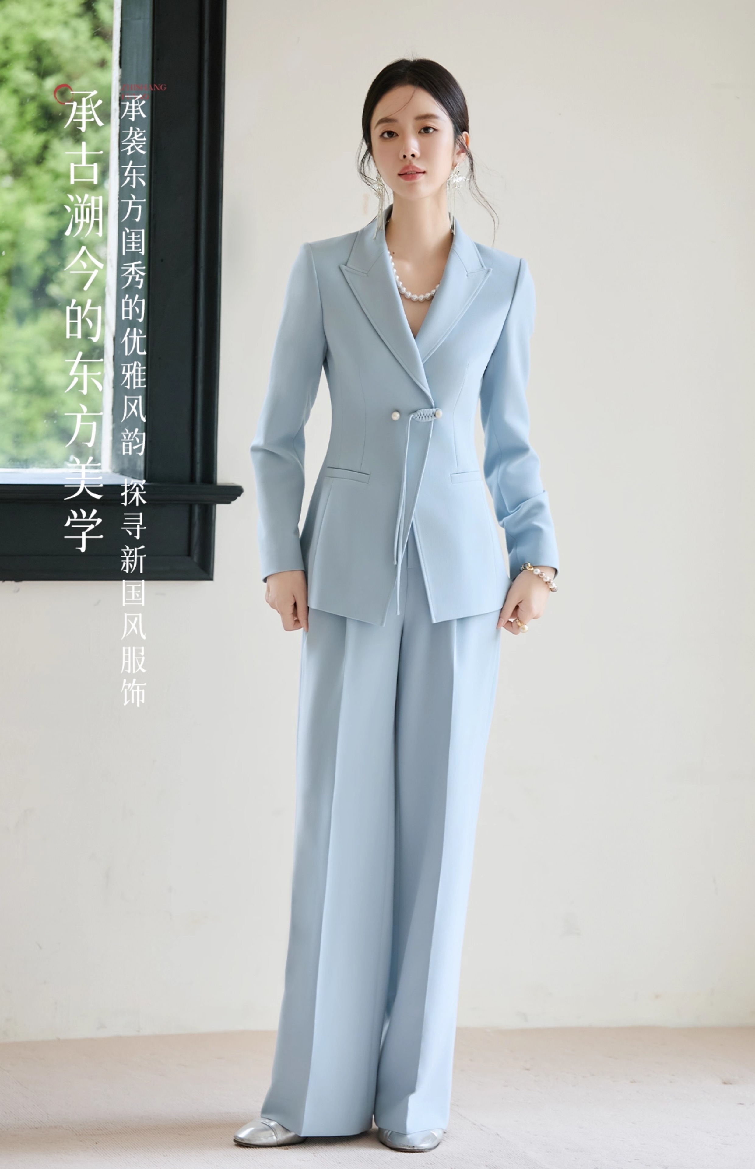 FUYAO扶摇 中式复古西服套装女秋冬国风盘扣西装外套直筒裤两件套