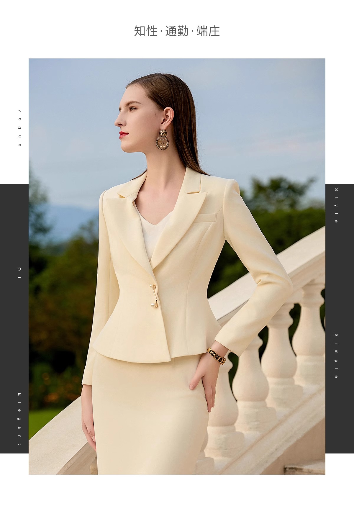 浅色职业装正装女西装套装裙正式场合前台工作服气质女神范西服