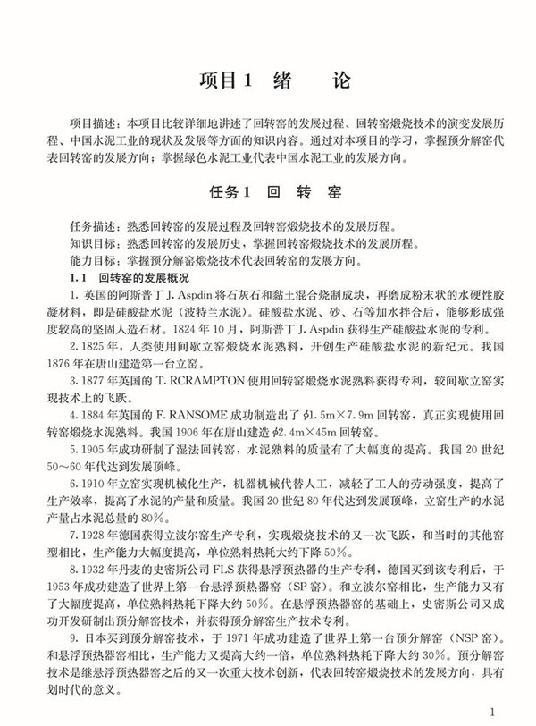 《水泥煅烧工艺及设备》全书由绪论、回转窑煅烧工艺、回转窑的结构、熟料的煅烧、熟料冷却机、煤粉燃烧器、悬浮预热器窑、预分解窑及回转窑用耐火材料等9个项目及33个相应工作任务组成,构建了以职业能力为核心、以工作项目任务为框架的课程内容体系。