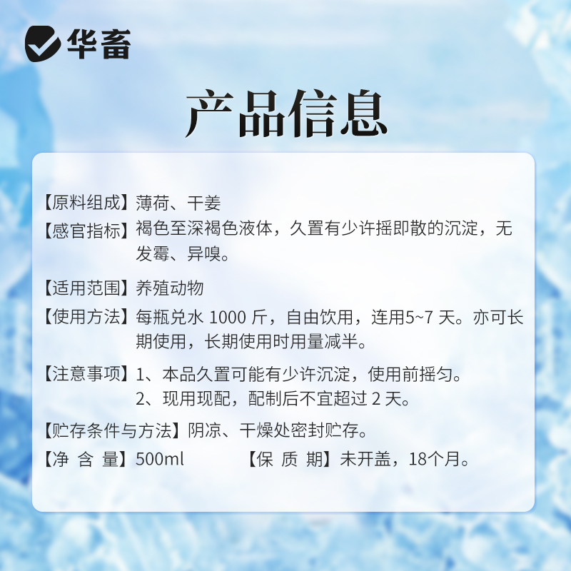 华畜 百草消暑液500ml 清凉解暑抗应激减少腹泻中暑不吃食