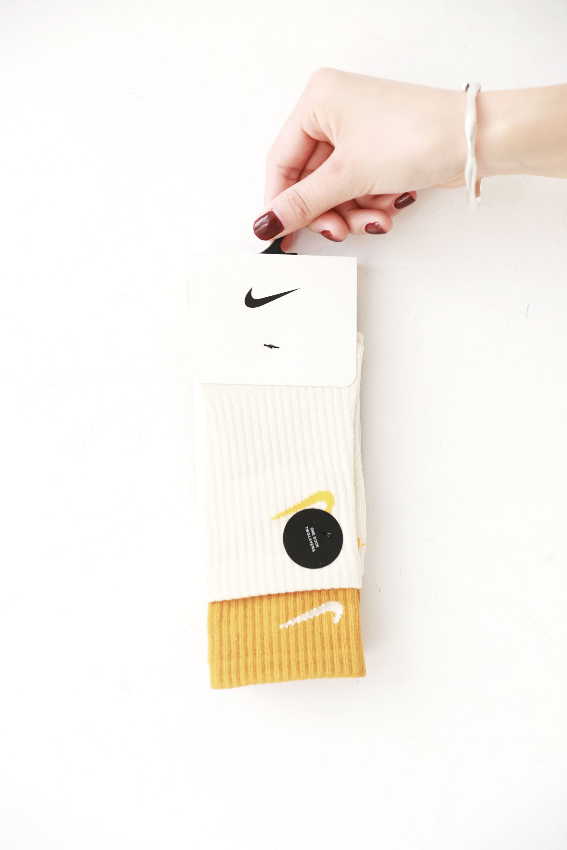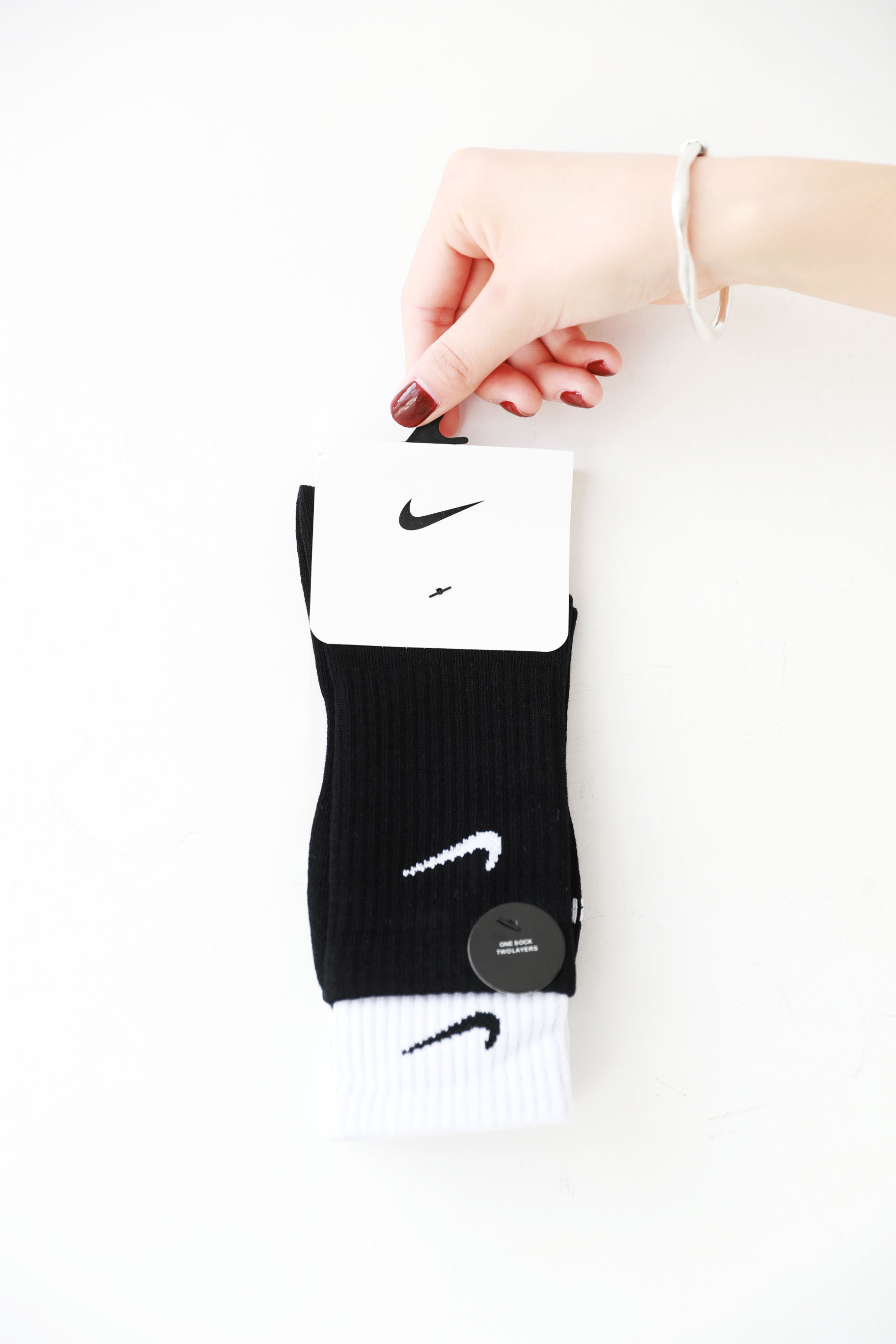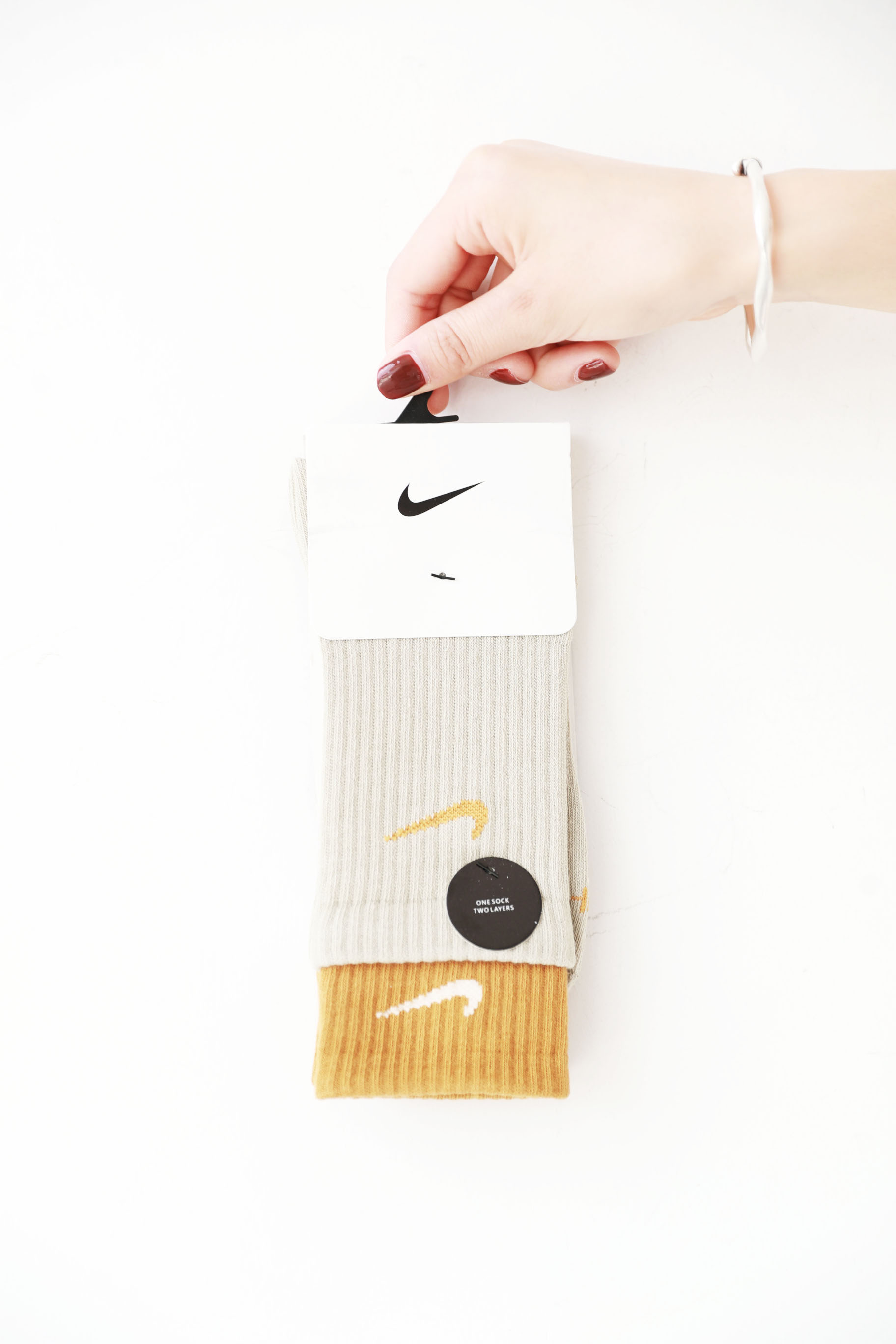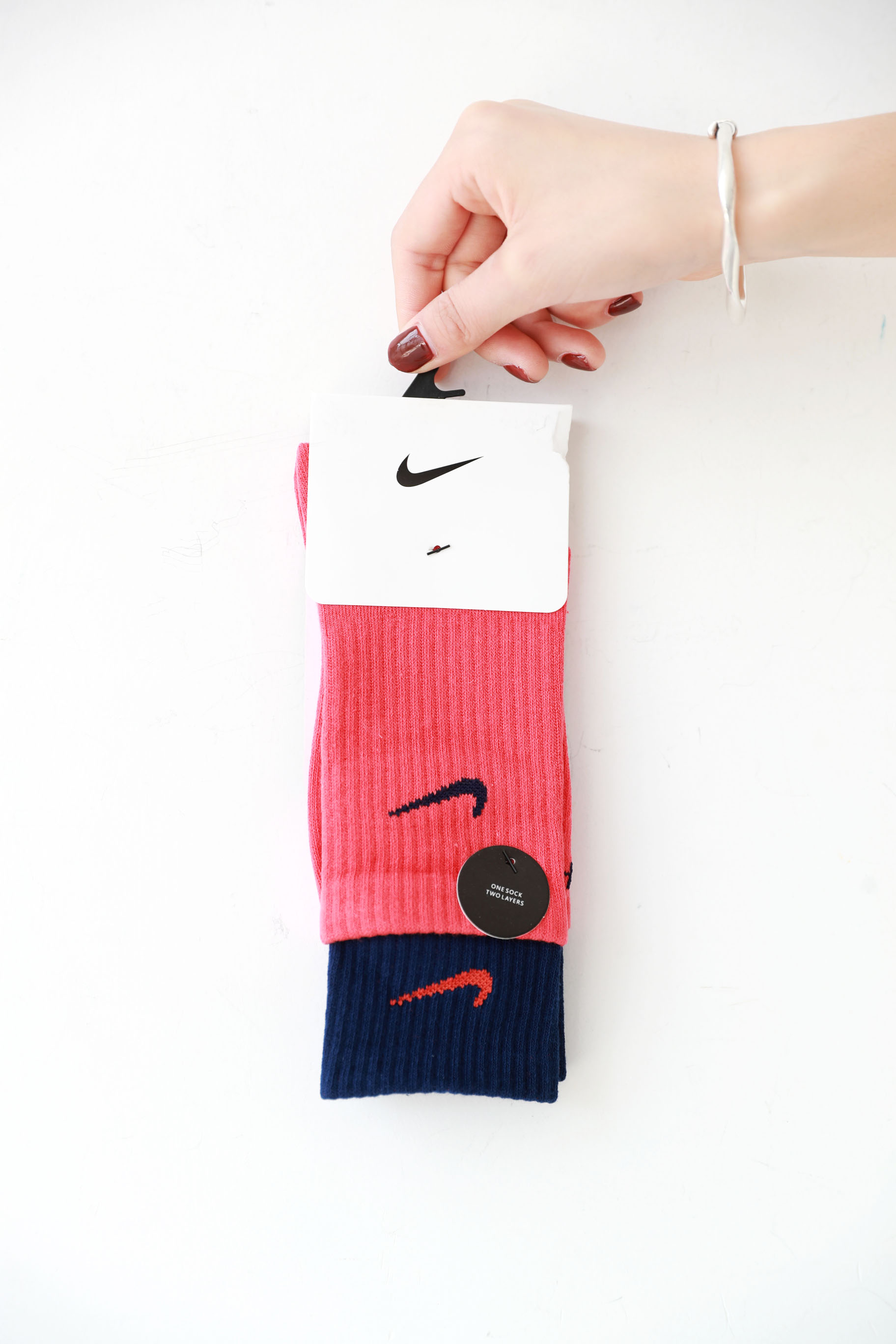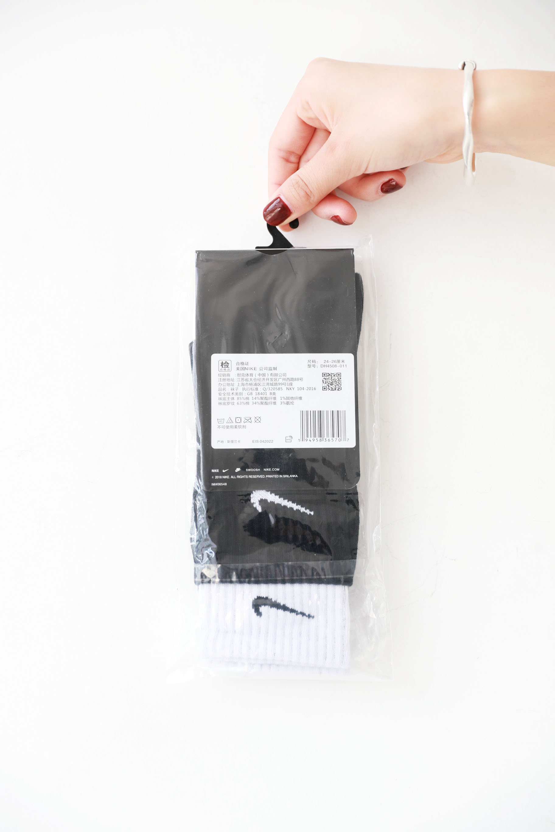 双色拼接+软支撑加固,户外字母提花运动袜原包装中筒袜子C111068