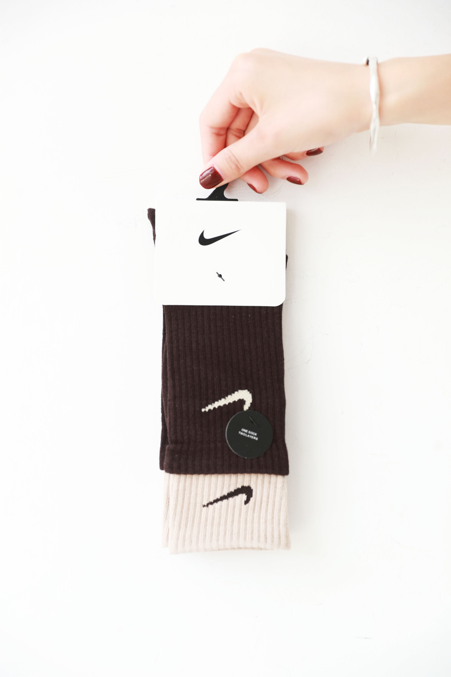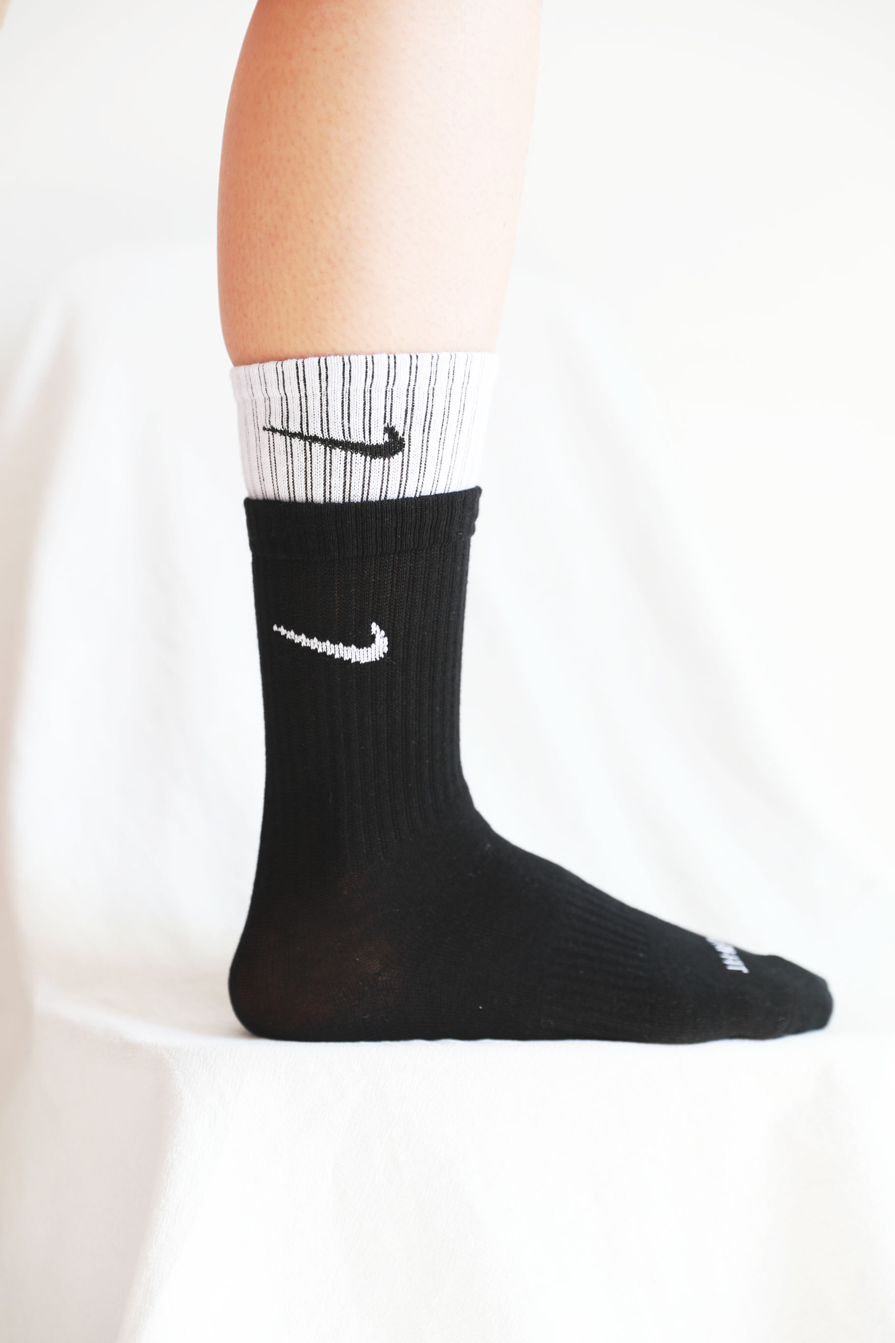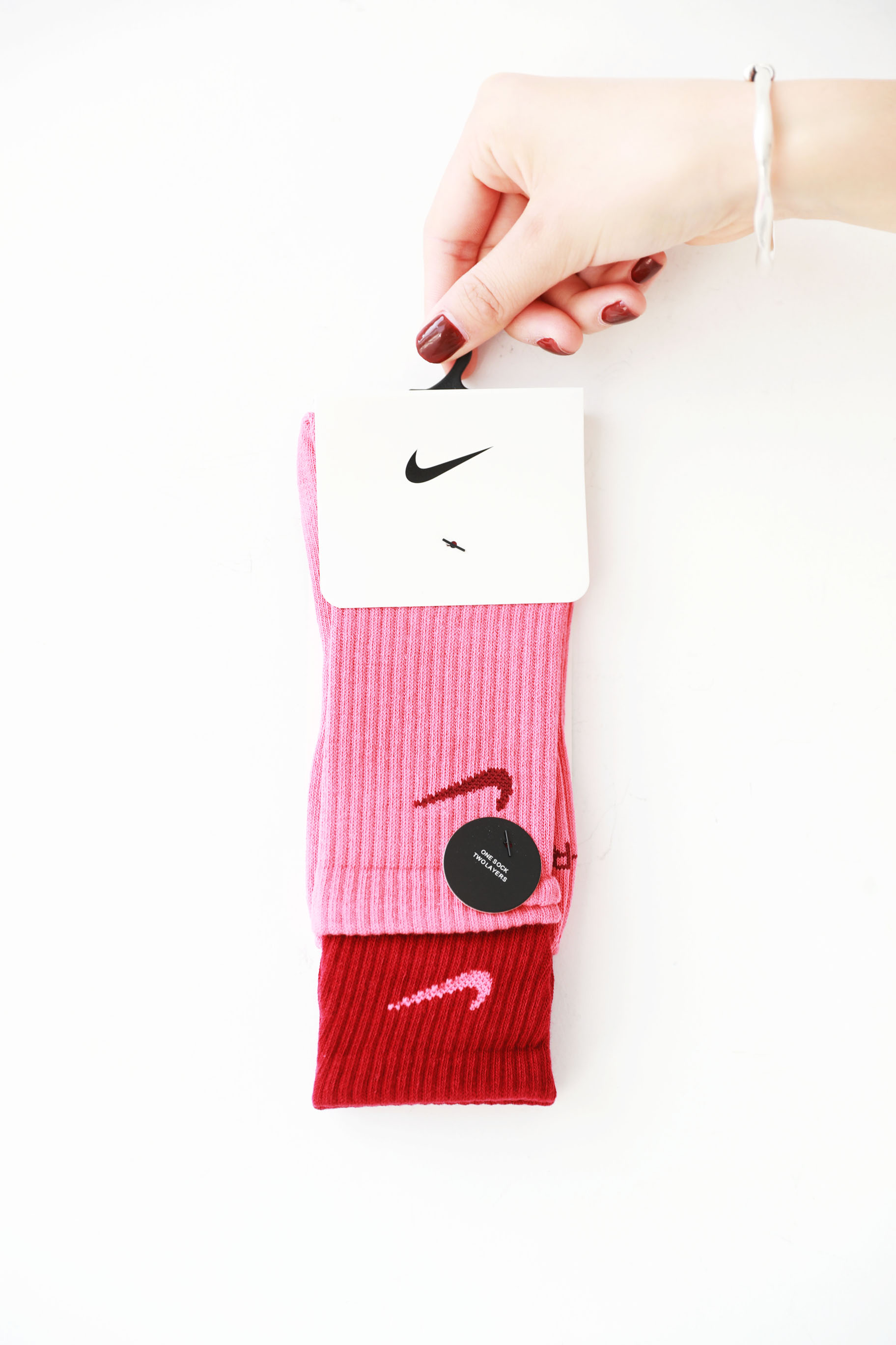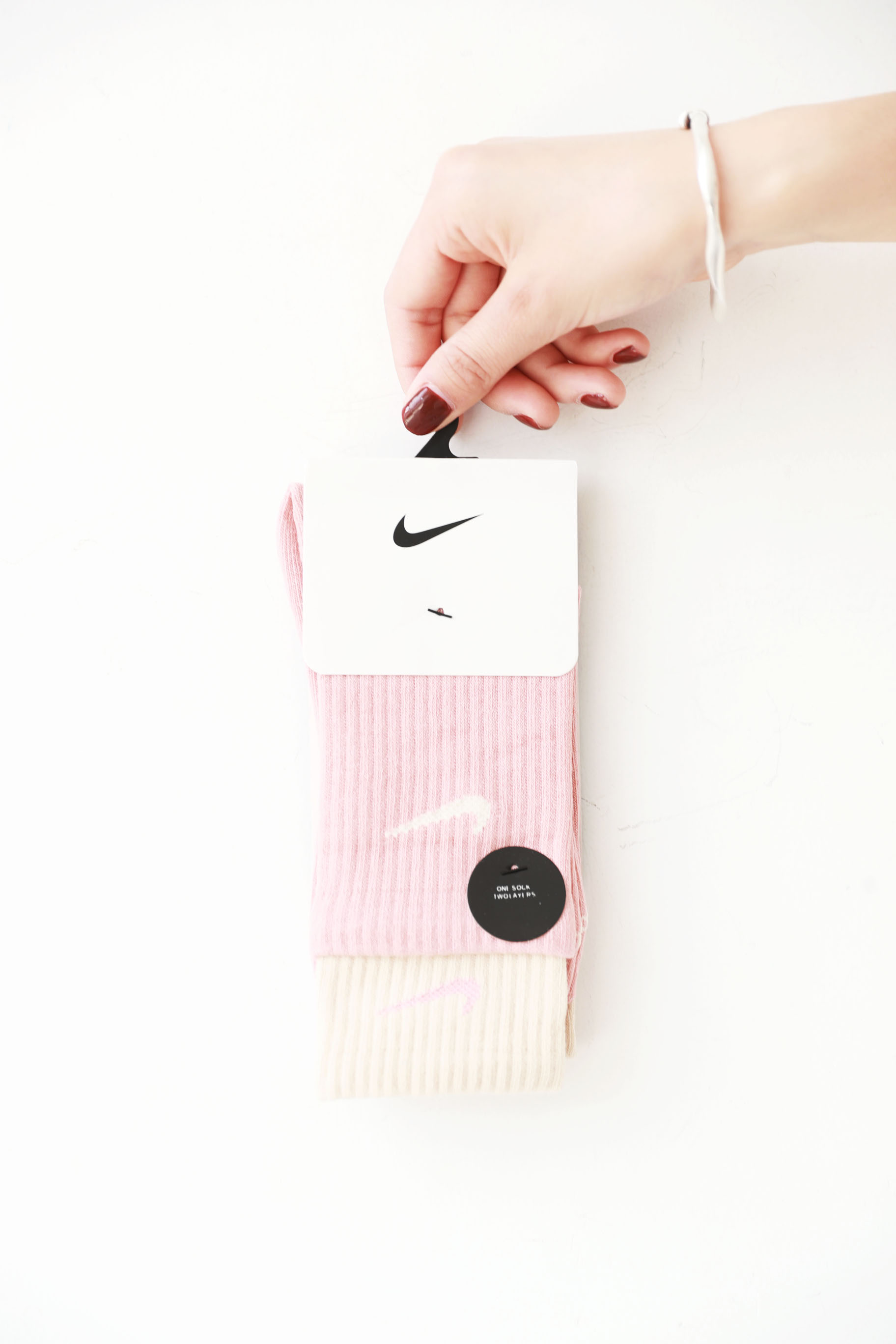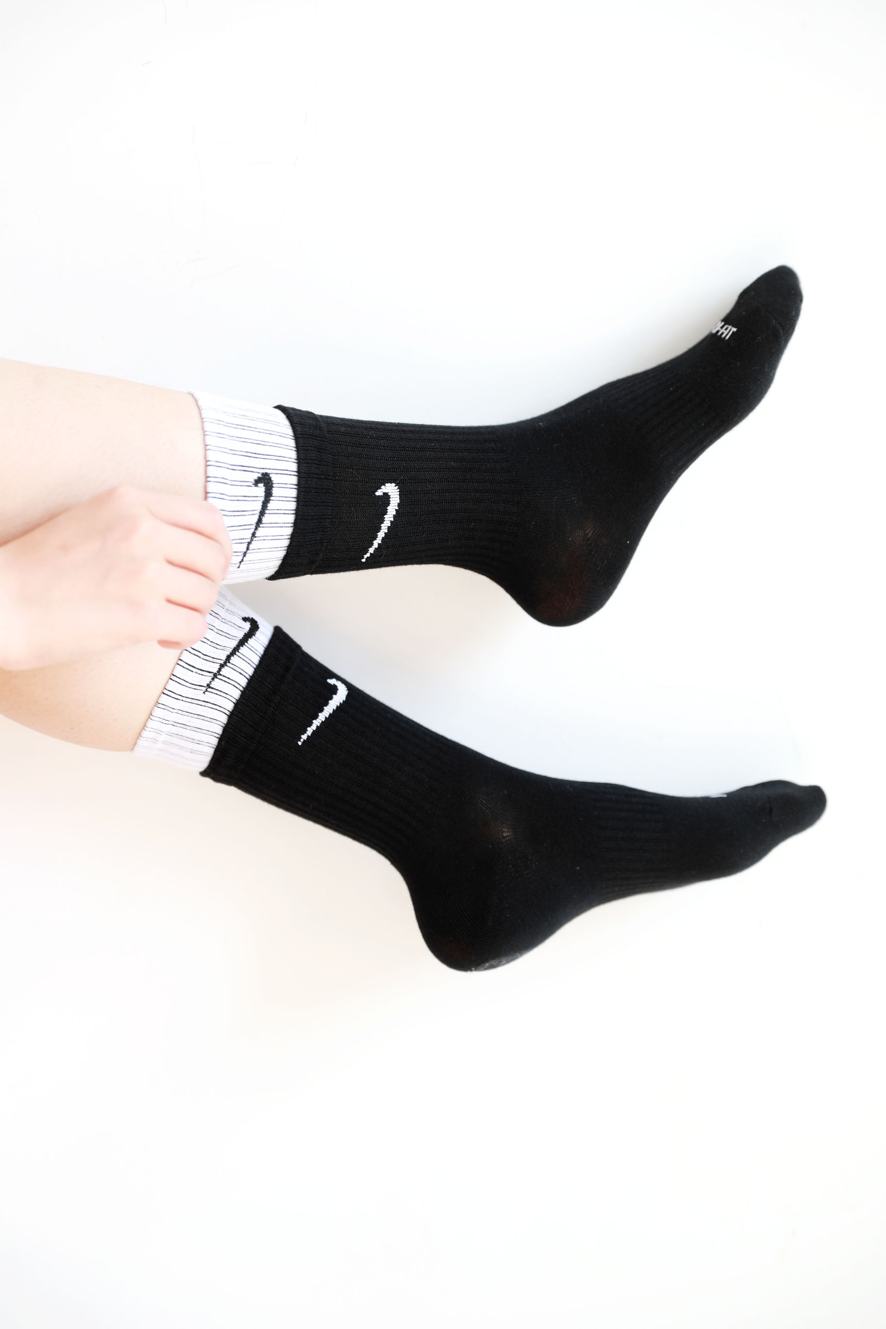 双色拼接+软支撑加固,户外字母提花运动袜原包装中筒袜子C111068