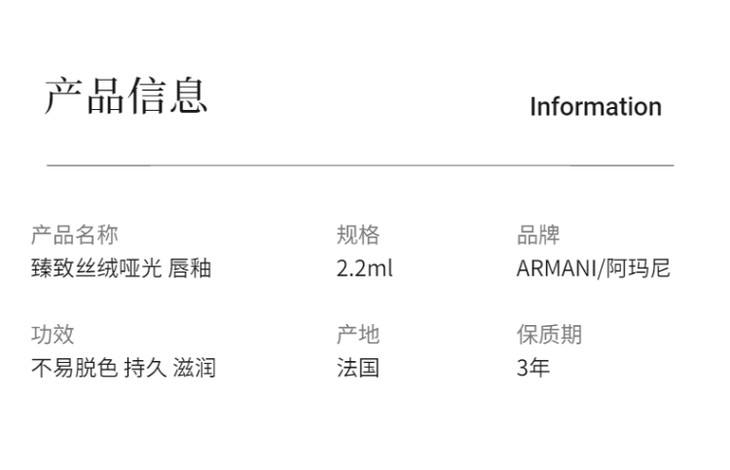 【春日限定 限时特惠】阿玛尼臻致丝绒哑光唇釉中小样2.2ml【下单2支送手霜/小镜子】