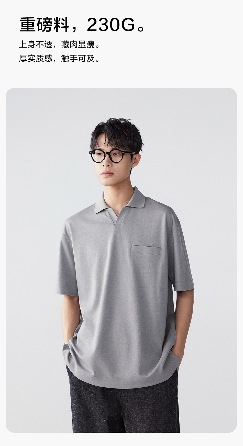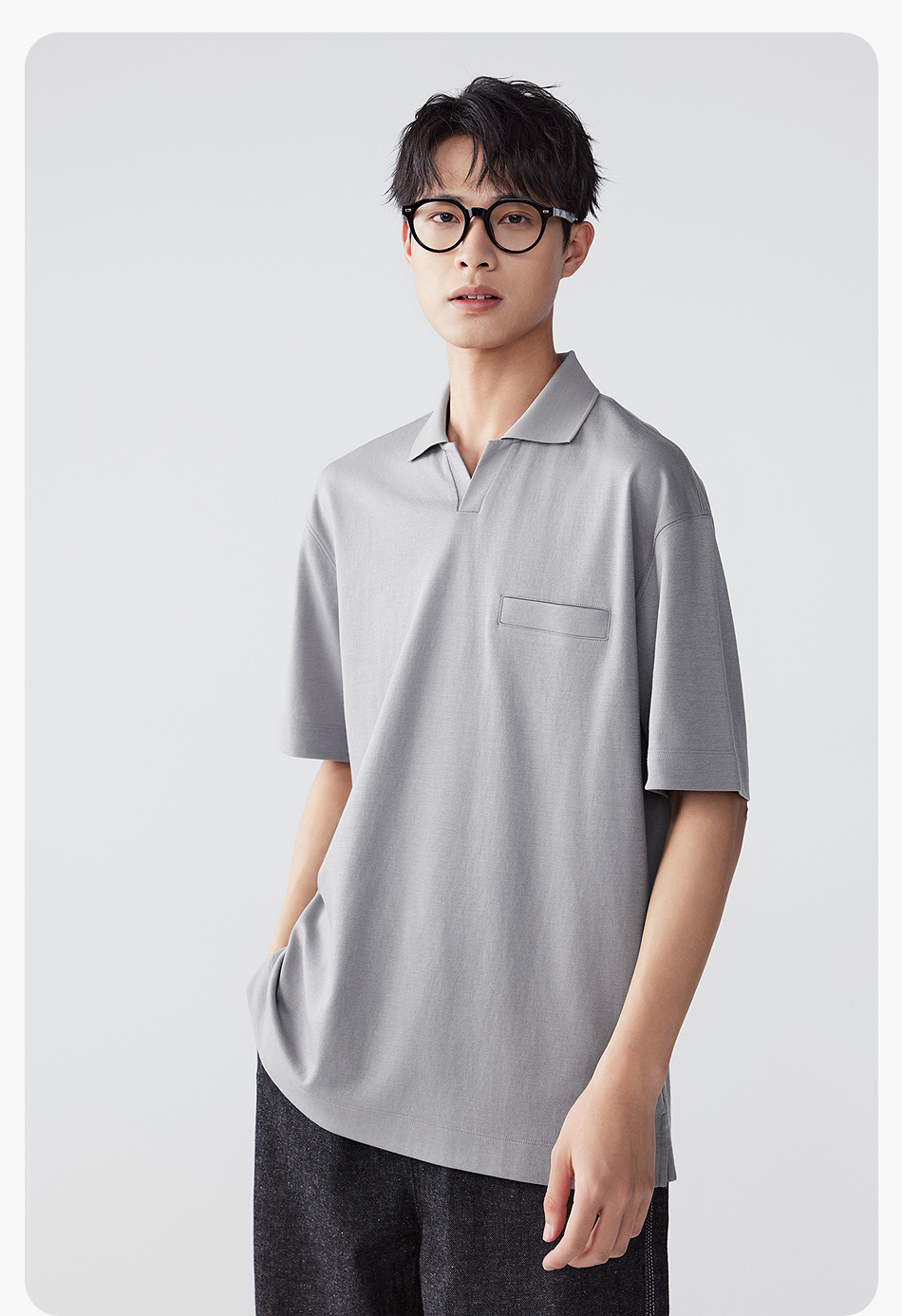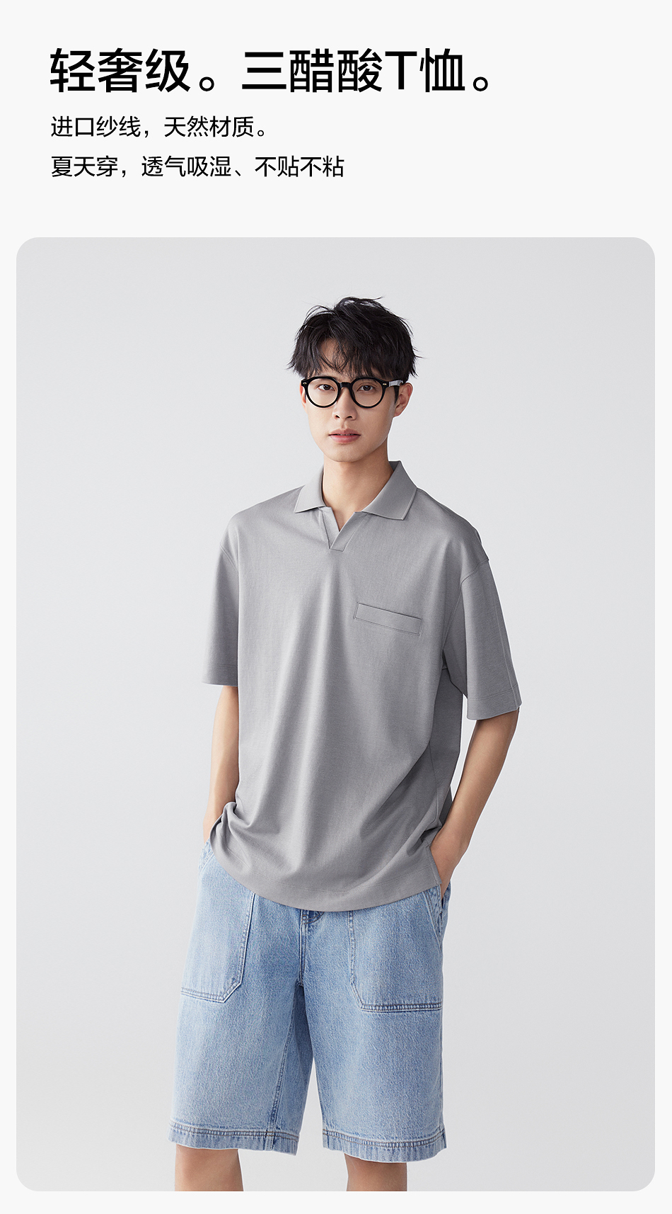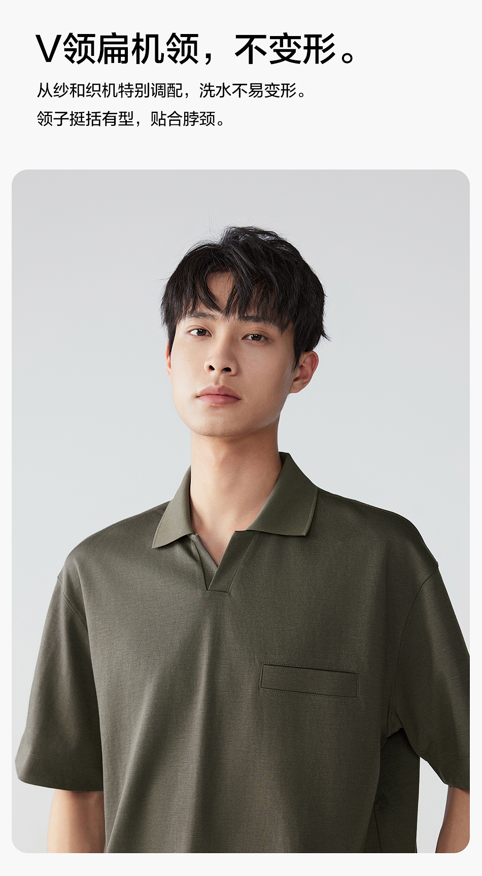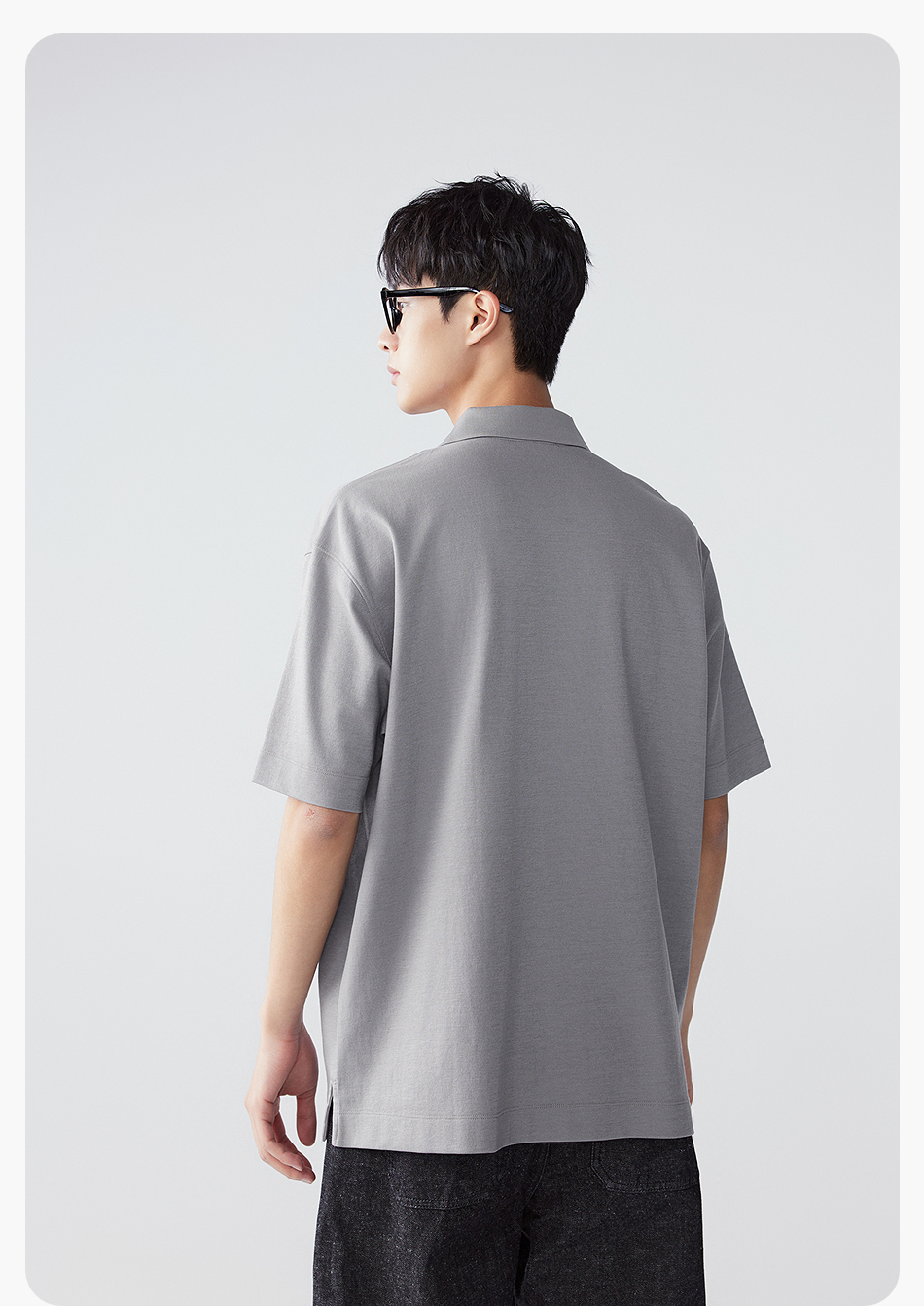 棉仓353802012-三醋酸宽松廓型落肩V领半开襟POLO