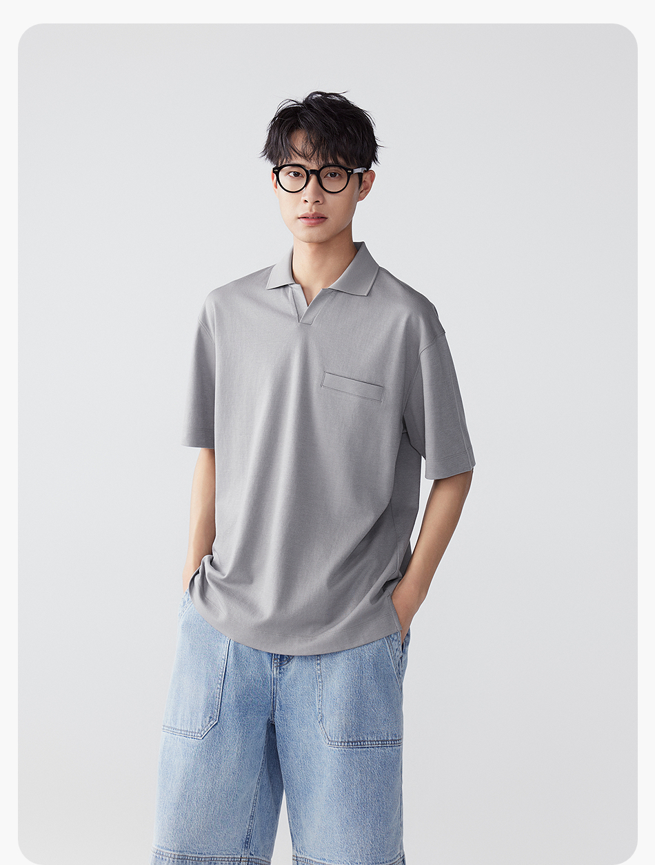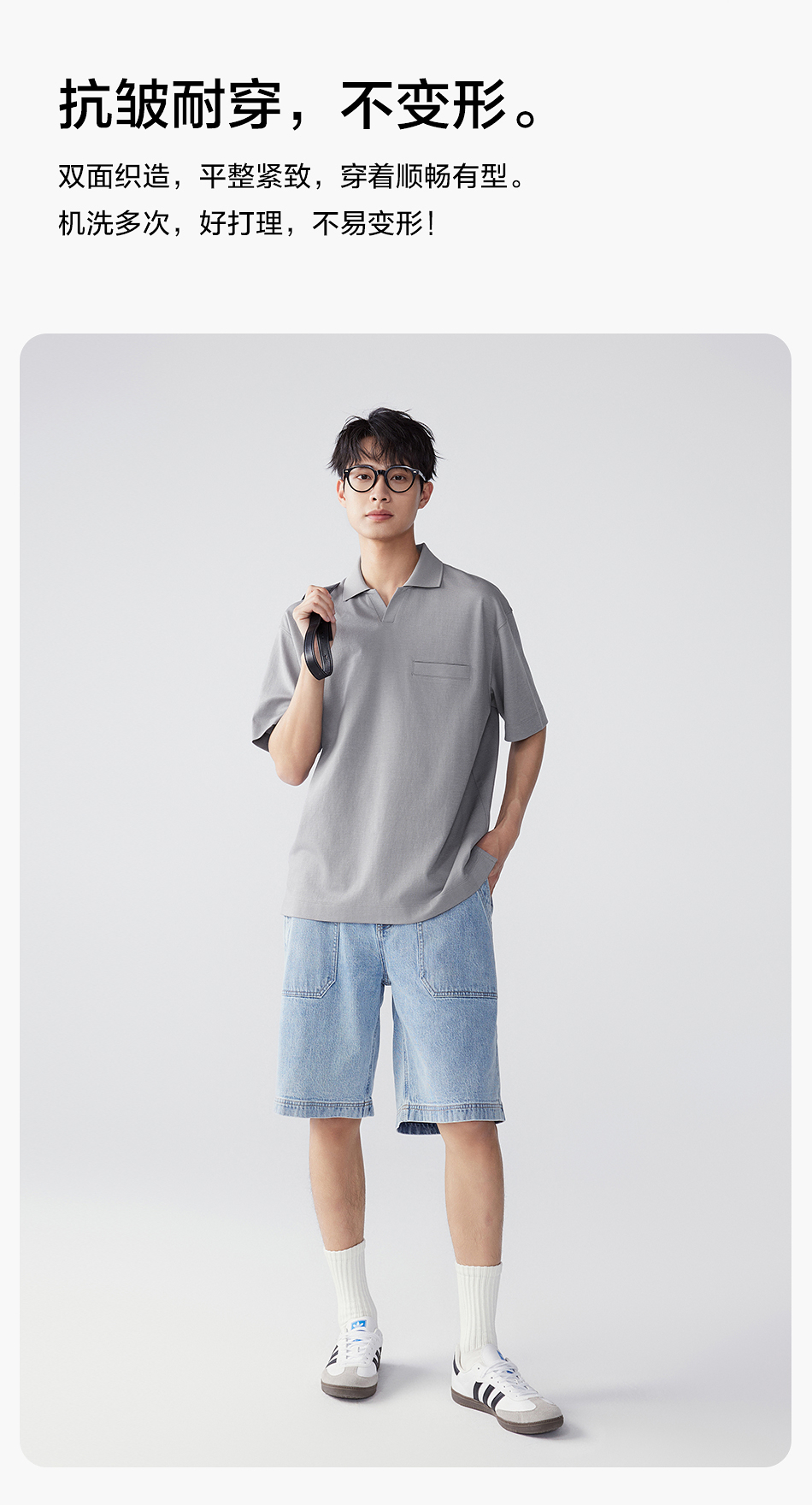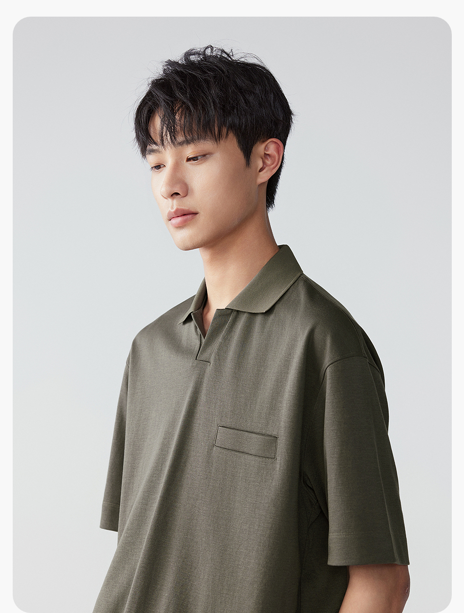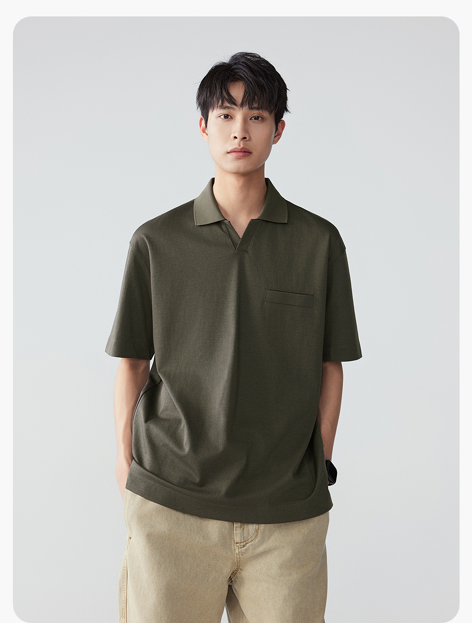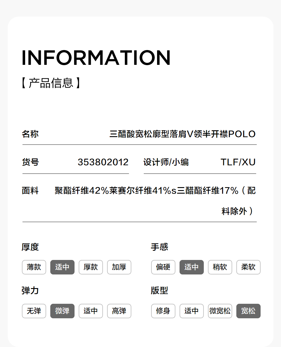 棉仓353802012-三醋酸宽松廓型落肩V领半开襟POLO