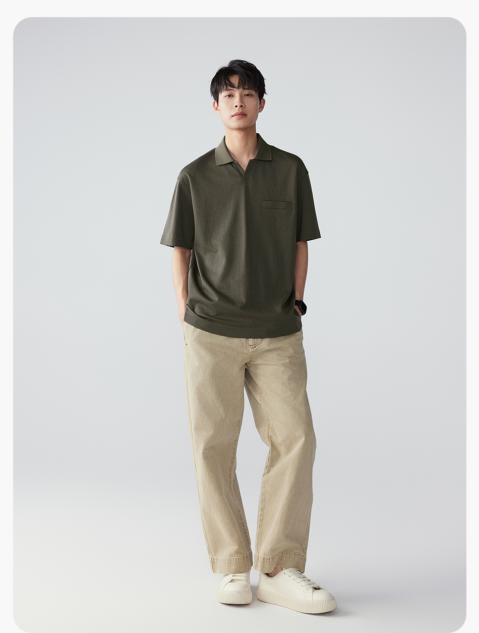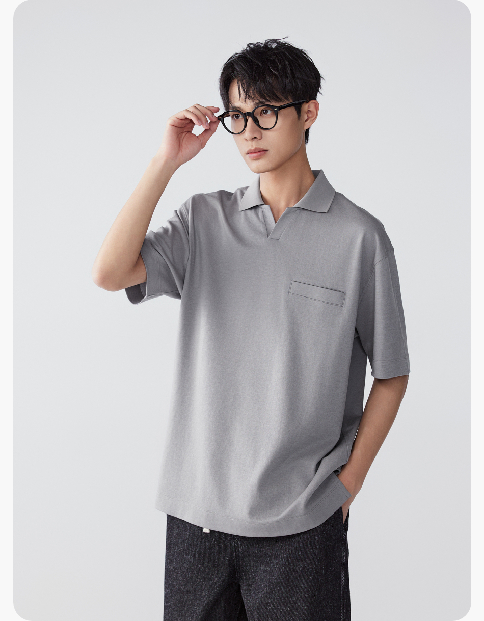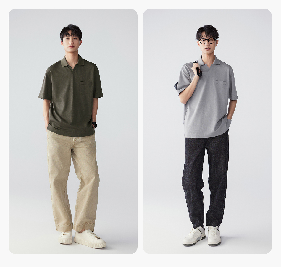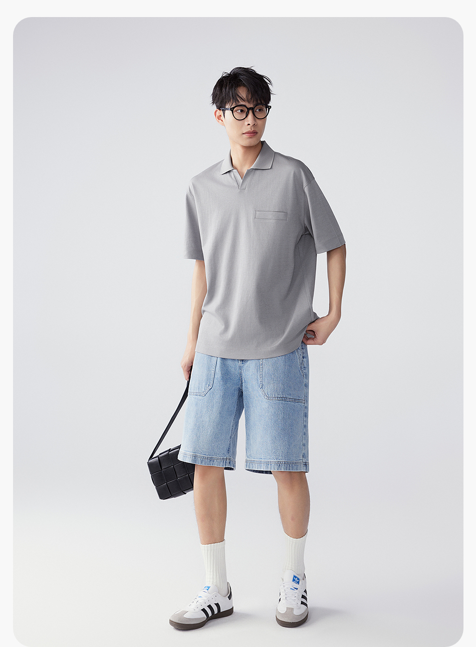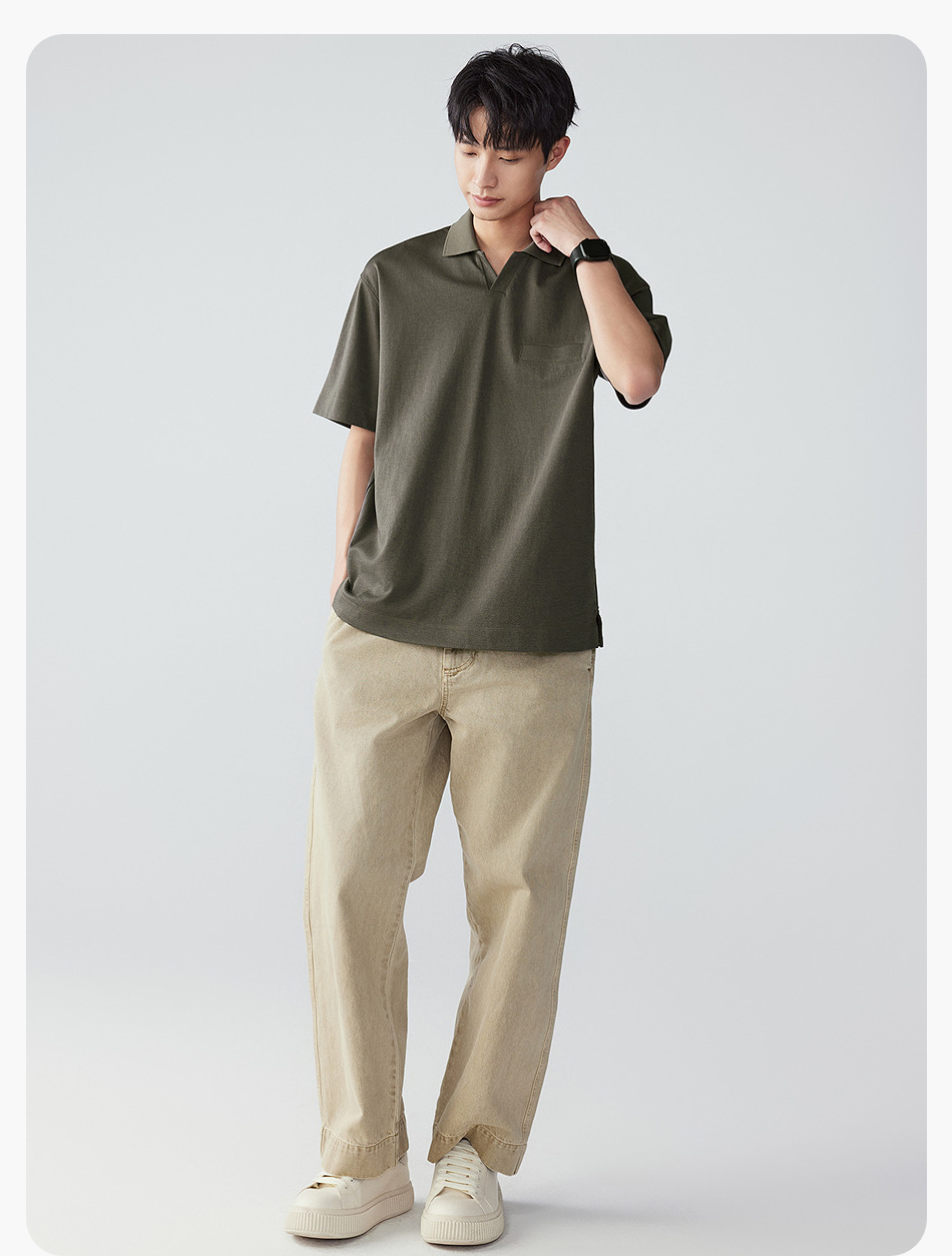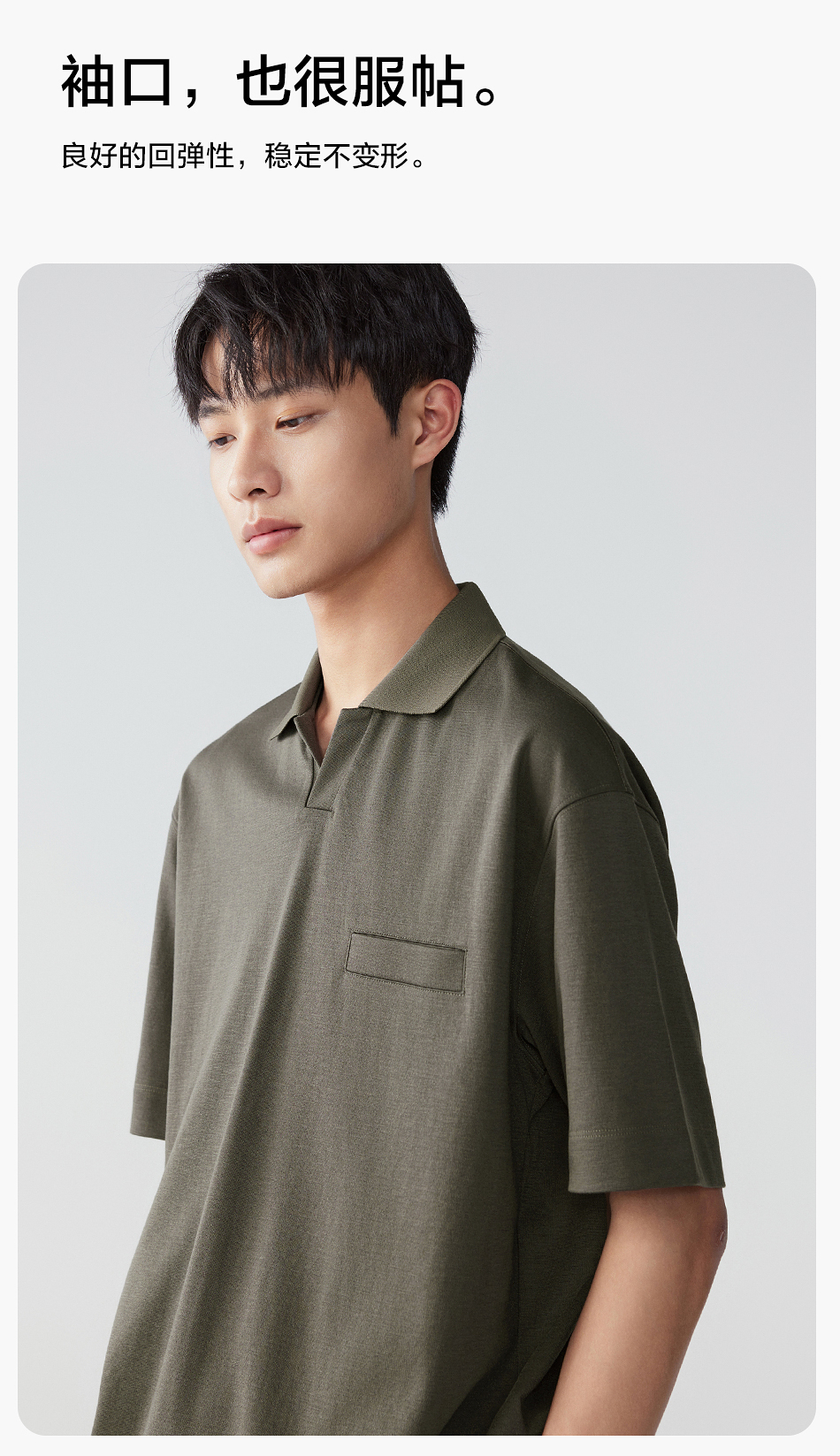 棉仓353802012-三醋酸宽松廓型落肩V领半开襟POLO