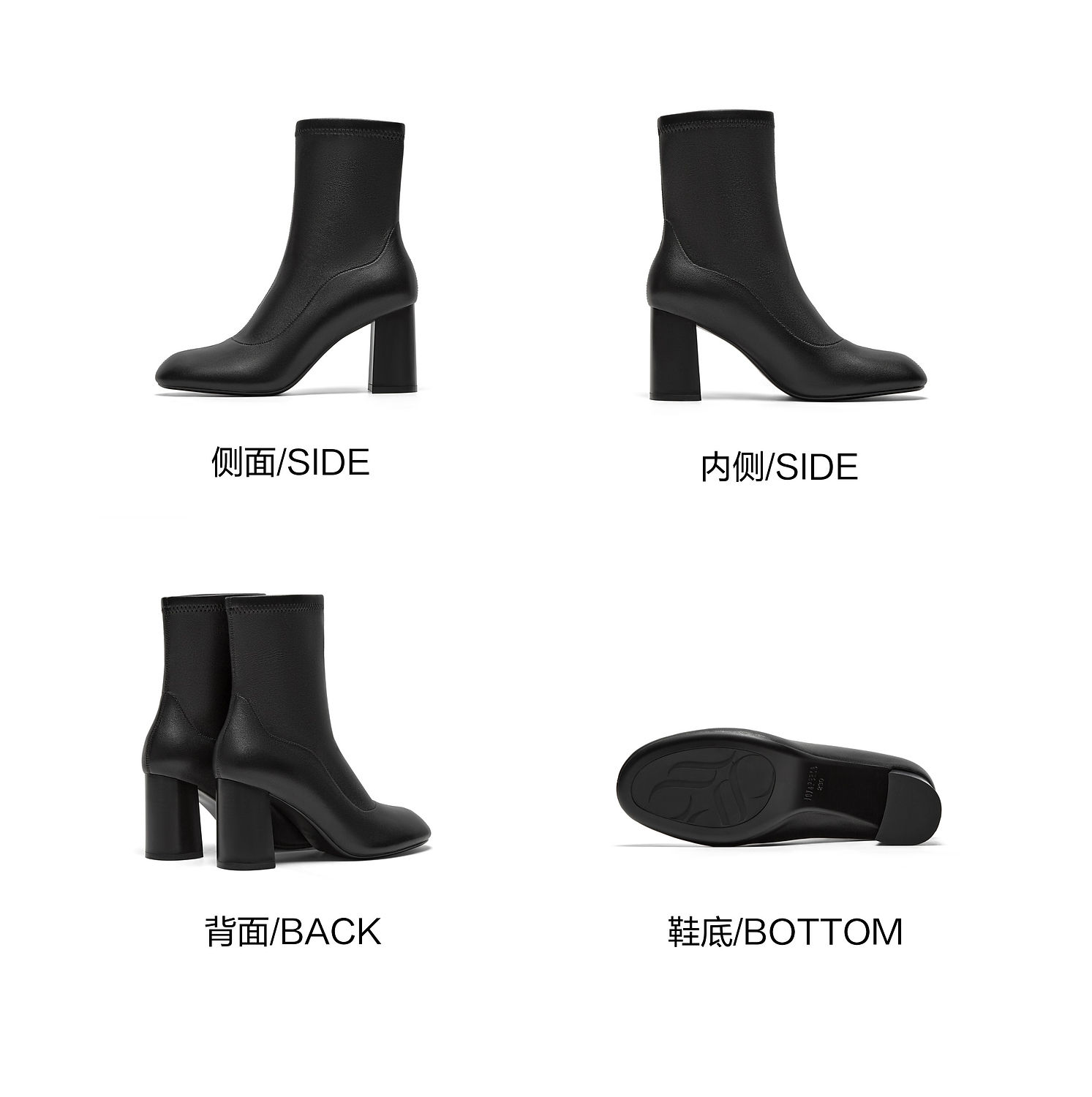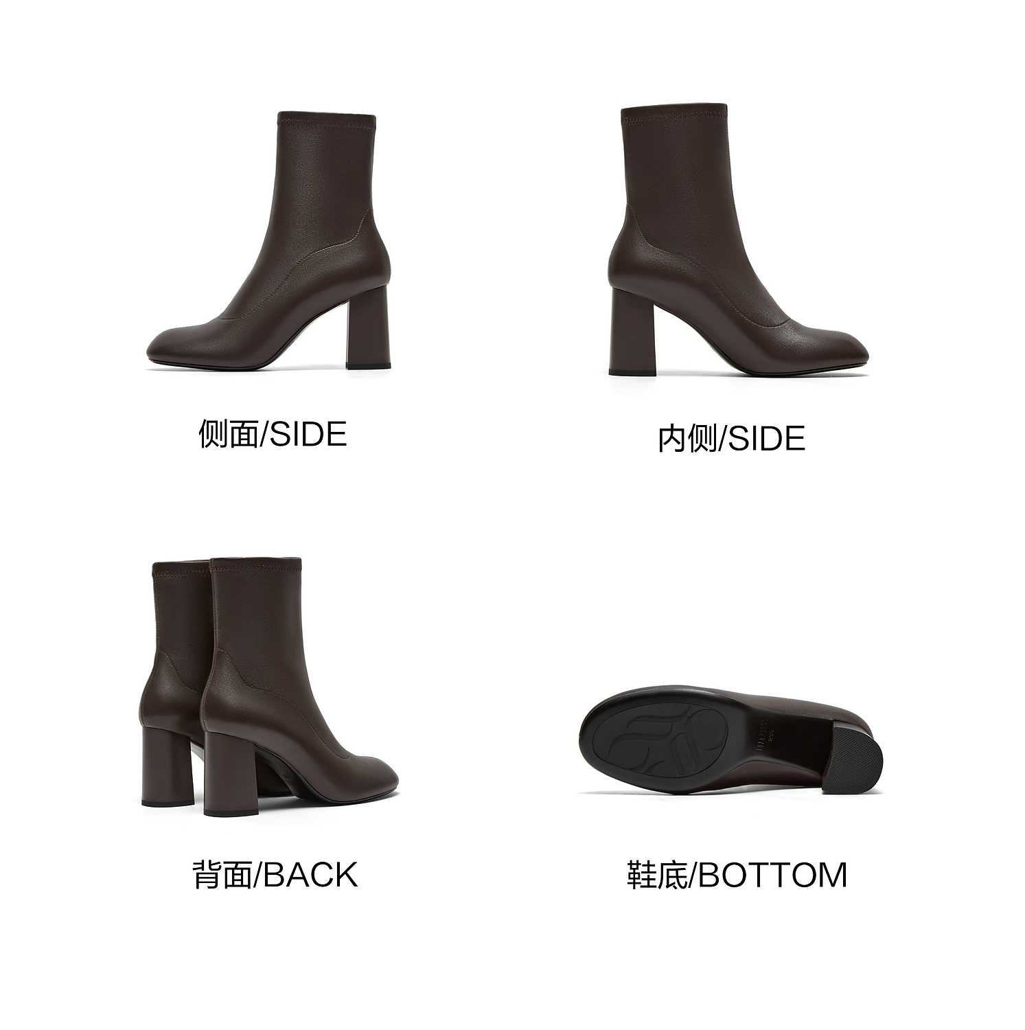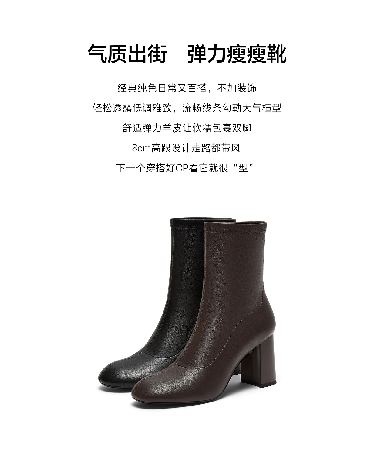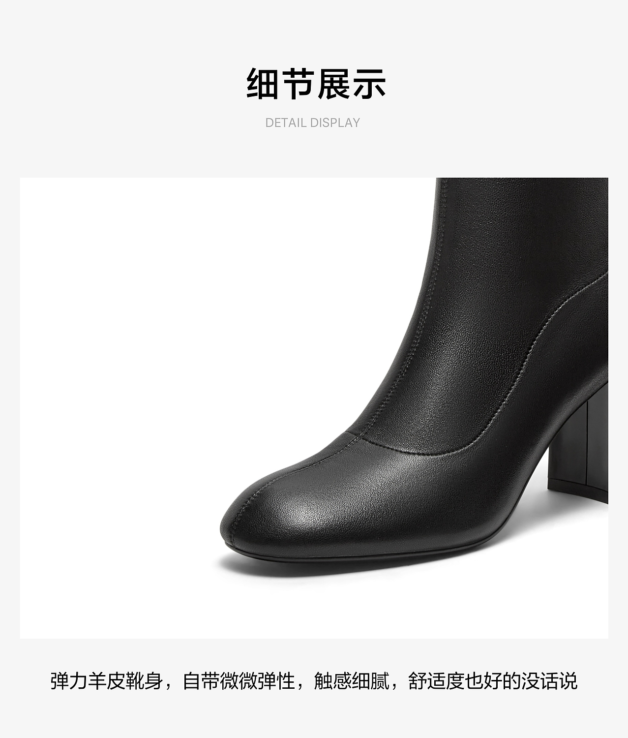FB楼真美诗摩登女郎2025新冬款羊皮优雅8CM高跟时装弹力靴瘦瘦靴吊牌价2098折后价1698
