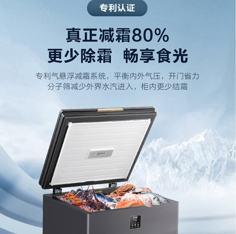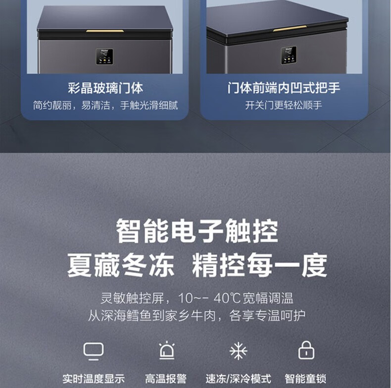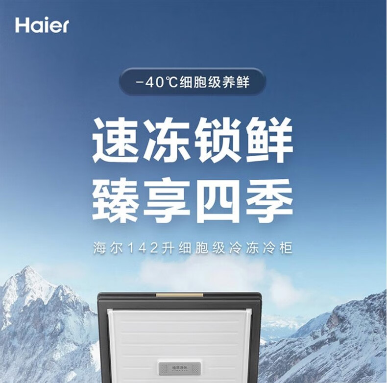海尔(Haier)冰柜家用 -40度顶配版超低温小冰柜冷藏保鲜冷冻柜卧式风循环制冷减霜冷柜 BC/BD-100GHEPG