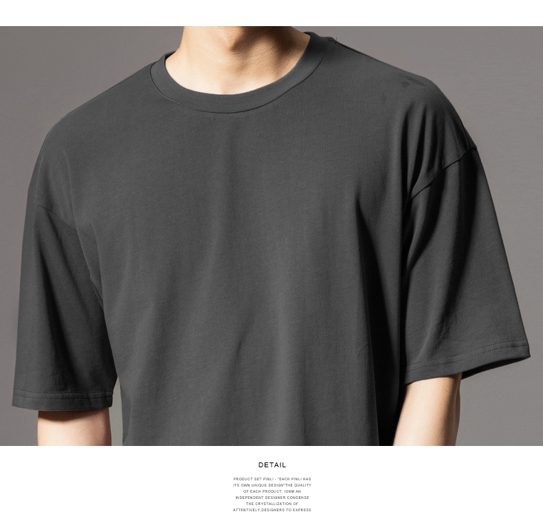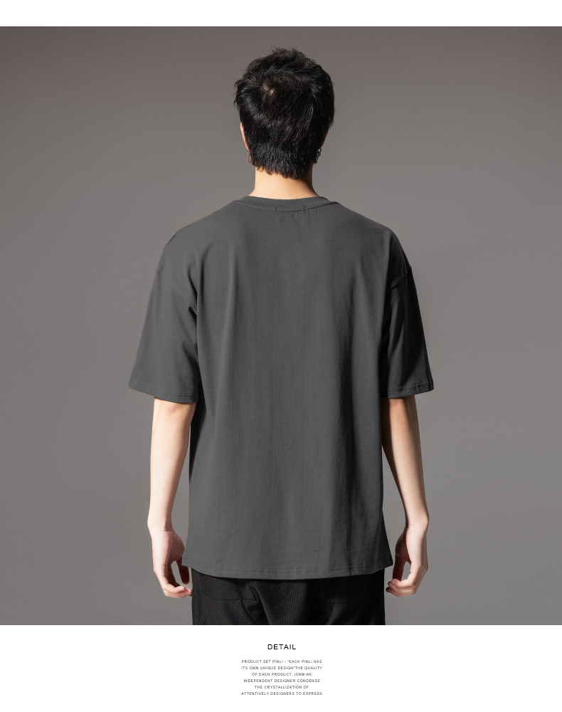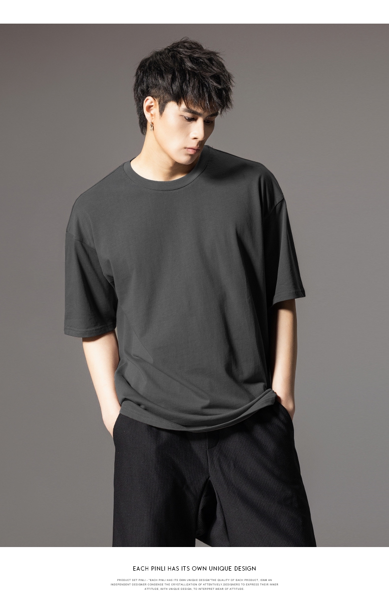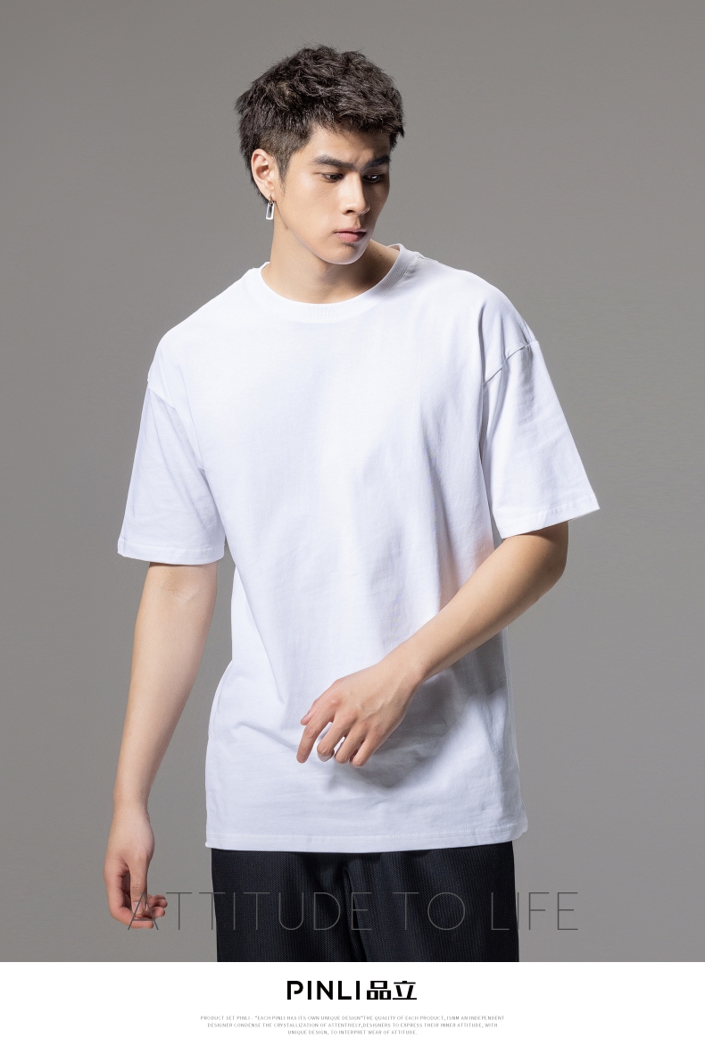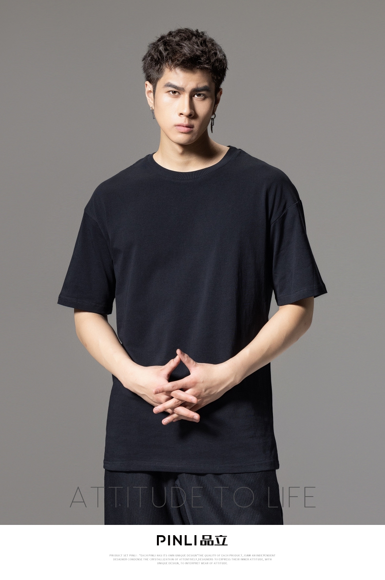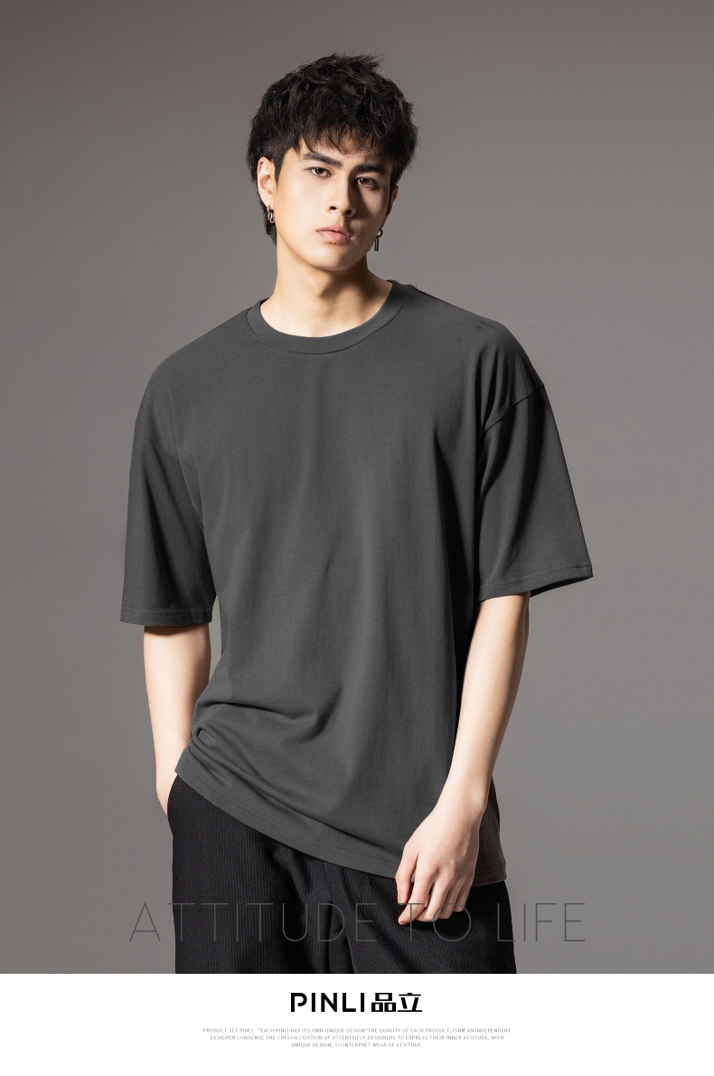 PINLI品立2026夏季新款男士重磅厚版宽松圆领落肩袖短袖T恤上衣潮GD262111031