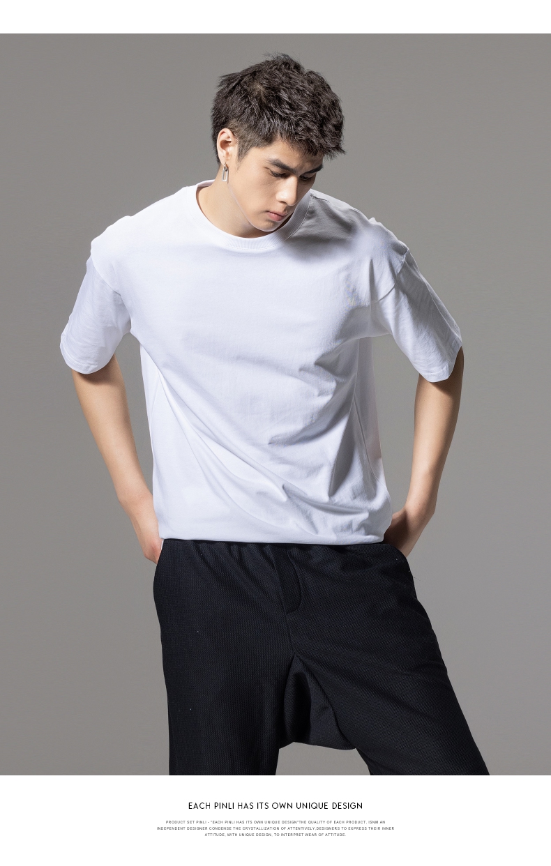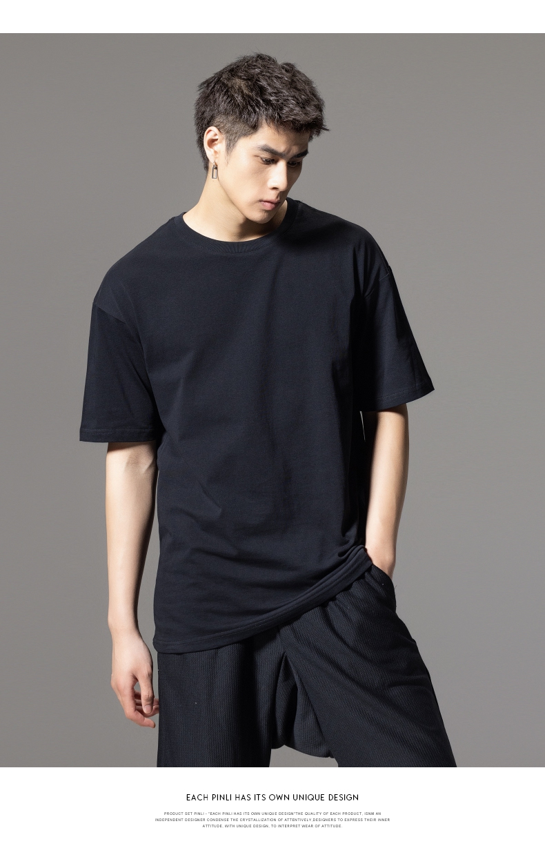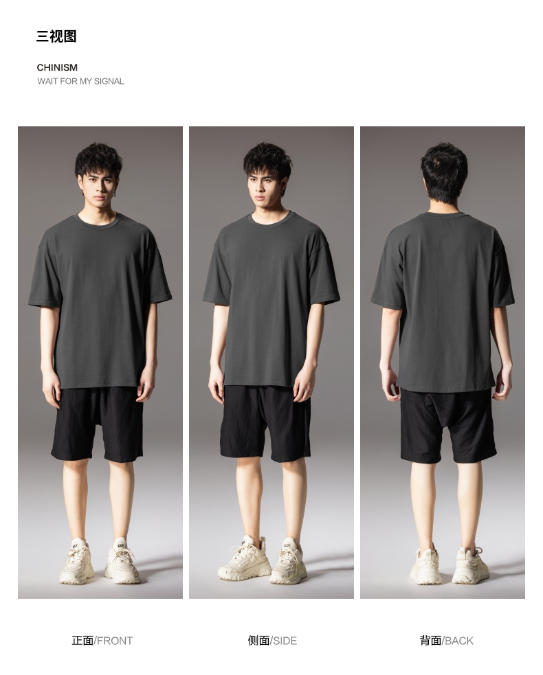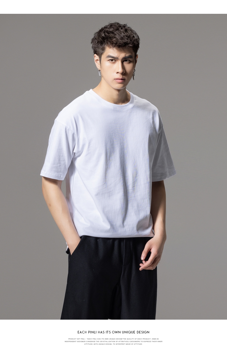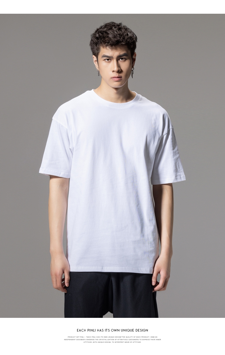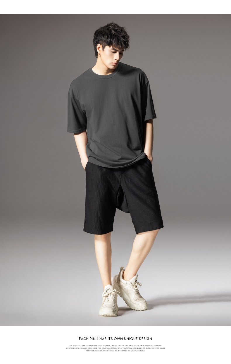 PINLI品立2026夏季新款男士重磅厚版宽松圆领落肩袖短袖T恤上衣潮GD262111031