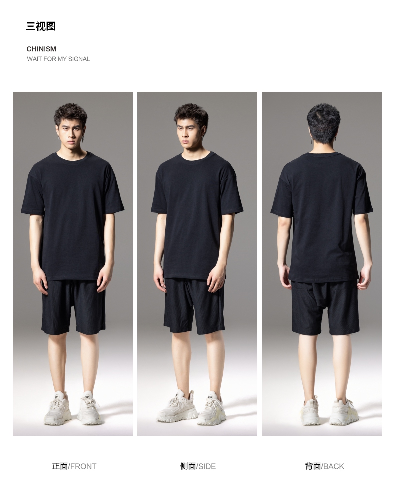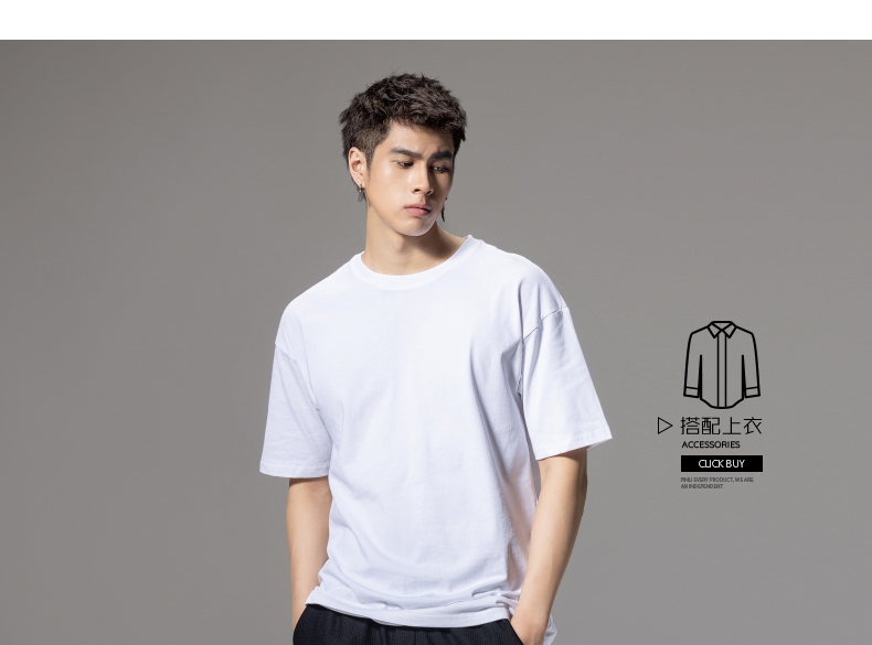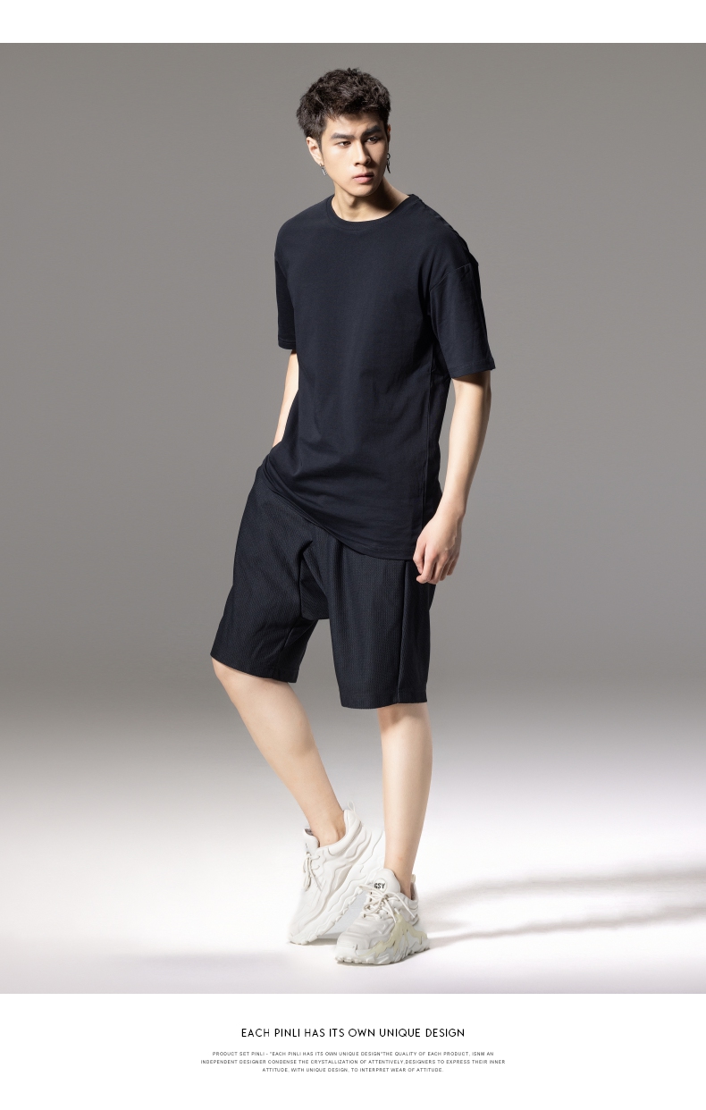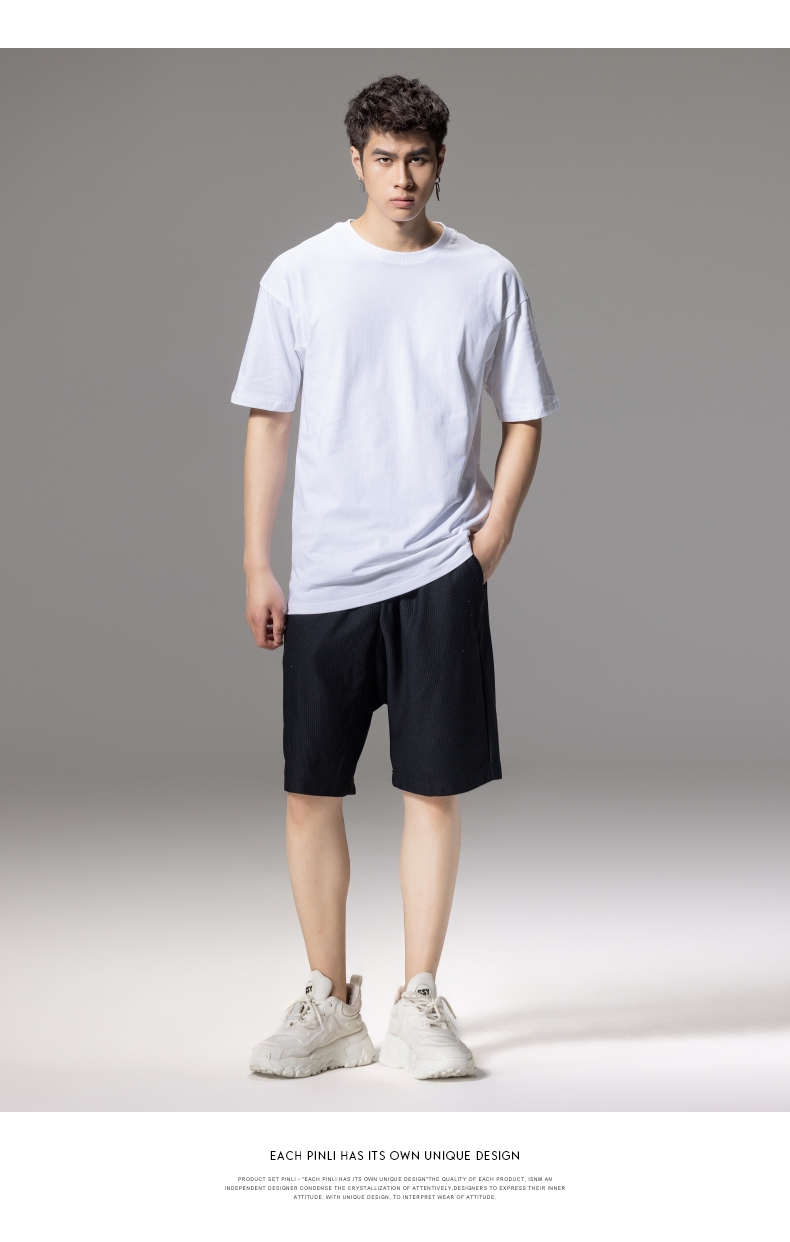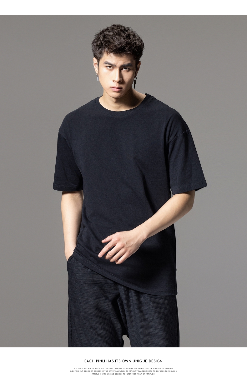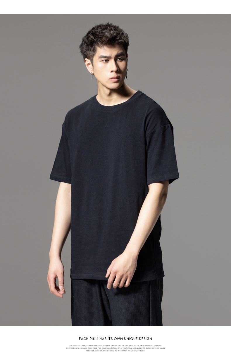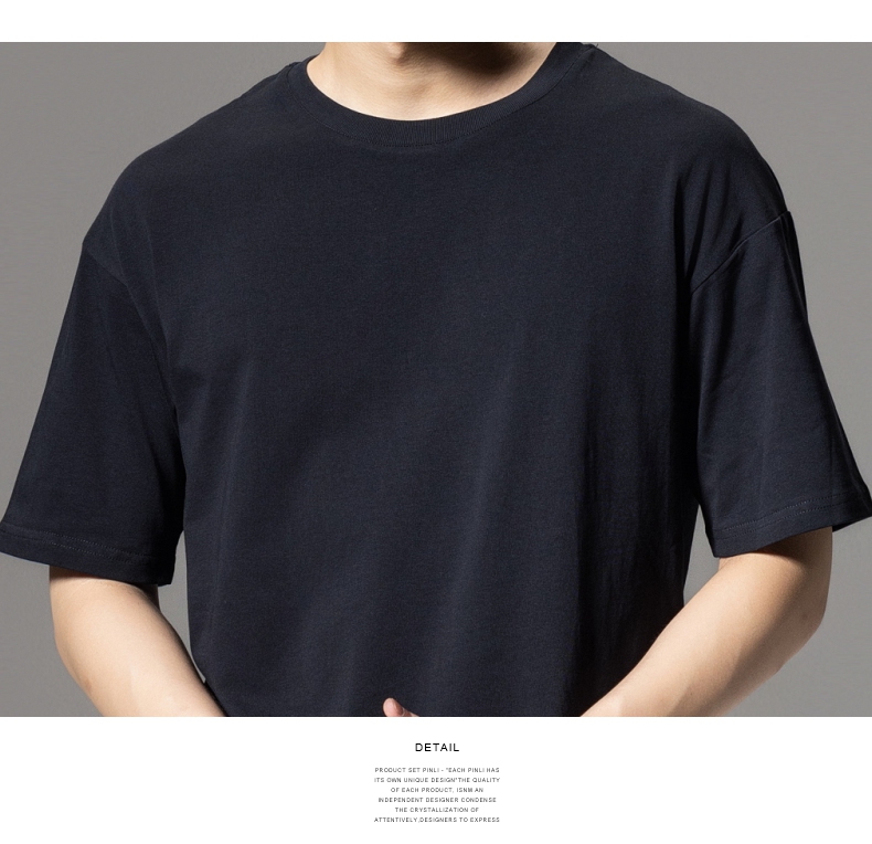 PINLI品立2026夏季新款男士重磅厚版宽松圆领落肩袖短袖T恤上衣潮GD262111031