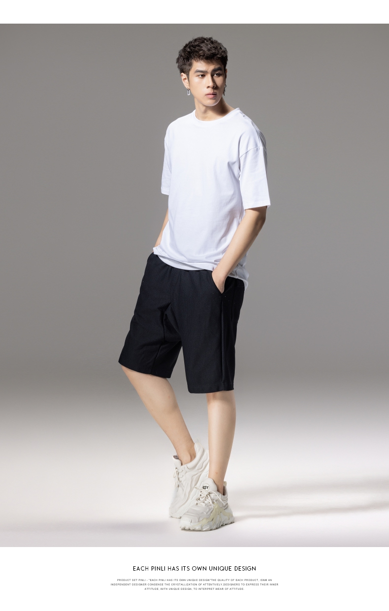 PINLI品立夏季新款纯色短袖T恤男士百搭时尚圆领上衣打底衫潮B242111091