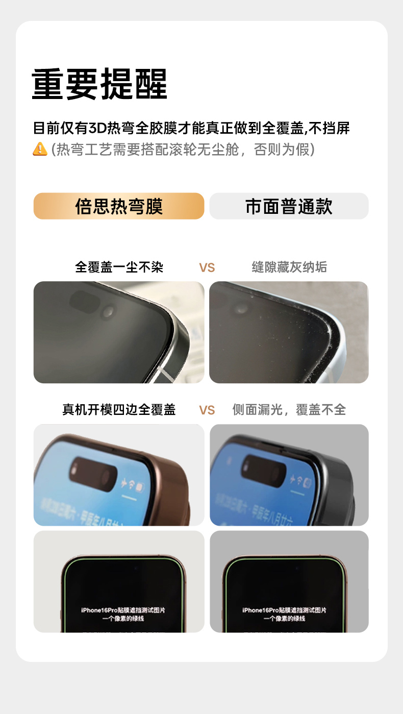 倍思 康宁系列 AR抗反射 一体防尘 全屏 高清 热弯钢化膜 For iP 滚轮无尘仓 (含:清洁包*1)