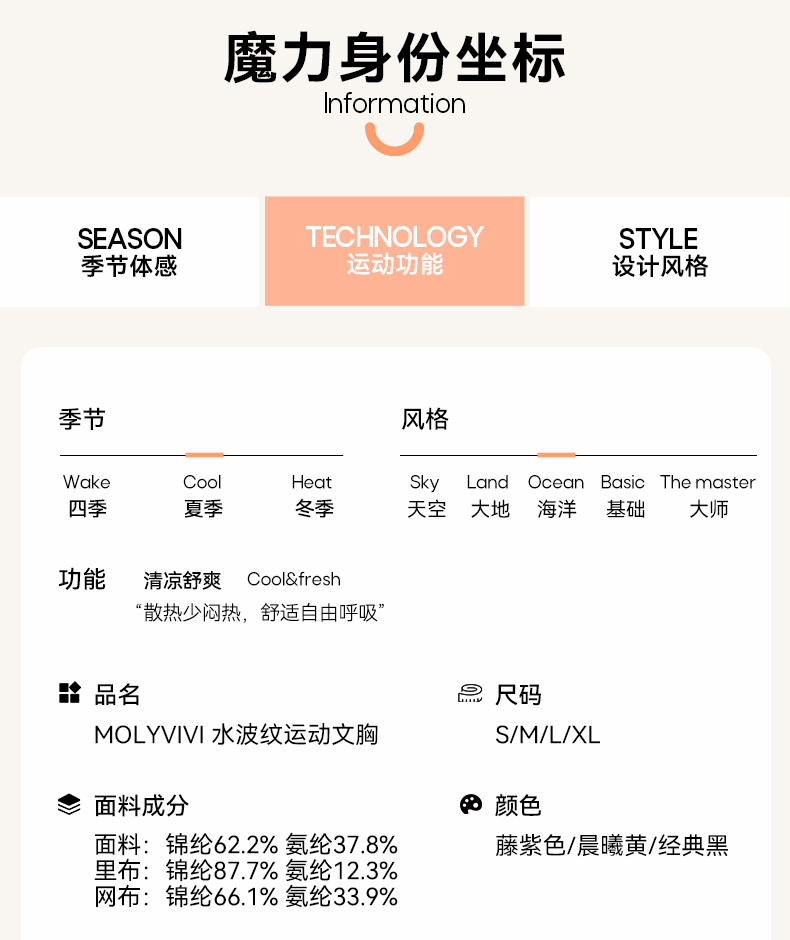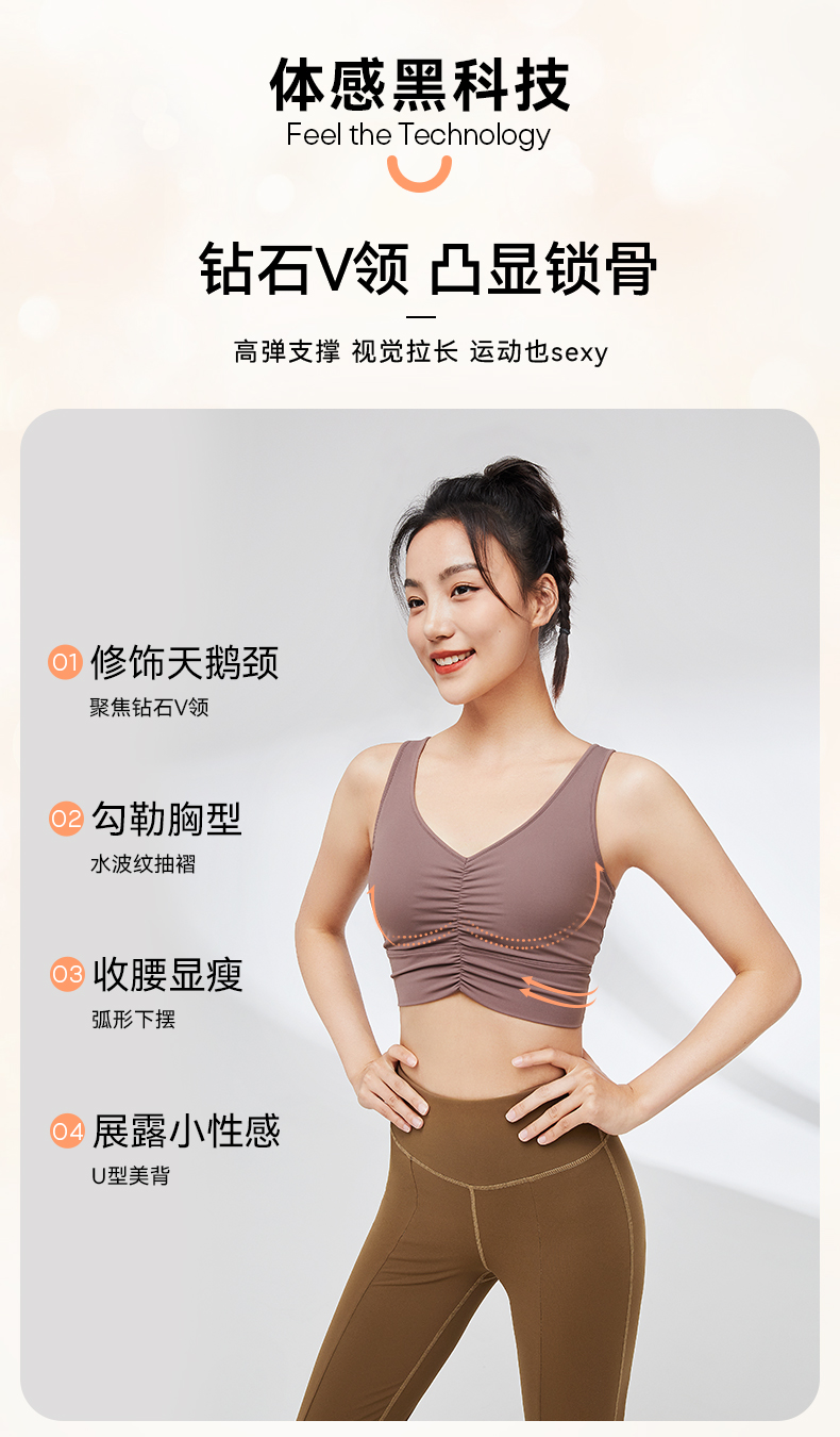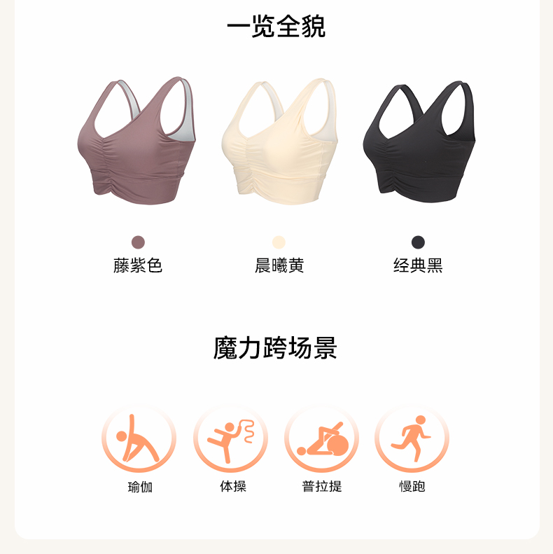 MOLYVIVI水波纹运动文胸跑步运动中强度饱满胸型显瘦文胸背心
