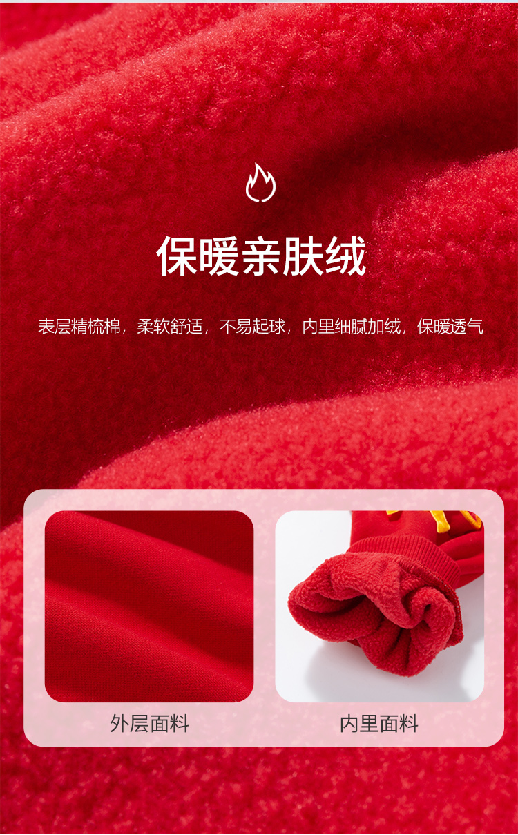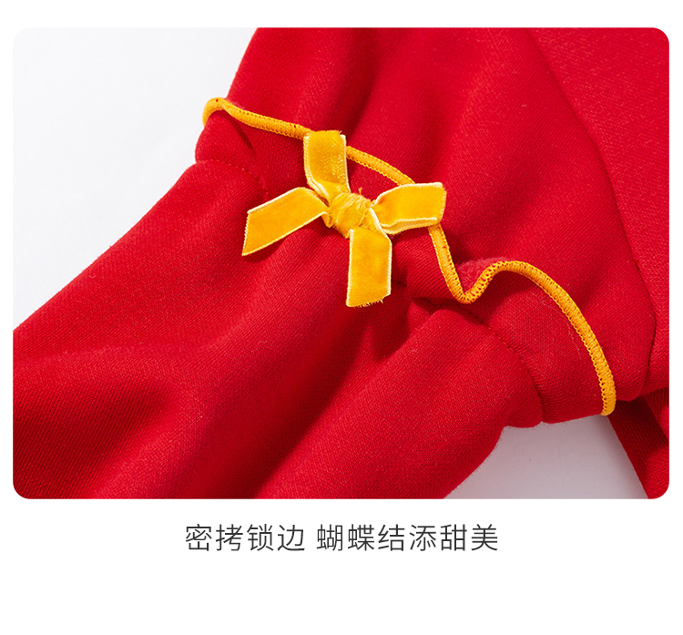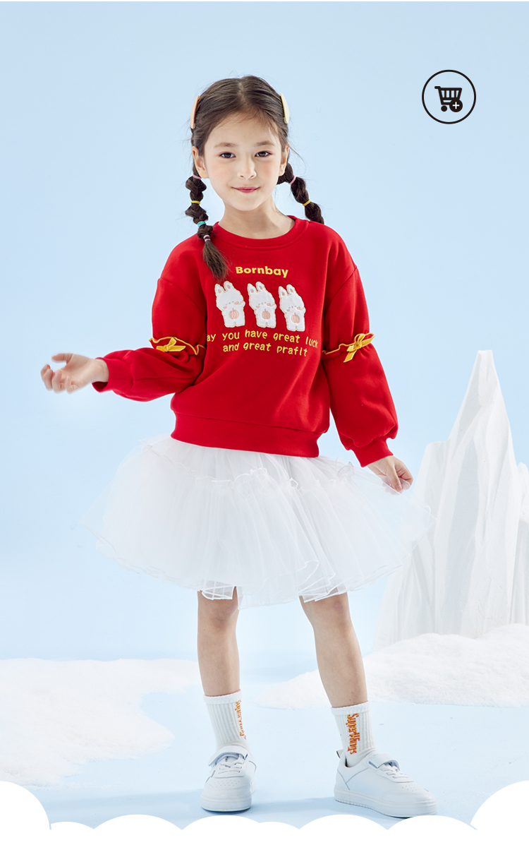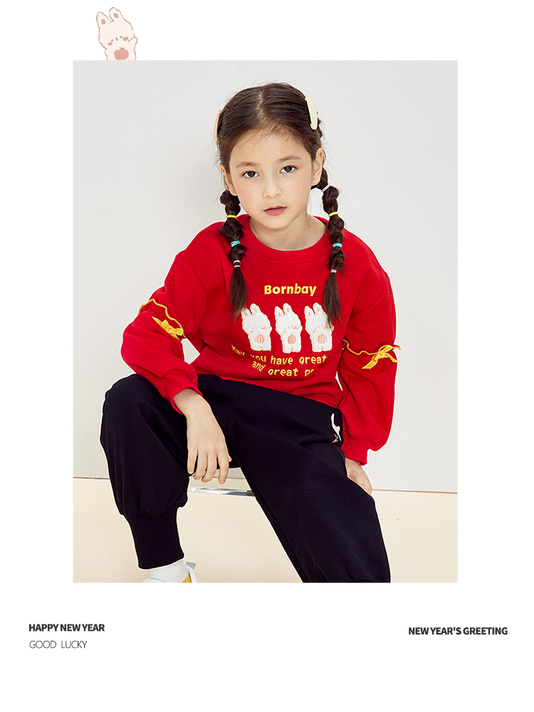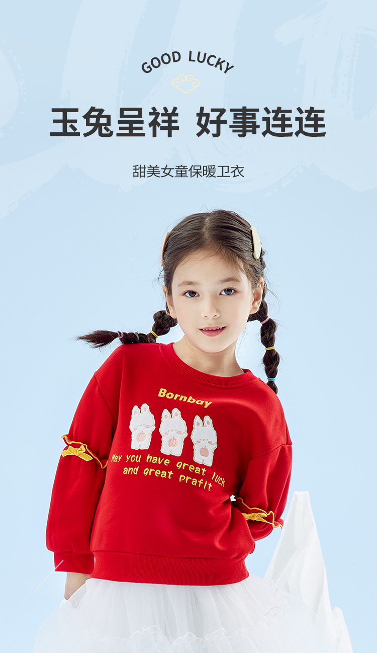 贝贝怡 秋冬女童红色喜庆抓绒保暖上衣可爱时尚卫衣223S3085