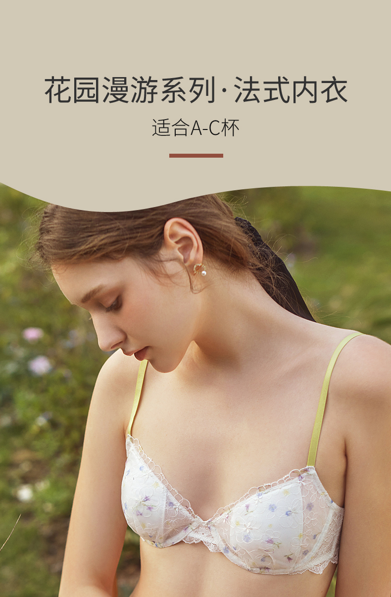 金三塔花园漫游系列法式内衣女聚拢小胸撞色蕾丝真丝薄文胸套装 NZFCB397