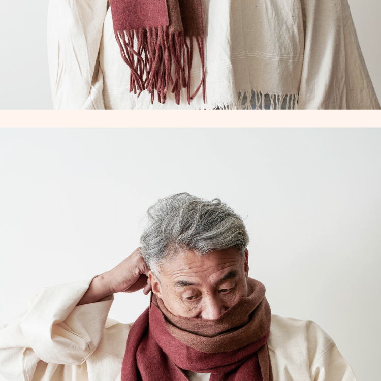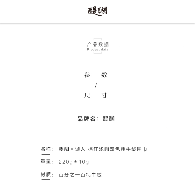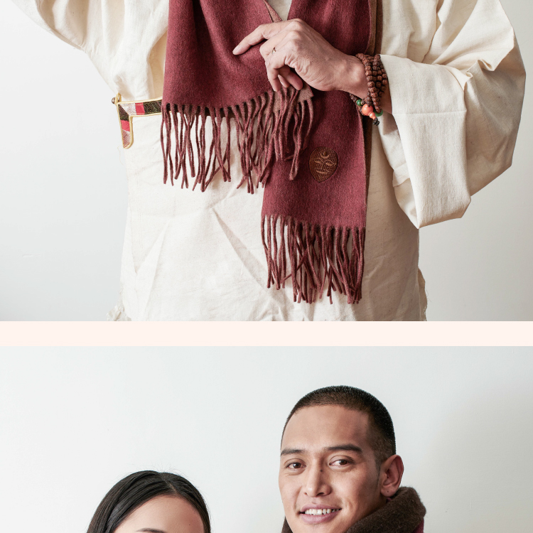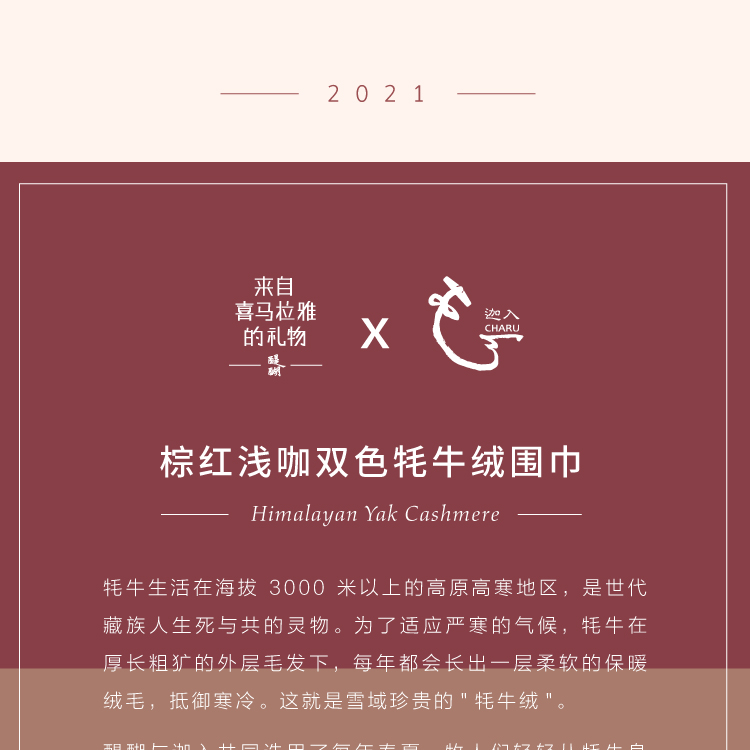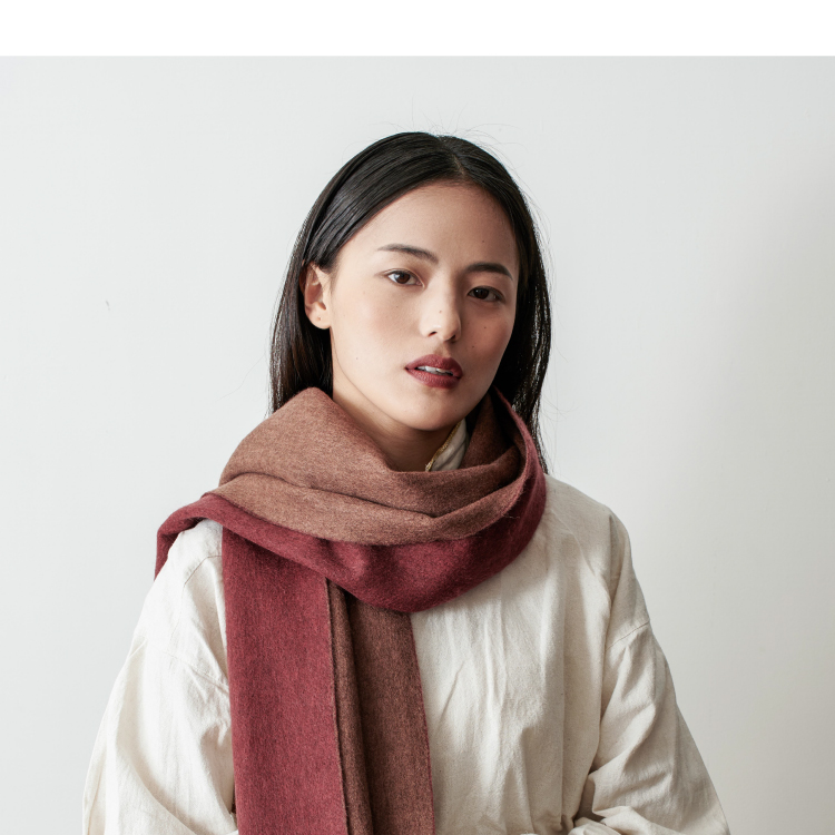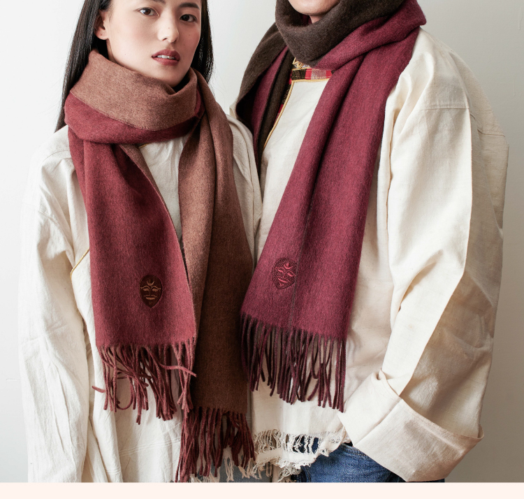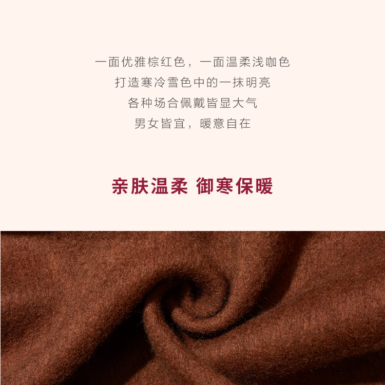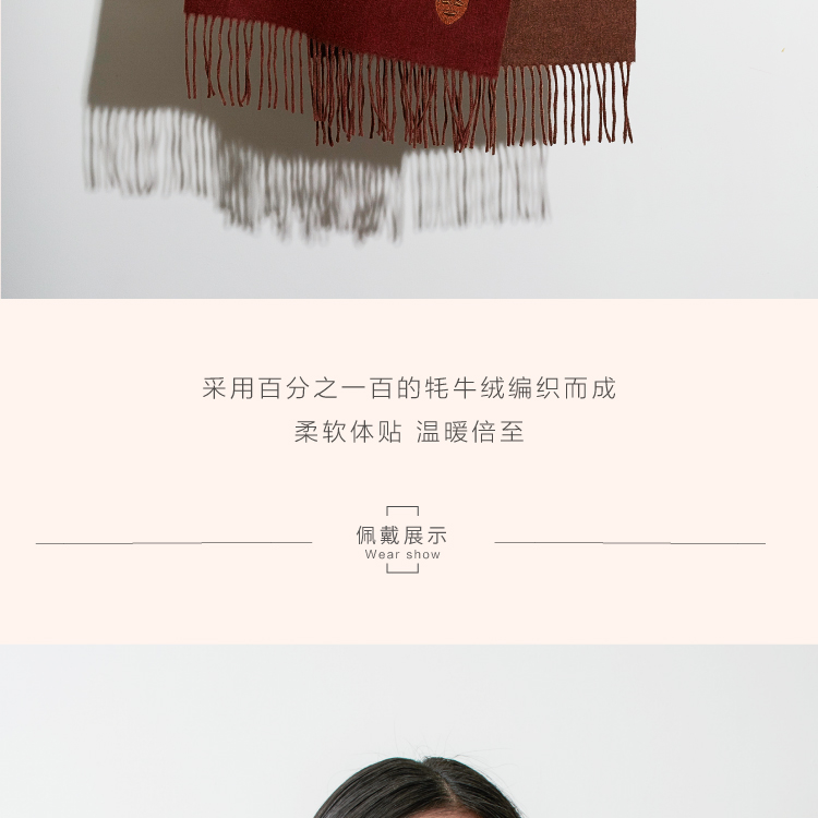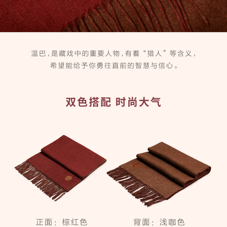 醍醐x迦入 100%牦牛绒围巾 【棕红浅咖双面双色】温暖透气 可作披肩围巾 男女皆适宜