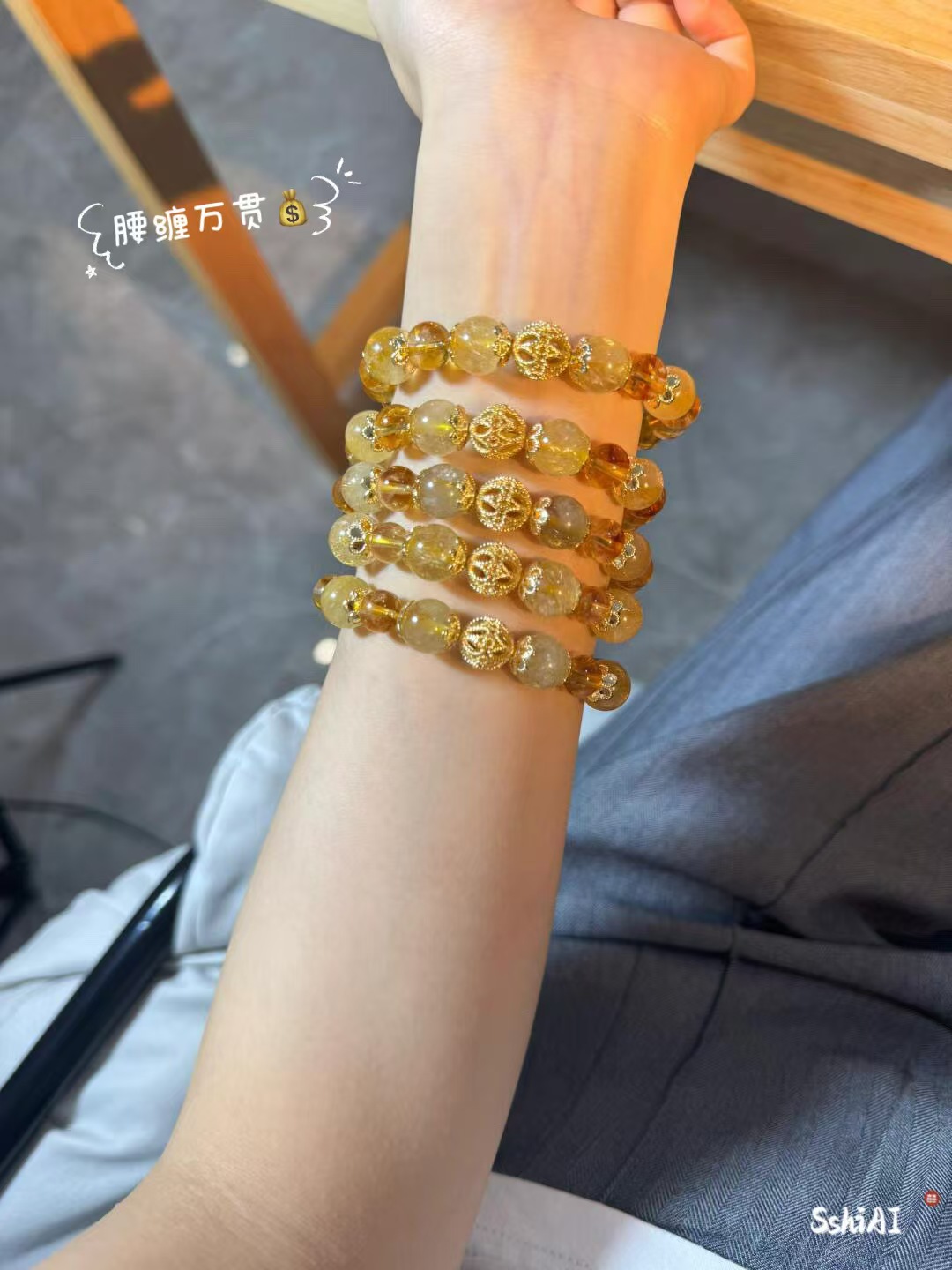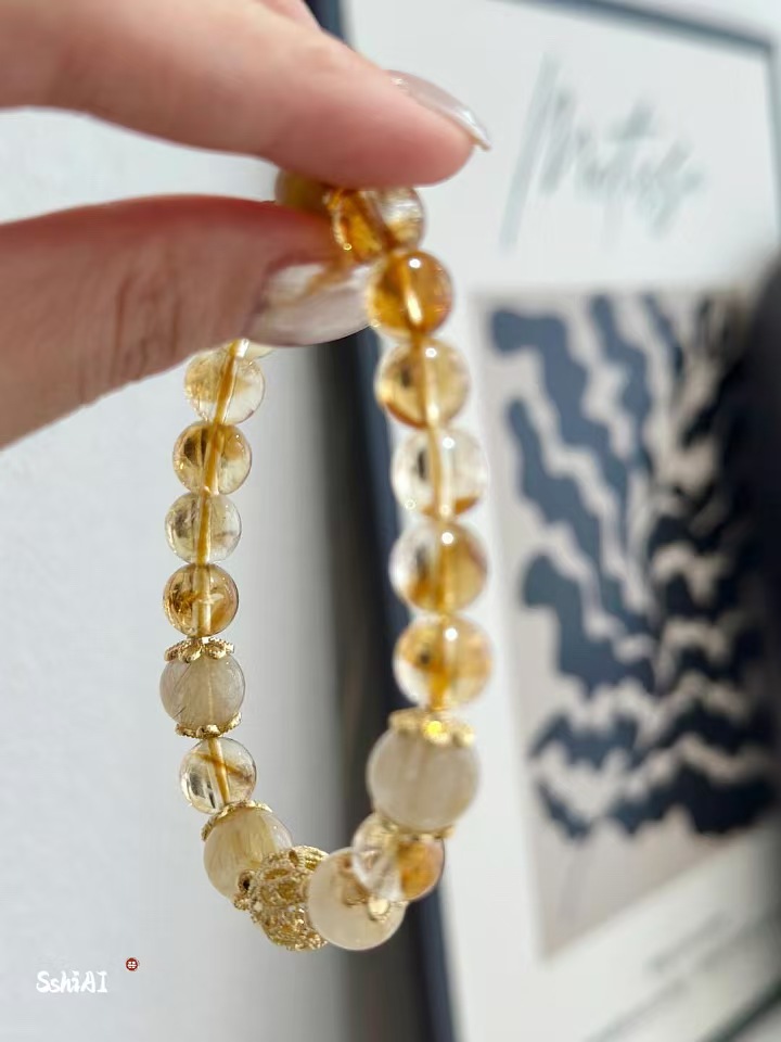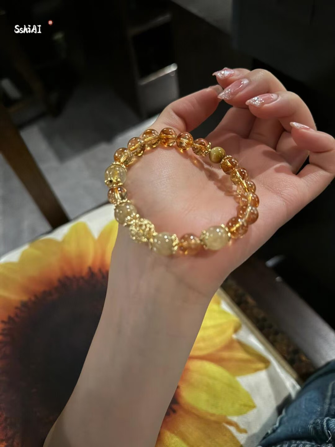 偏干净清爽的一串黄水晶➕金发晶~贵气满满~